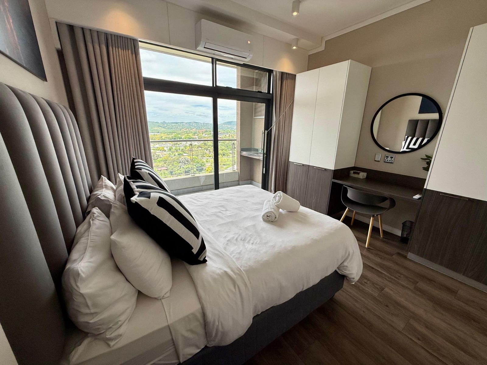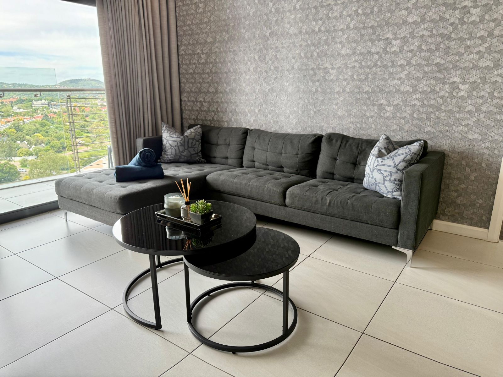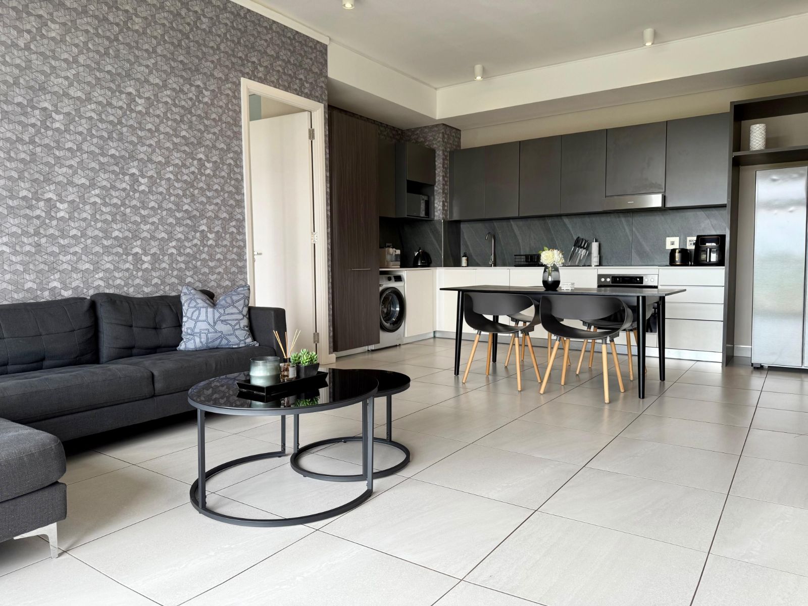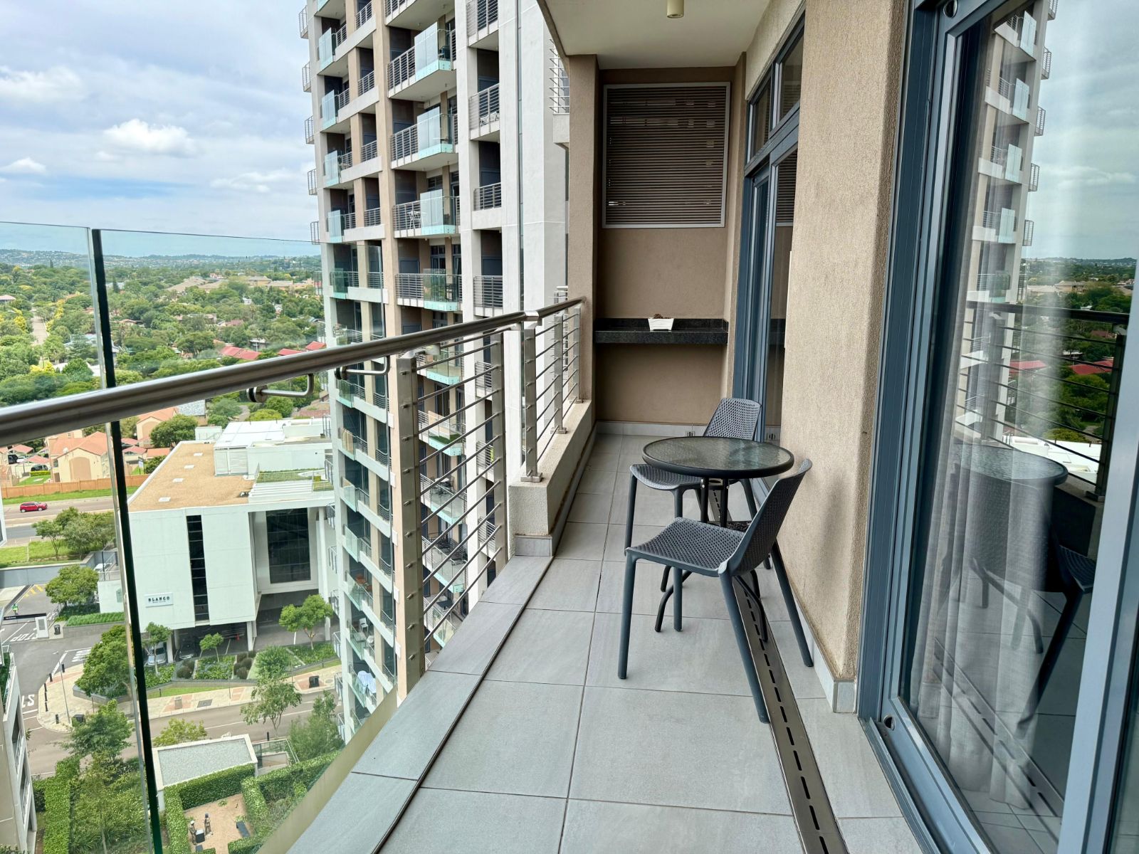Situated in the heart of the Menlyn Maine precinct, the apartment is within walking distance of vibrant restaurants, retail outlets, and Virgin Active gym at MM Central.