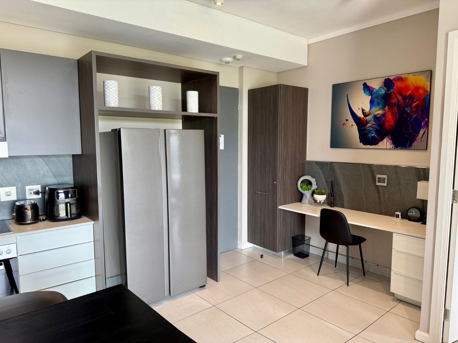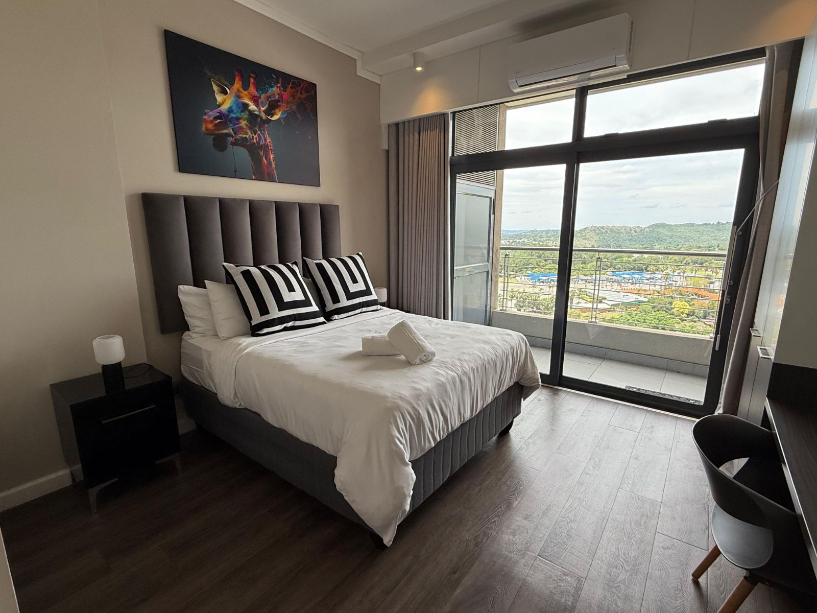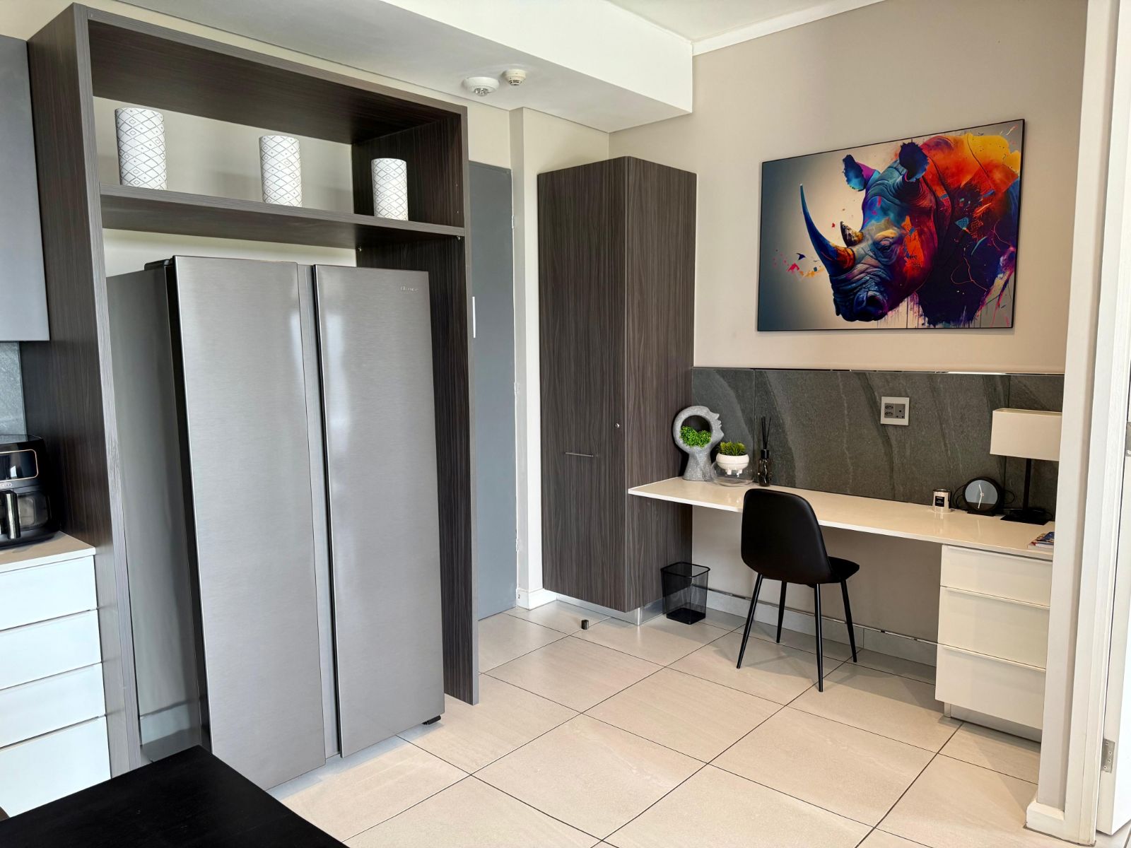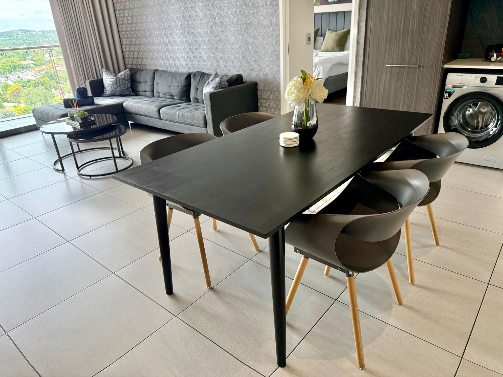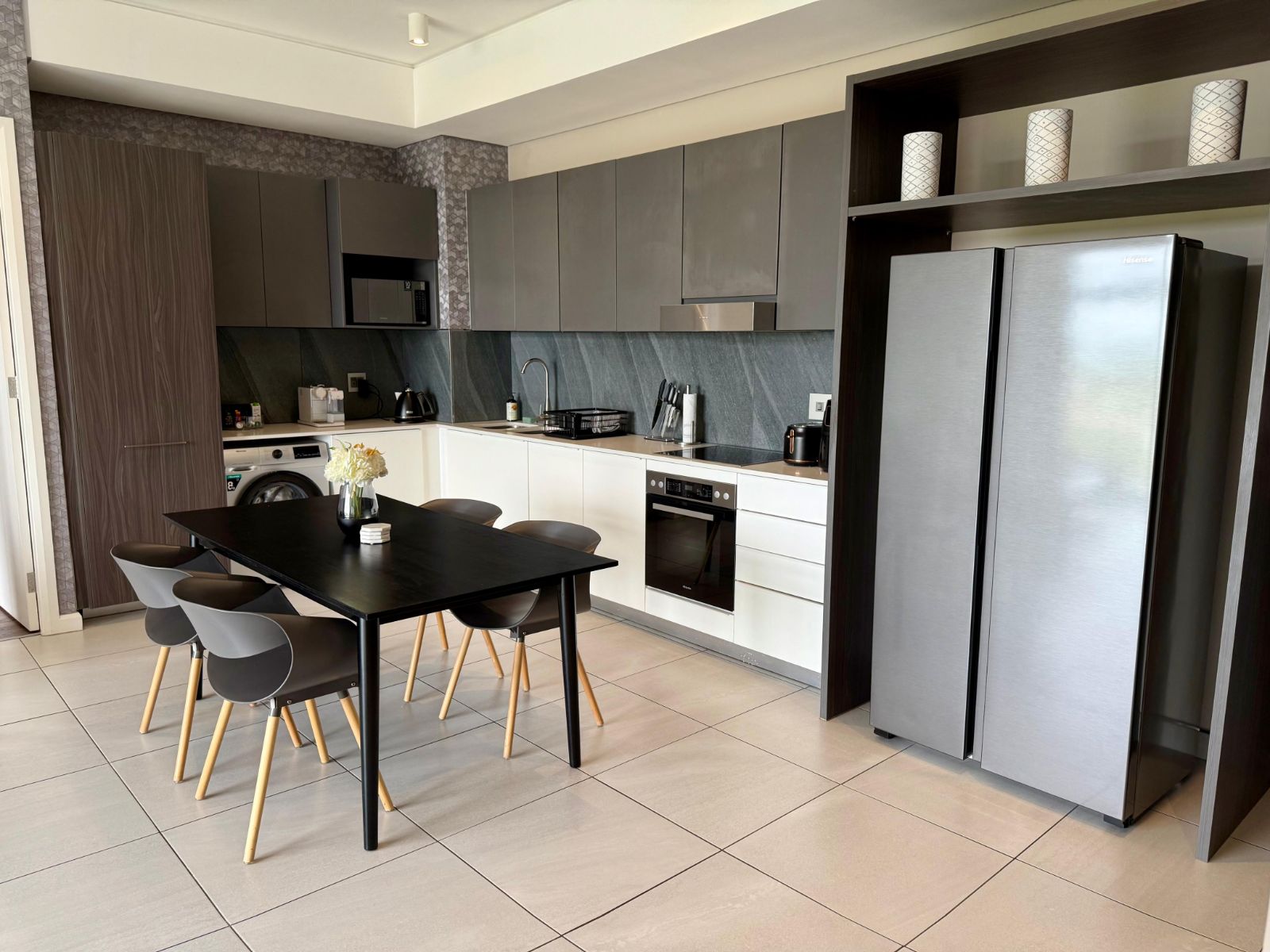 Situated in the heart of the Menlyn Maine precinct, the apartment is within walking distance of vibrant restaurants, retail outlets, and Virgin Active gym at MM Central.