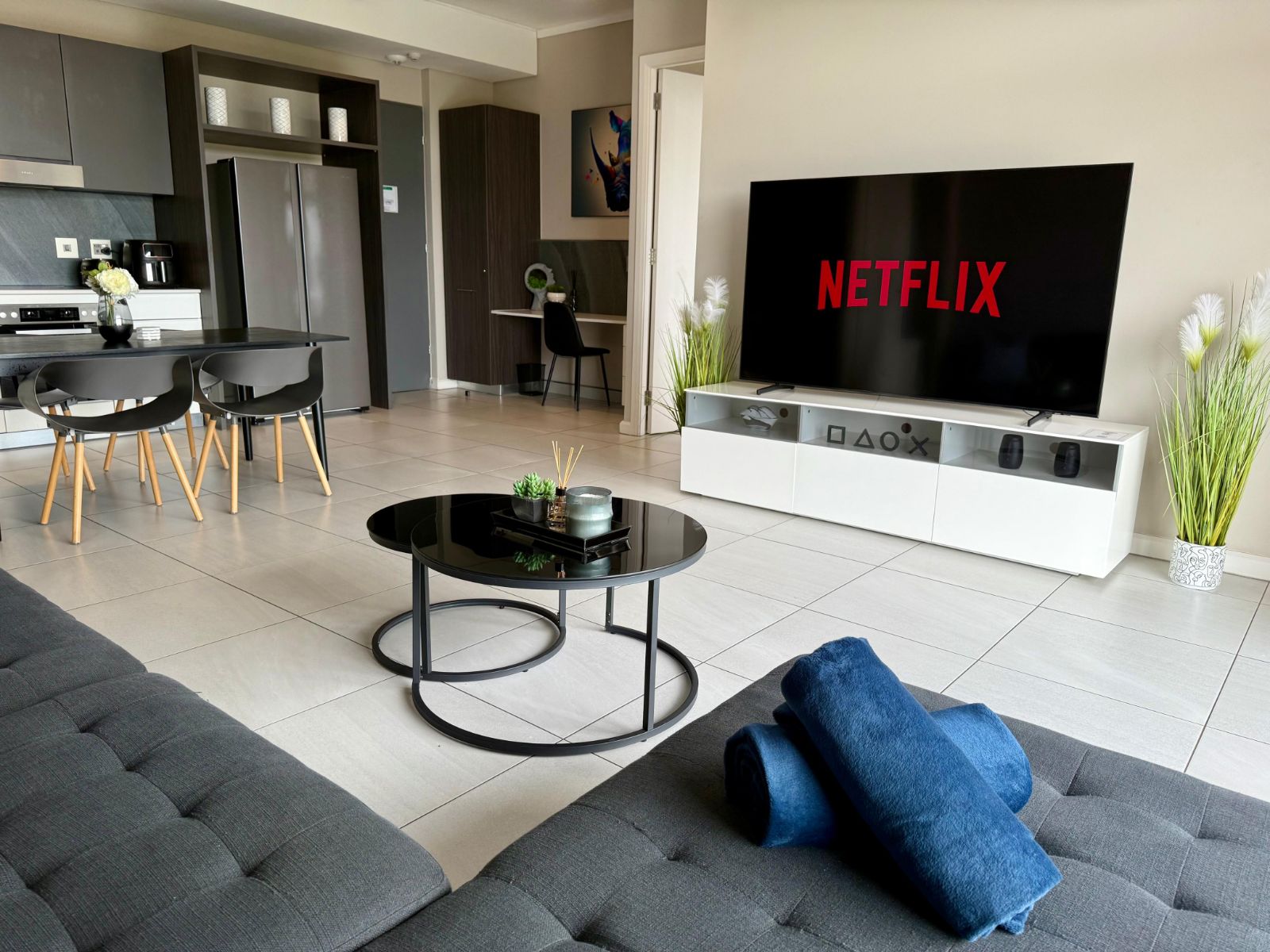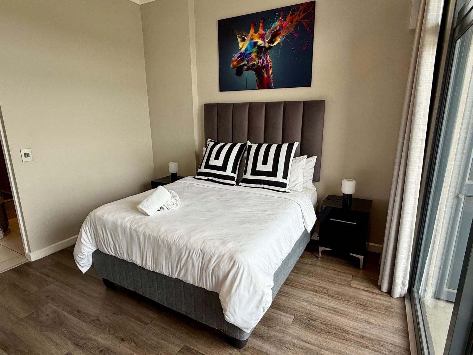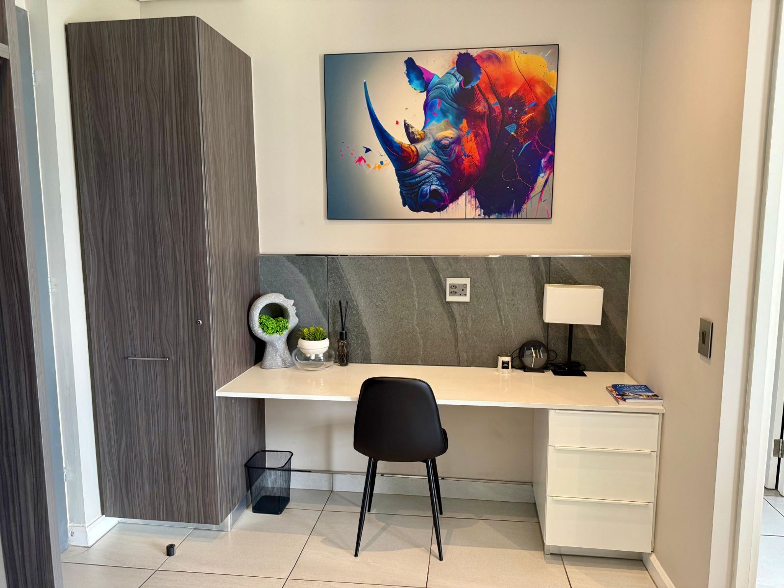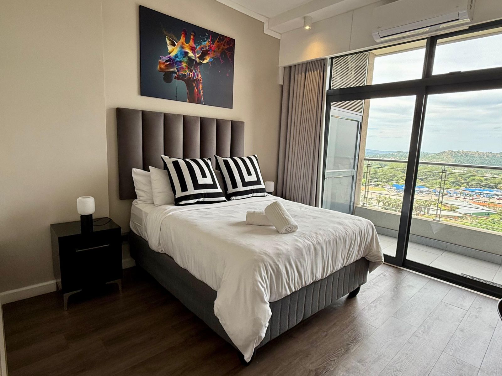 Situated in the heart of the Menlyn Maine precinct, the apartment is within walking distance of vibrant restaurants, retail outlets, and Virgin Active gym at MM Central.