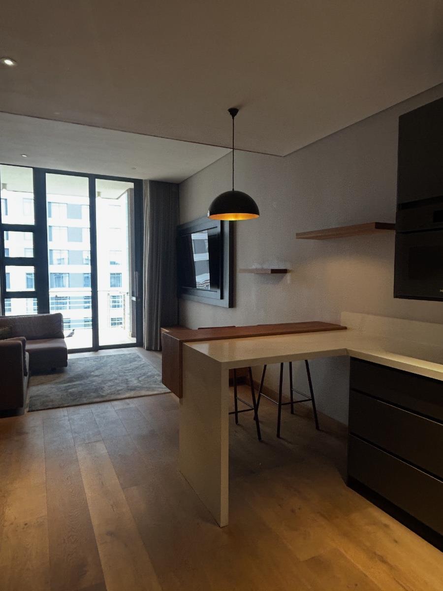 The apartment features a beautifully proportioned bedroom, a sleek open-plan living area, and premium finishes throughout.