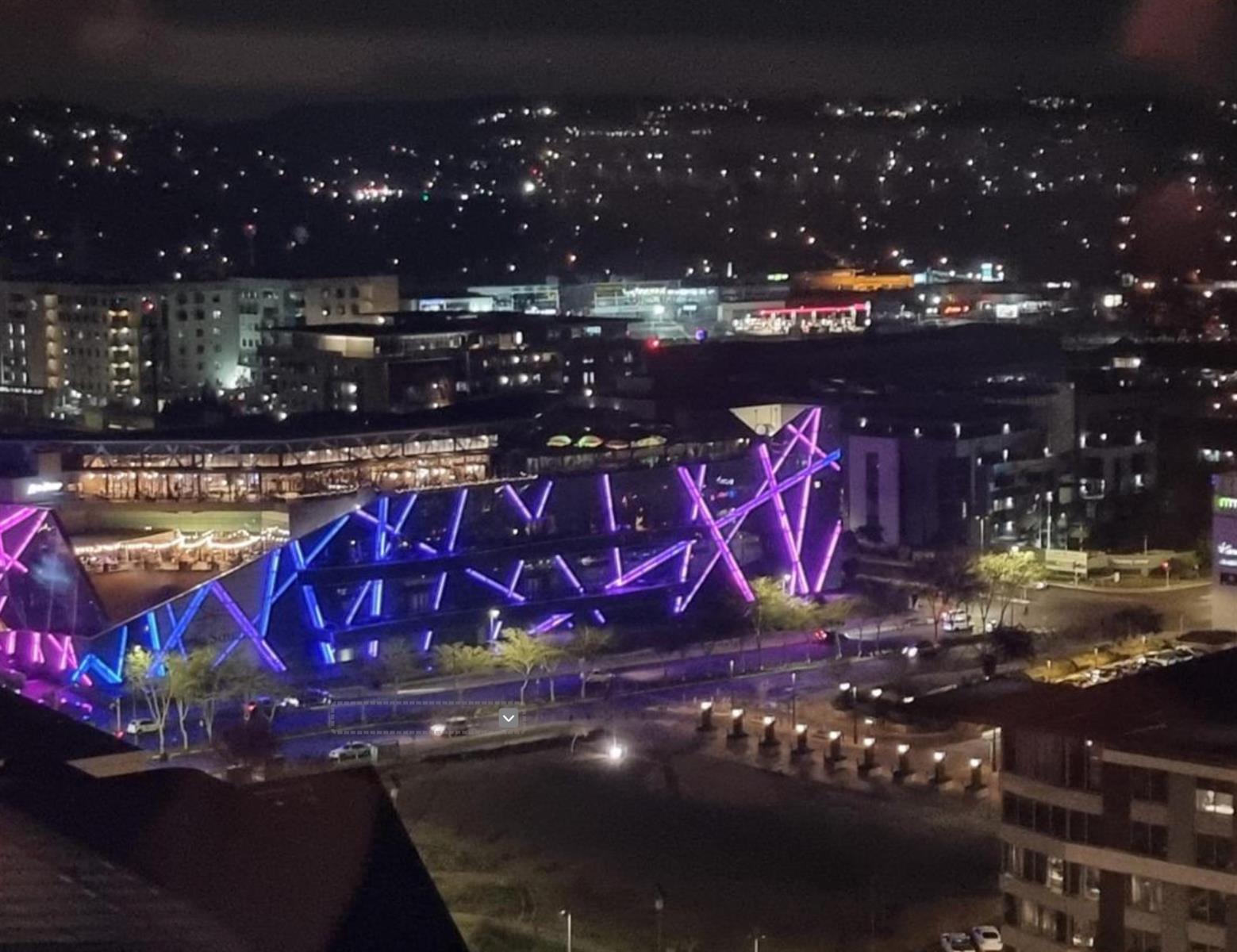 Modern LED ceiling lighting enhances the apartment with a warm contemporary glow.