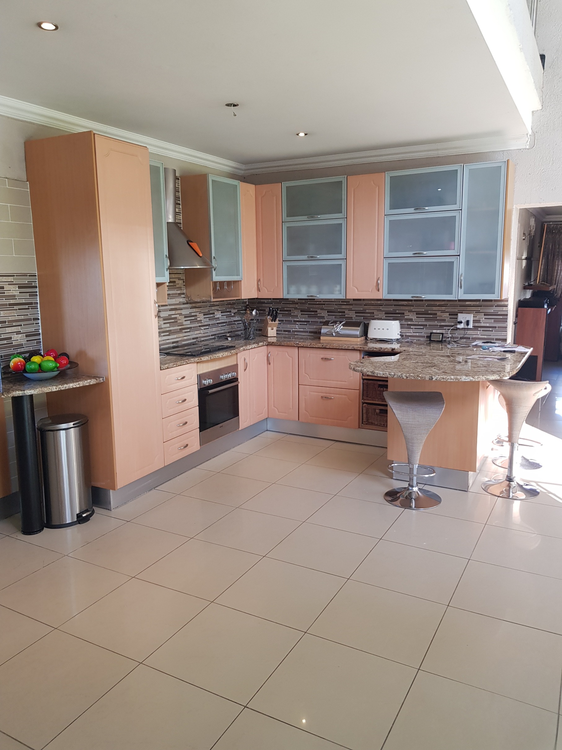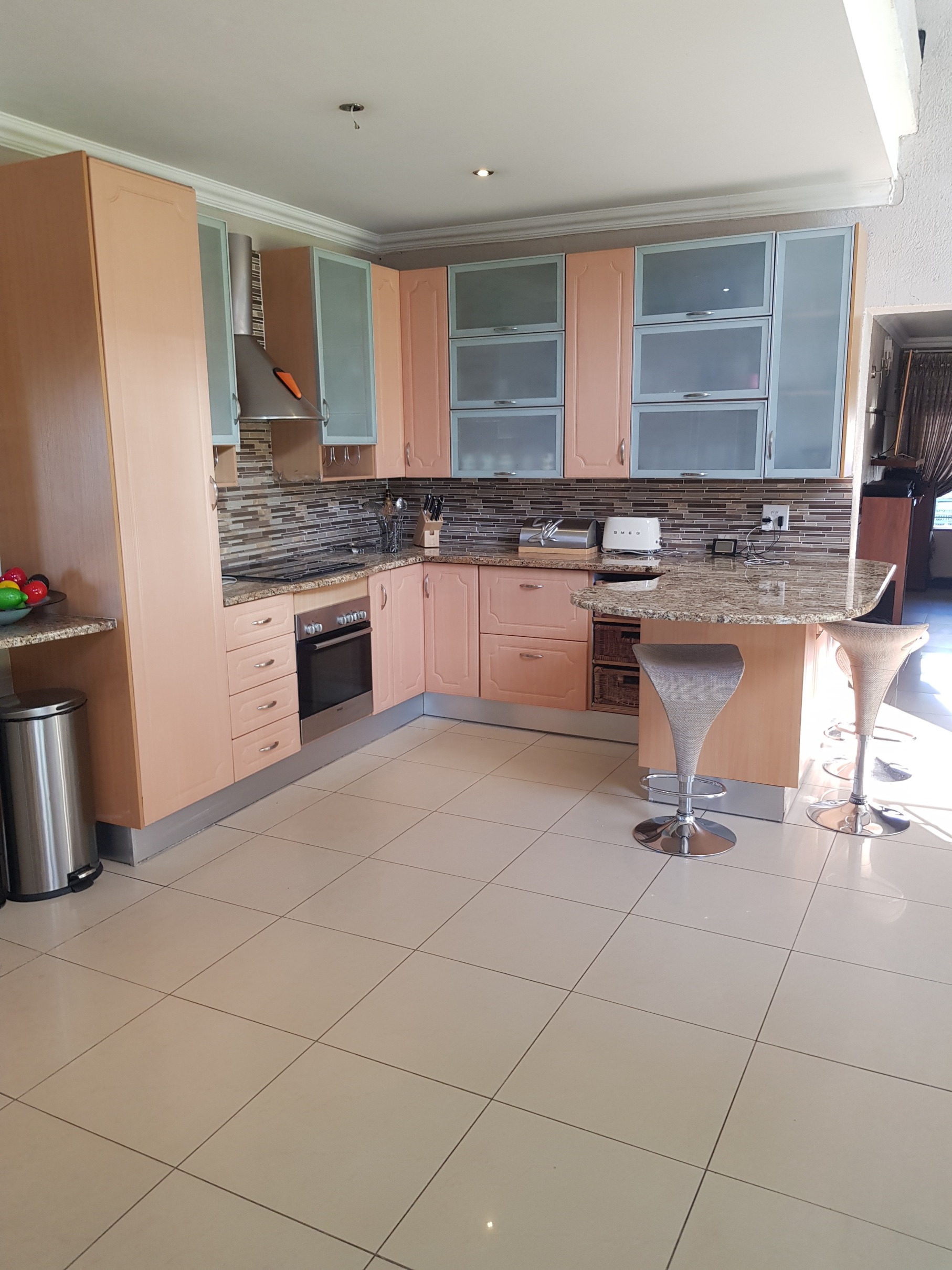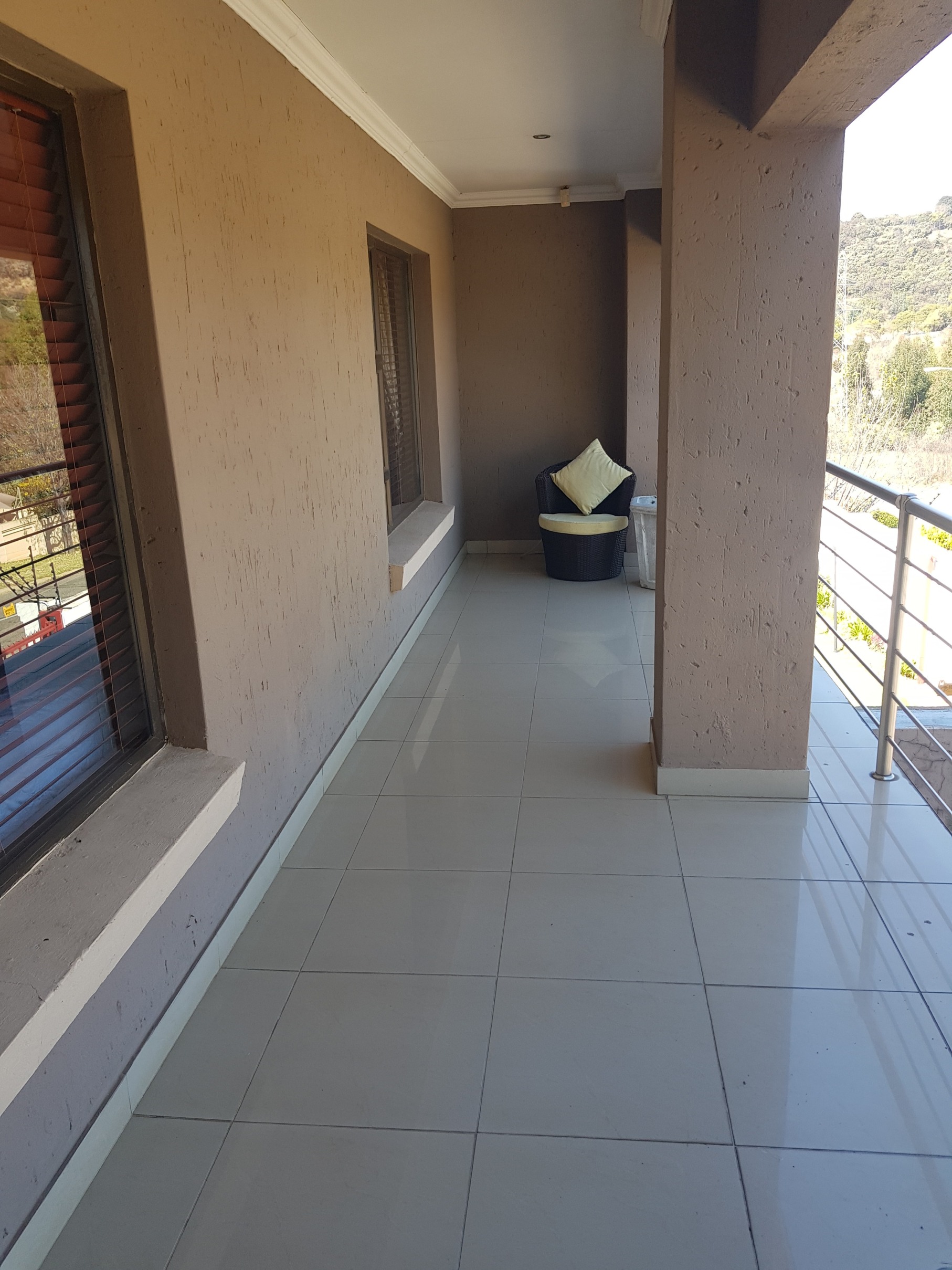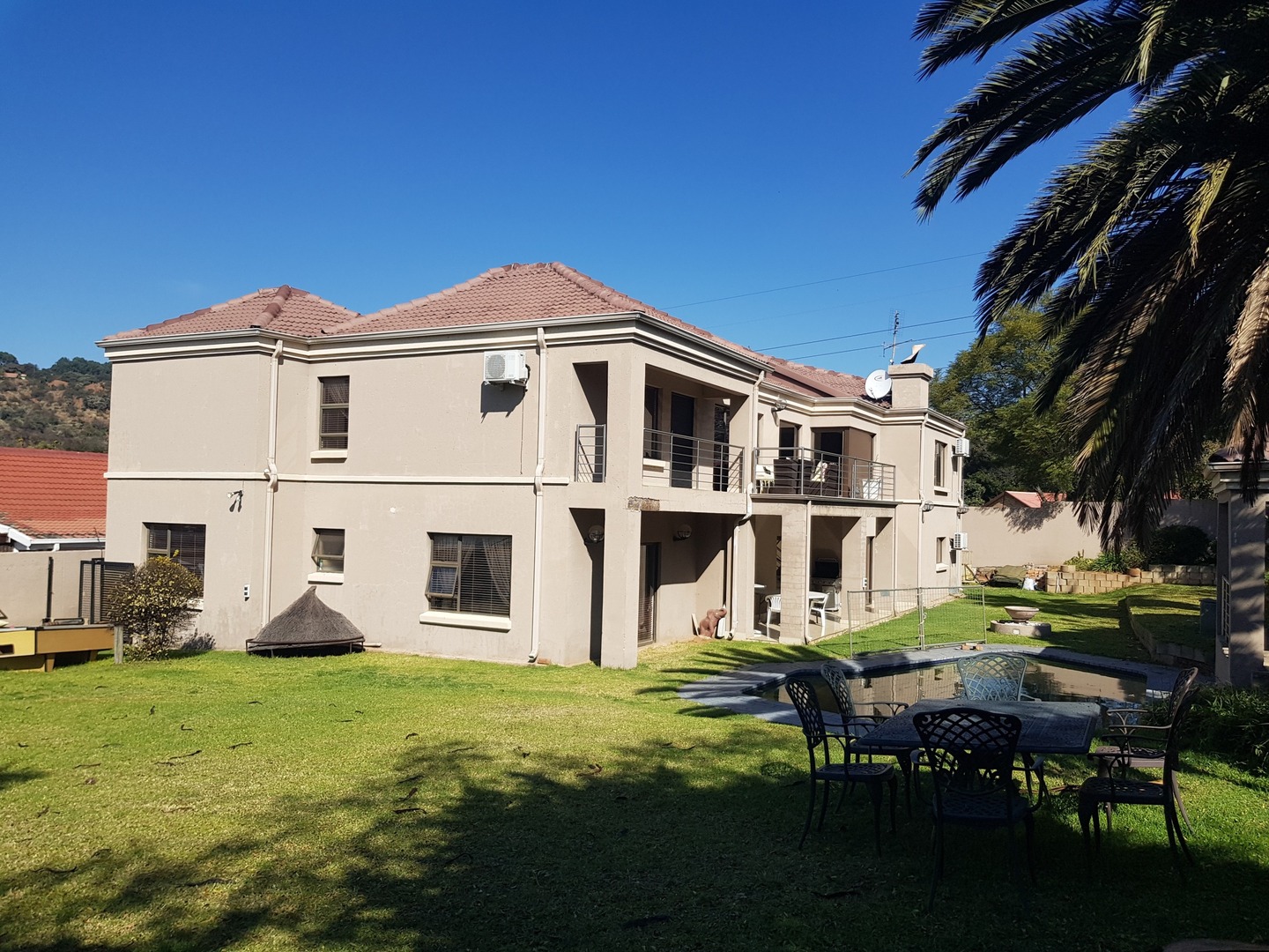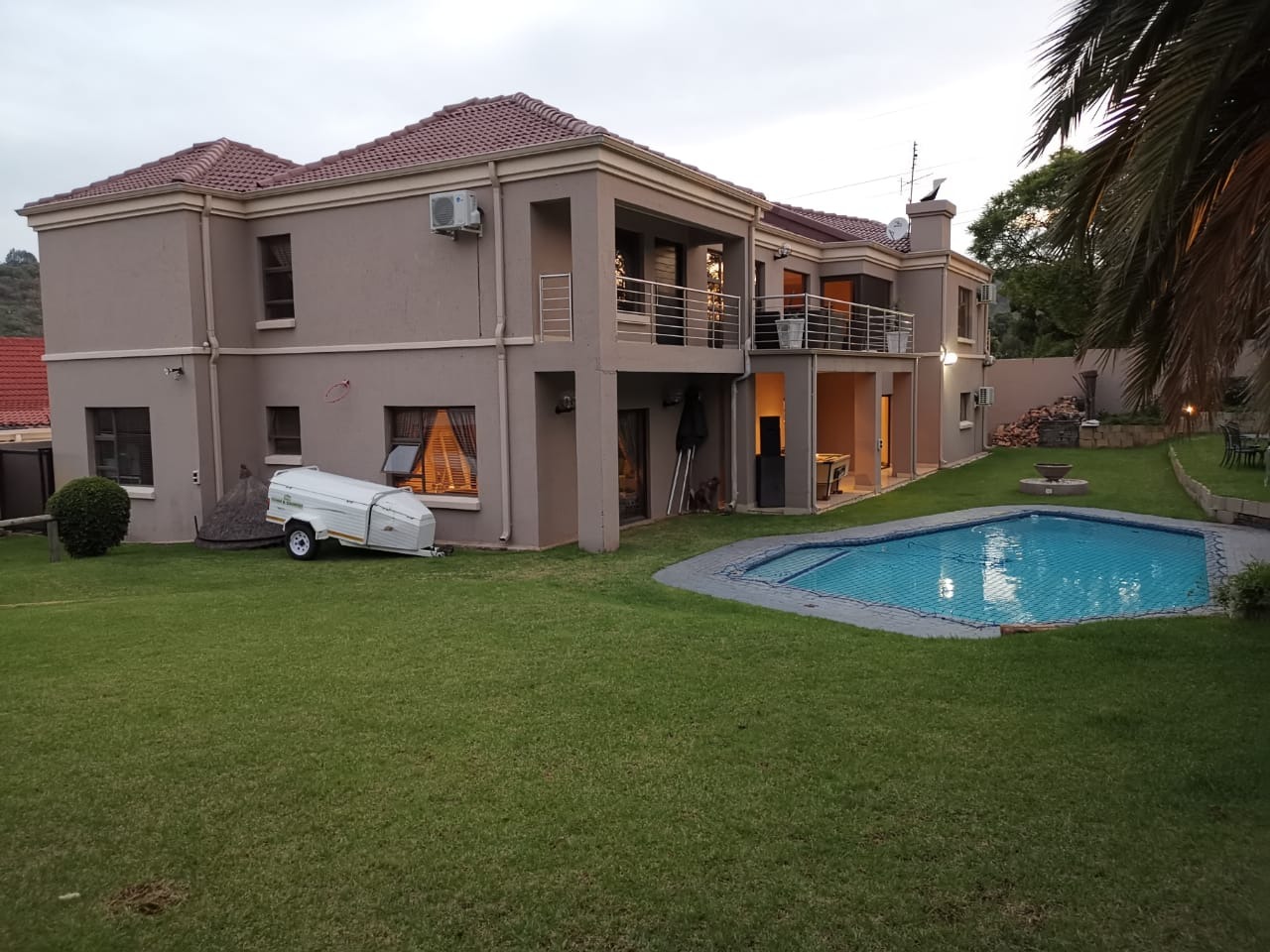 The property boasts a drive-through double garage with covered parking for two cars and additional space to accommodate up to five more vehicles within the yard. Outdoor features include a sparkling swimming pool, a lapa for entertainment, and four upstairs balconies offering breathtaking mountain views. The expansive 1,239 m2 yard is fully secured with electric fencing for peace of mind.