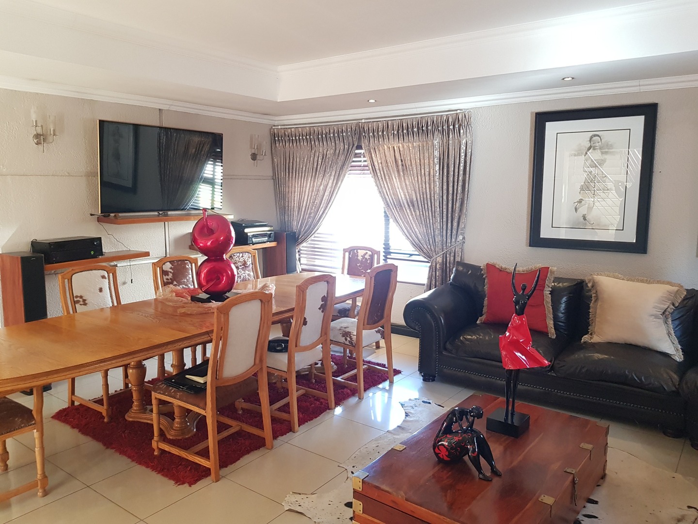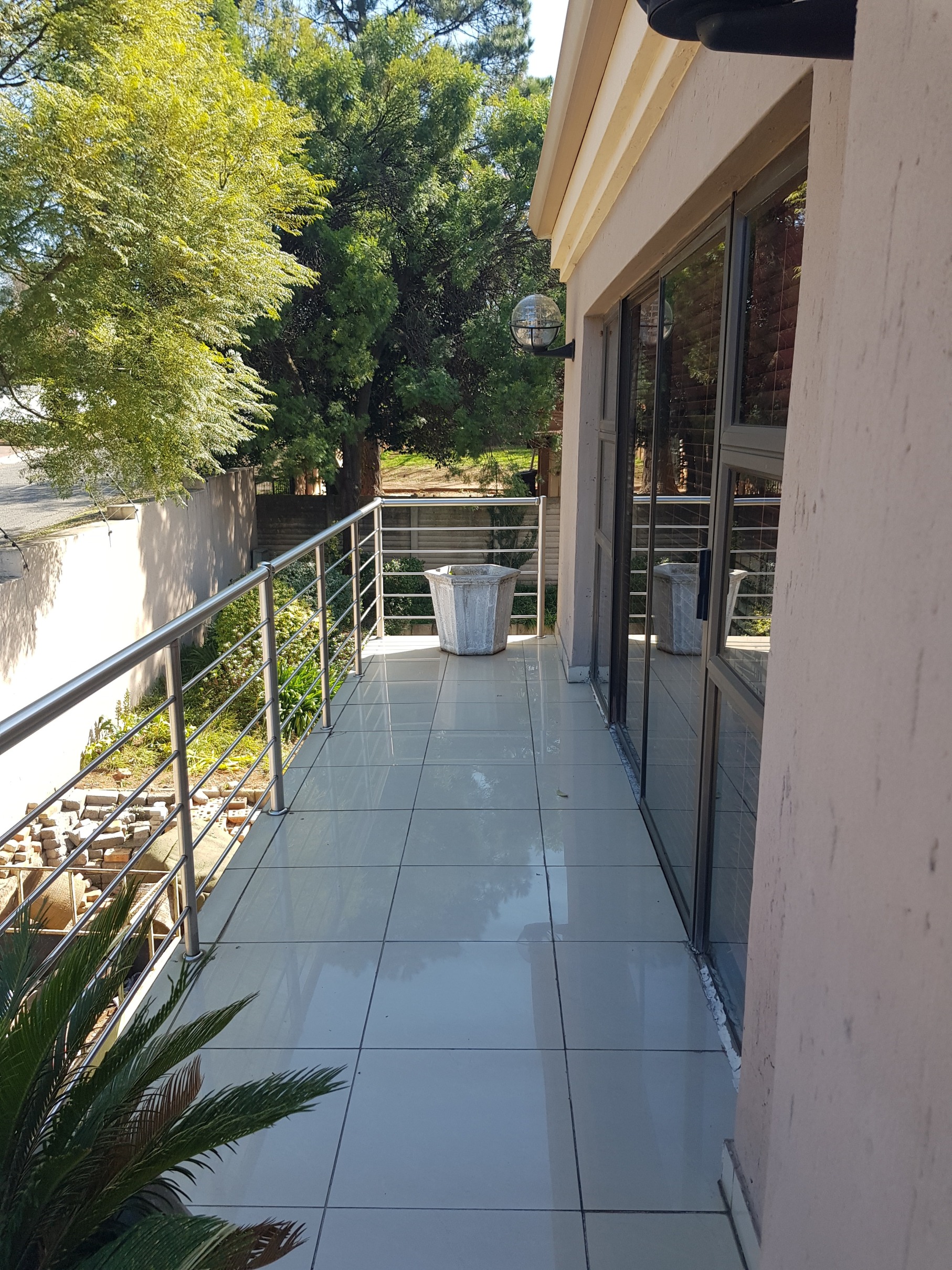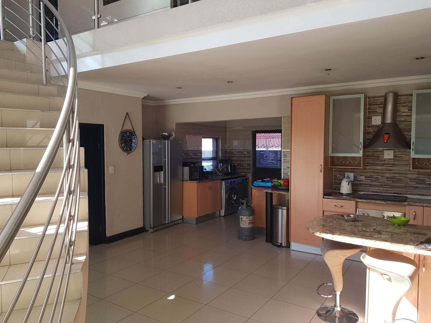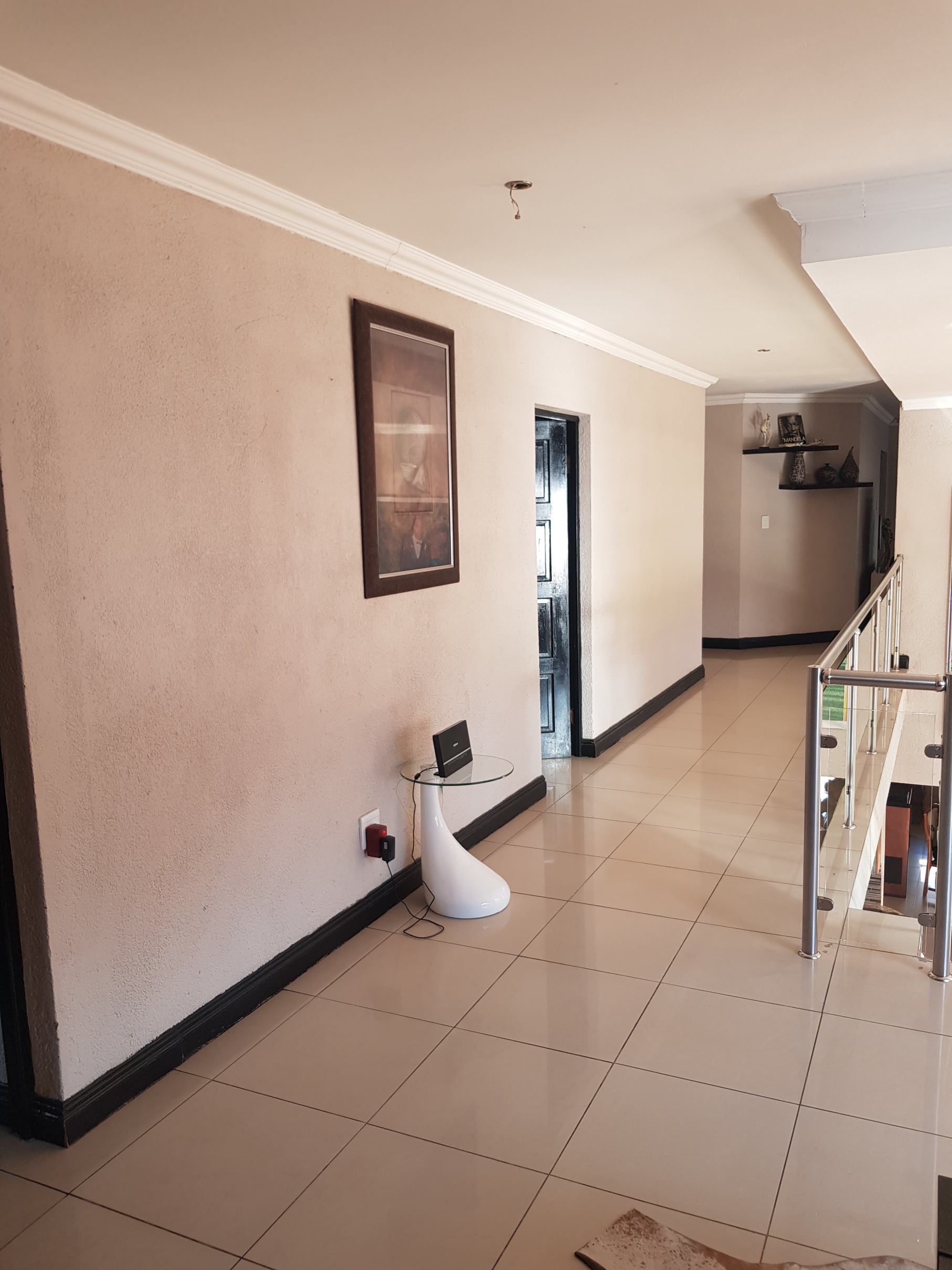 The property boasts a drive-through double garage with covered parking for two cars and additional space to accommodate up to five more vehicles within the yard. Outdoor features include a sparkling swimming pool, a lapa for entertainment, and four upstairs balconies offering breathtaking mountain views. The expansive 1,239 m2 yard is fully secured with electric fencing for peace of mind.