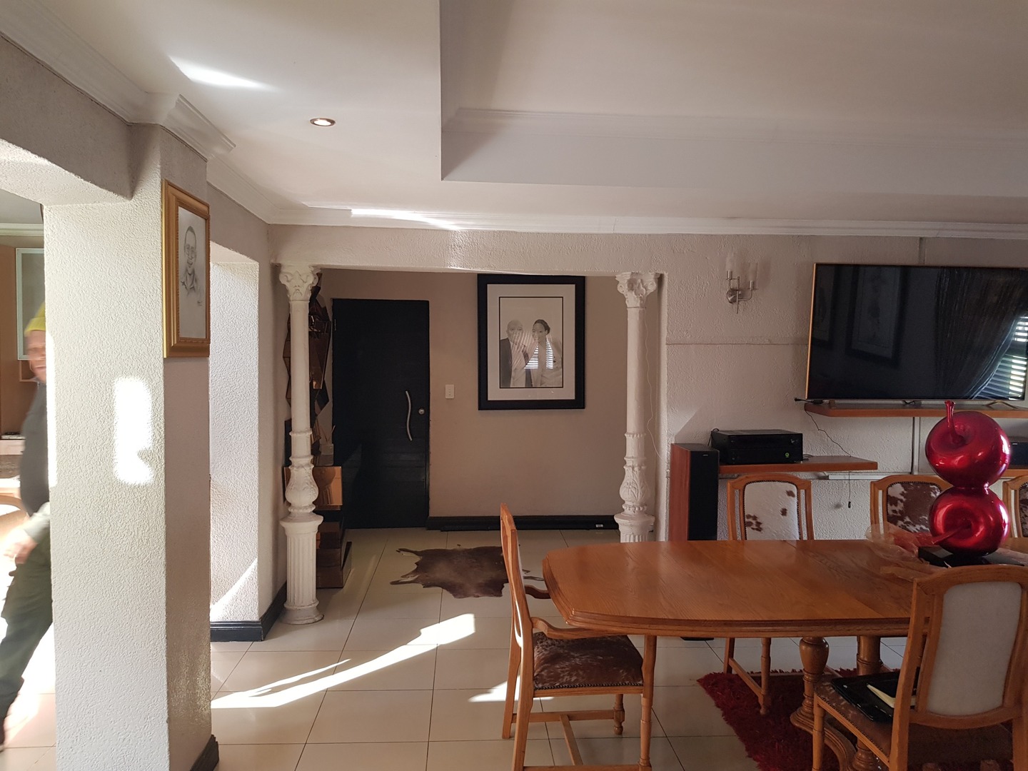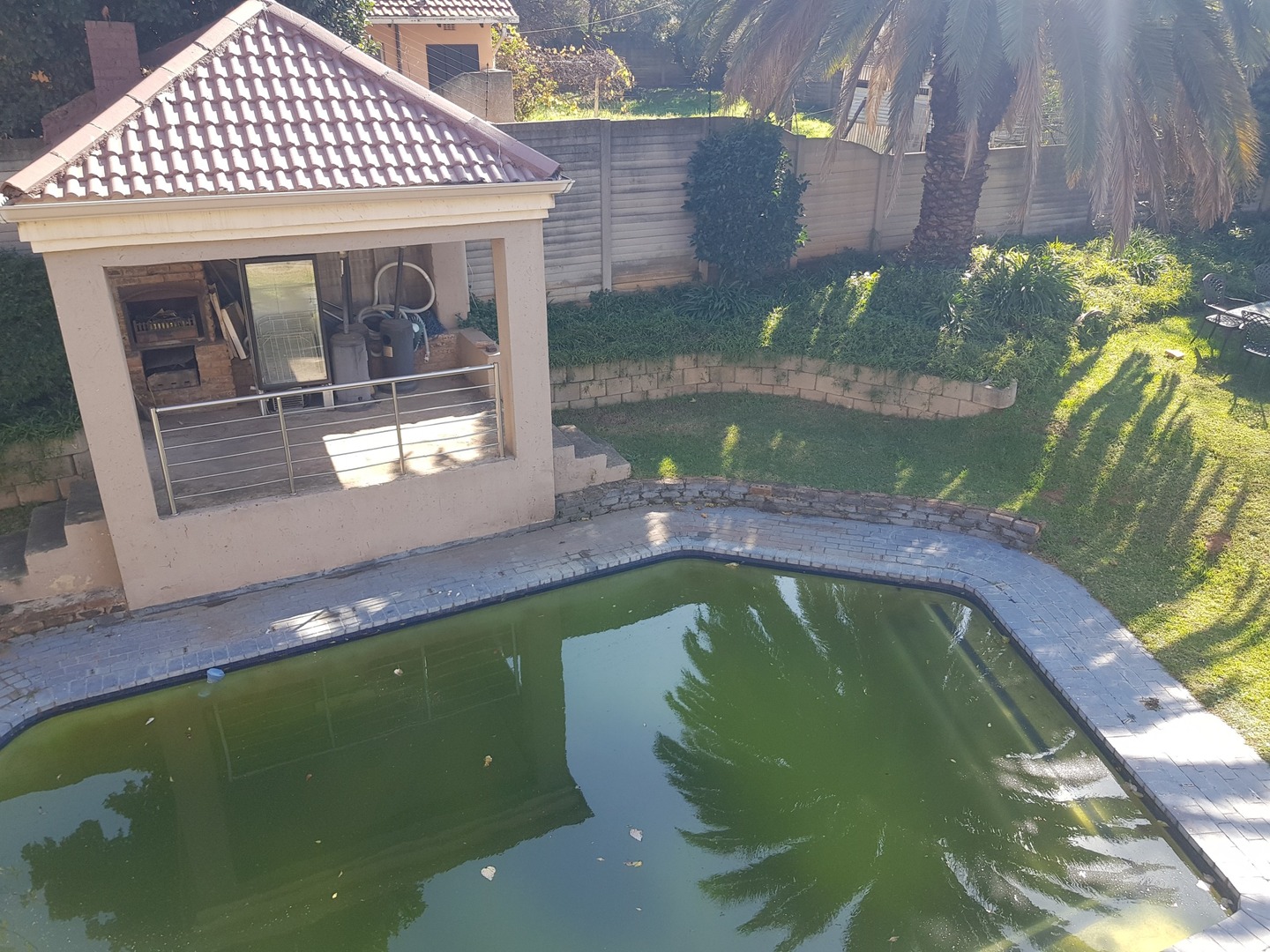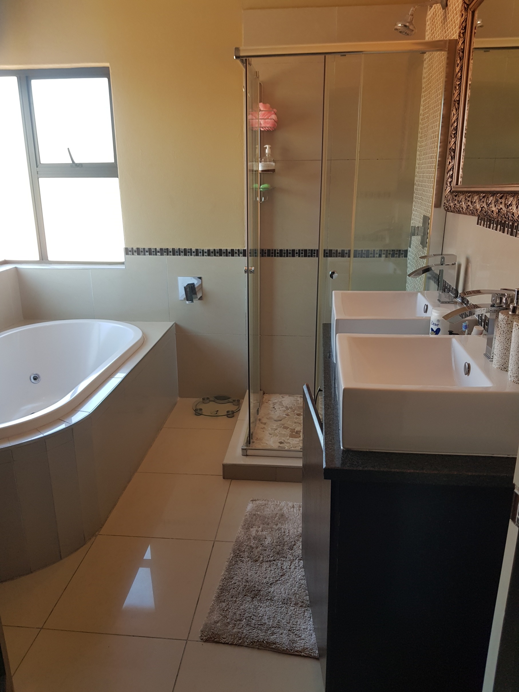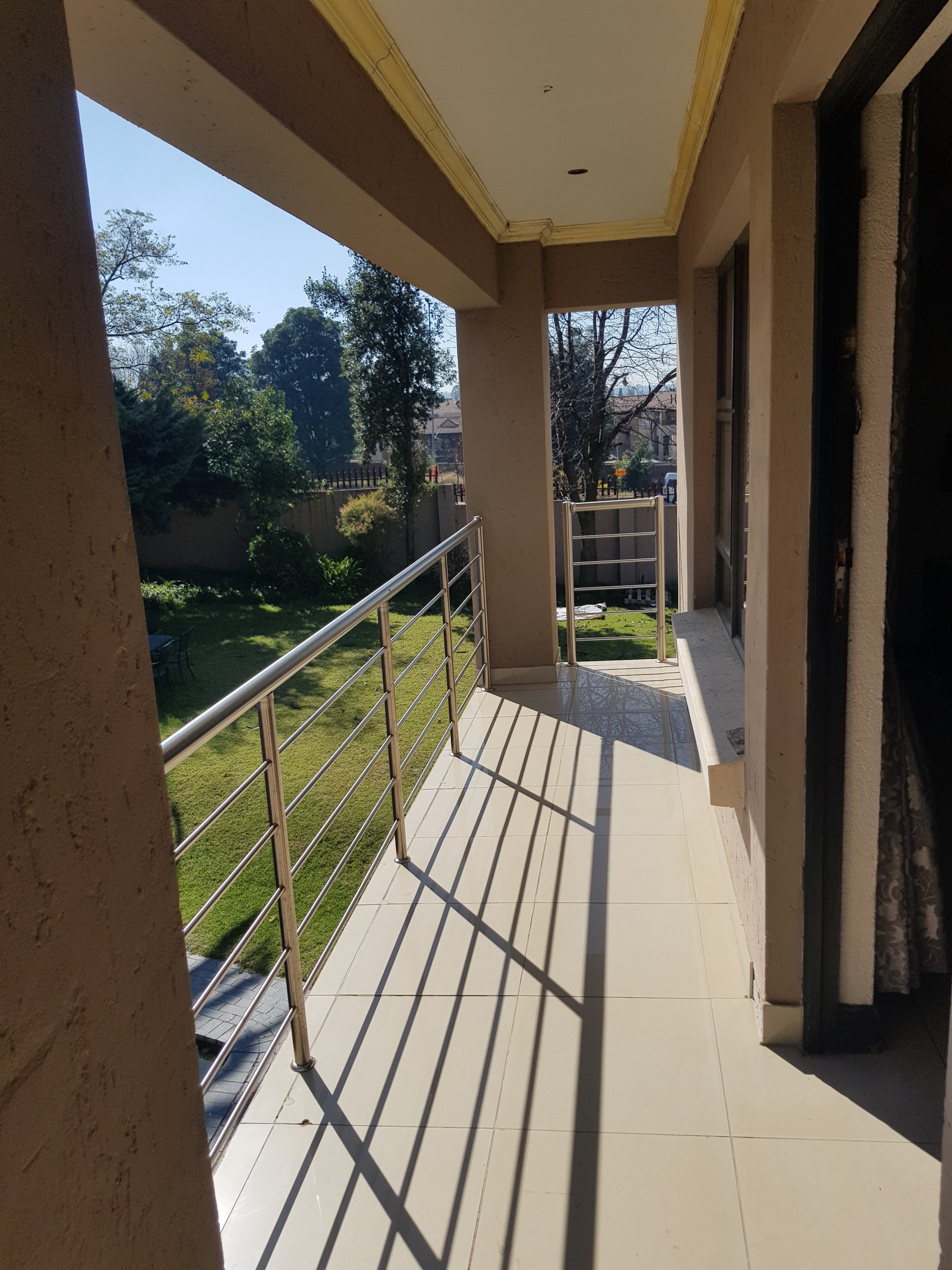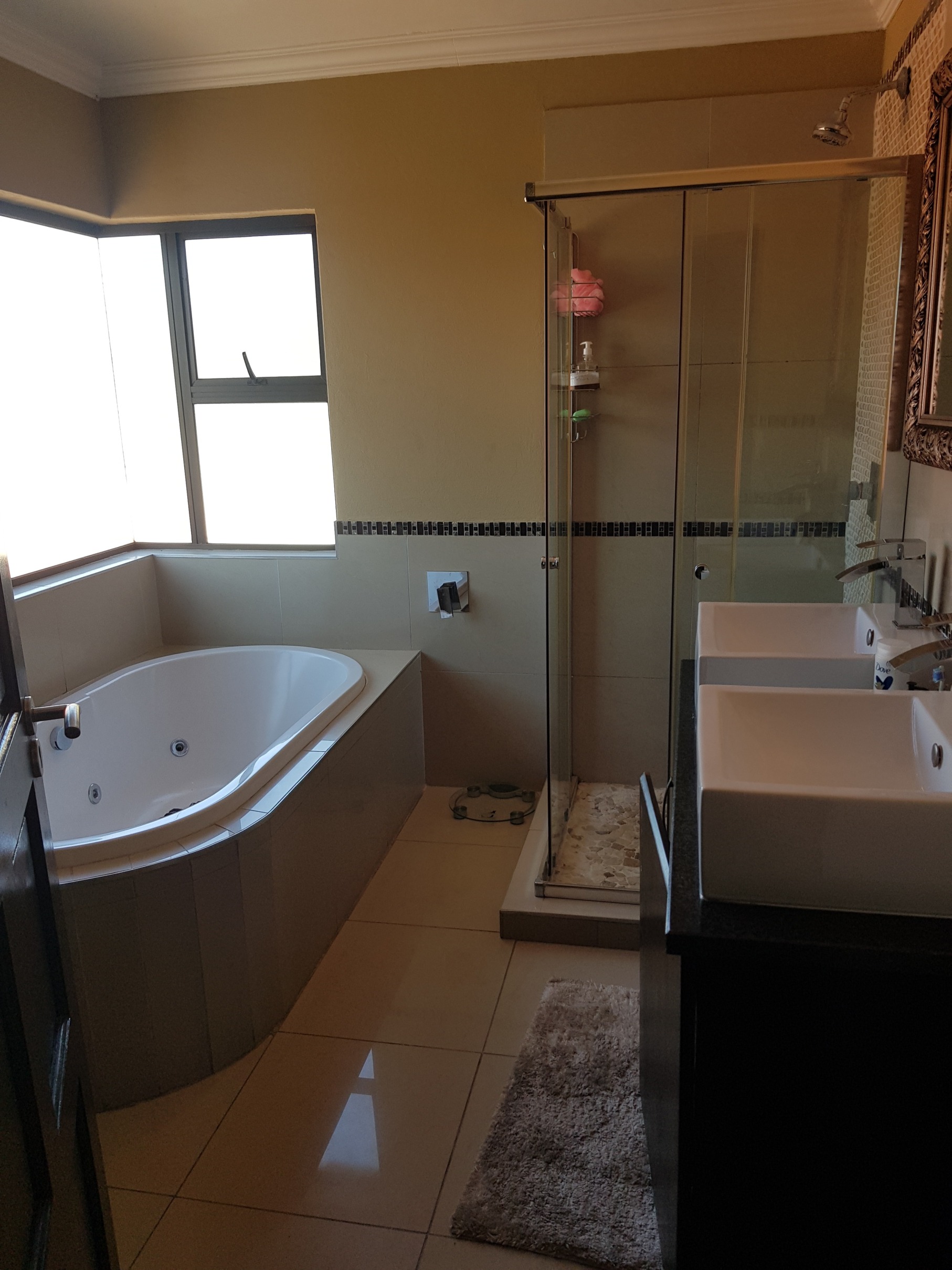 The property boasts a drive-through double garage with covered parking for two cars and additional space to accommodate up to five more vehicles within the yard. Outdoor features include a sparkling swimming pool, a lapa for entertainment, and four upstairs balconies offering breathtaking mountain views. The expansive 1,239 m2 yard is fully secured with electric fencing for peace of mind.