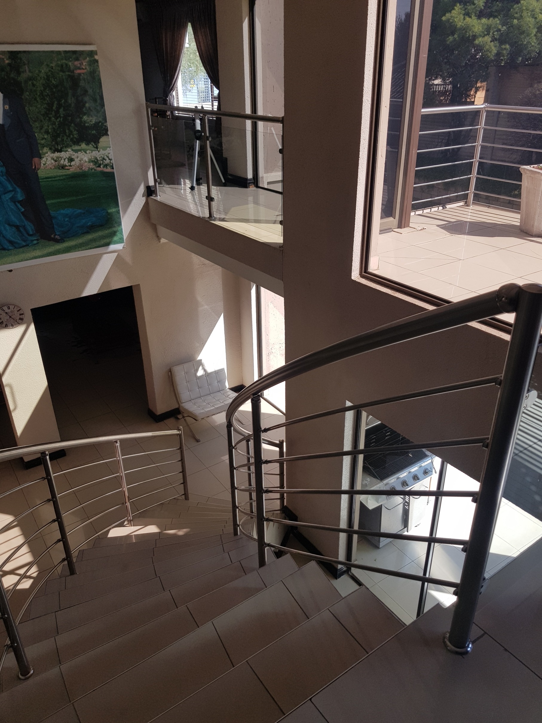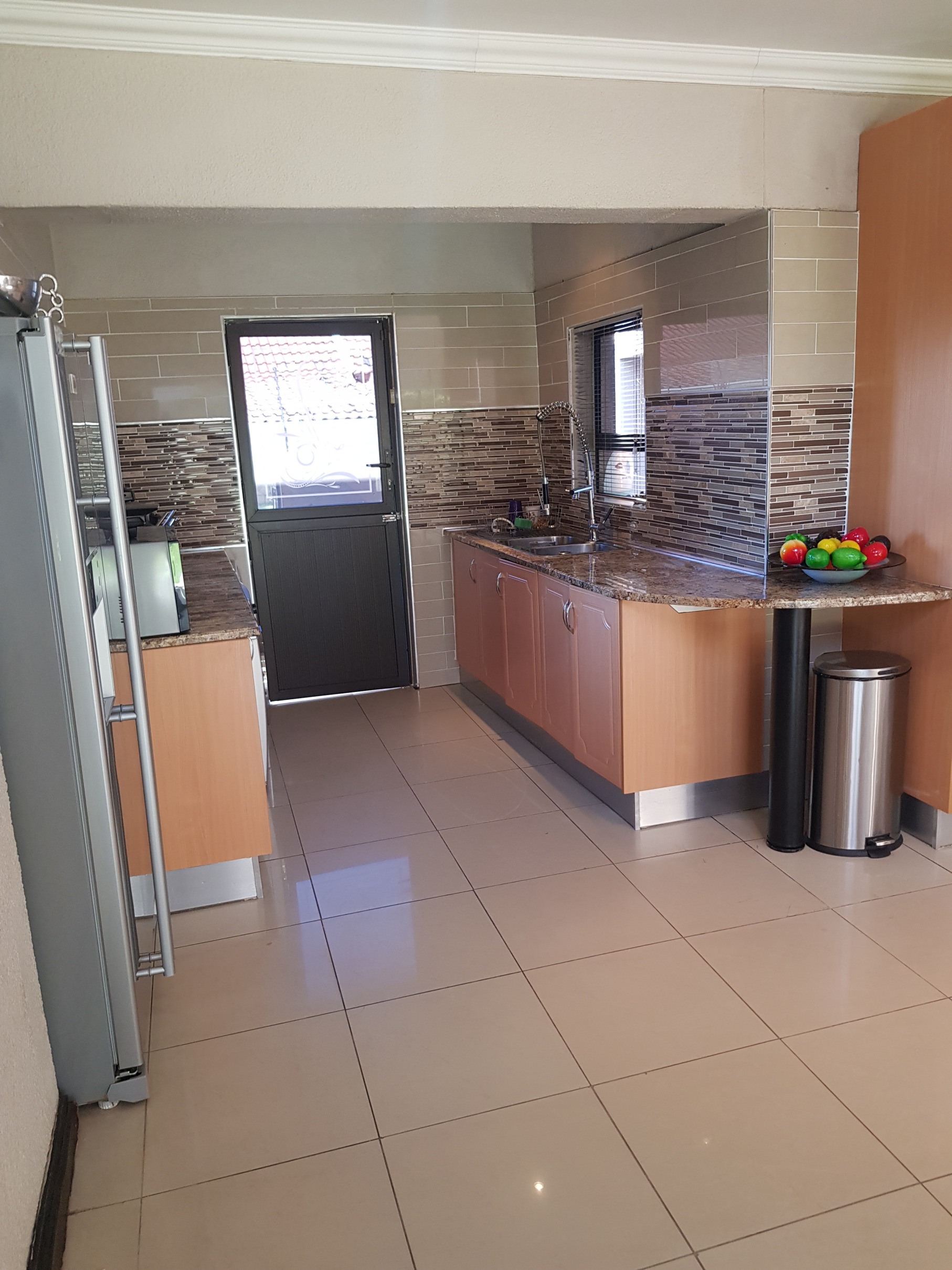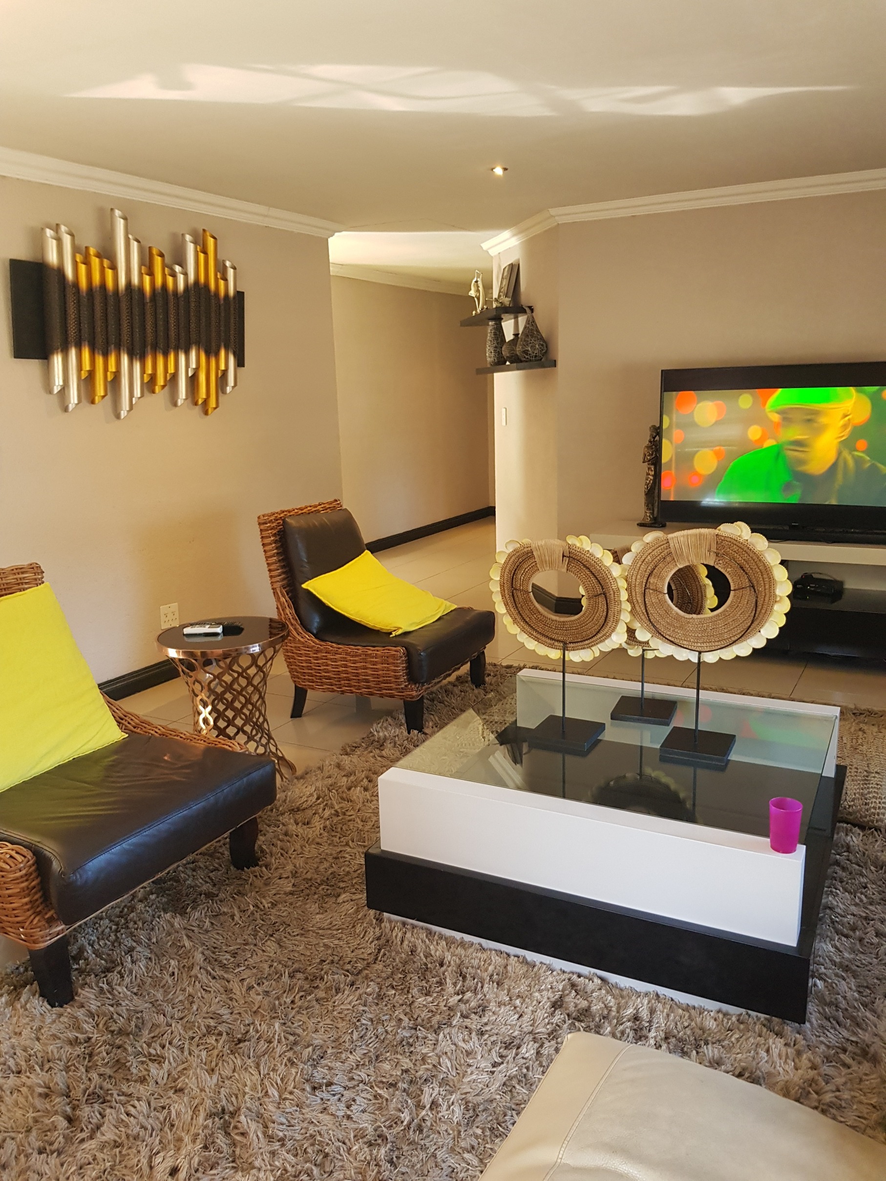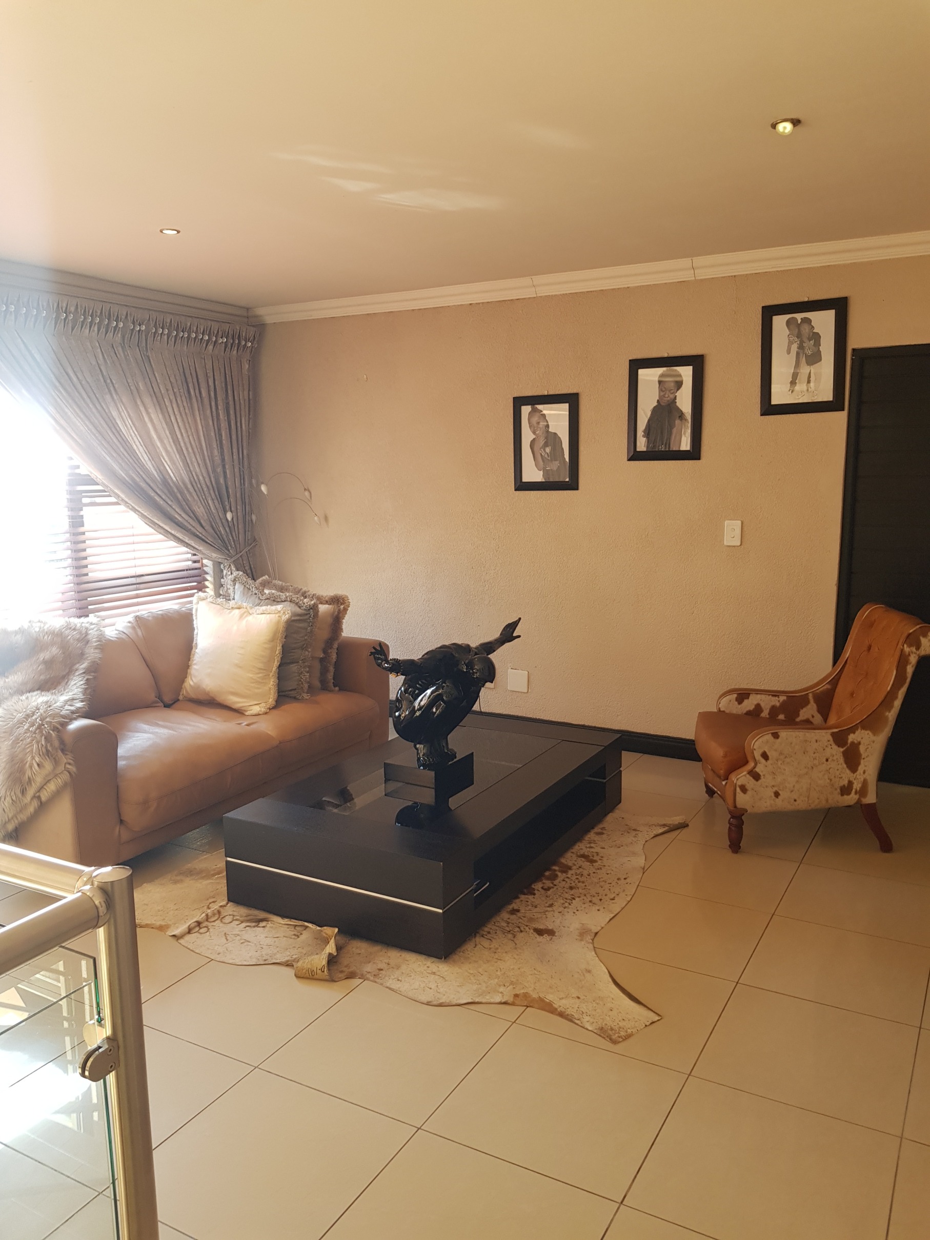 The property boasts a drive-through double garage with covered parking for two cars and additional space to accommodate up to five more vehicles within the yard. Outdoor features include a sparkling swimming pool, a lapa for entertainment, and four upstairs balconies offering breathtaking mountain views. The expansive 1,239 m2 yard is fully secured with electric fencing for peace of mind.