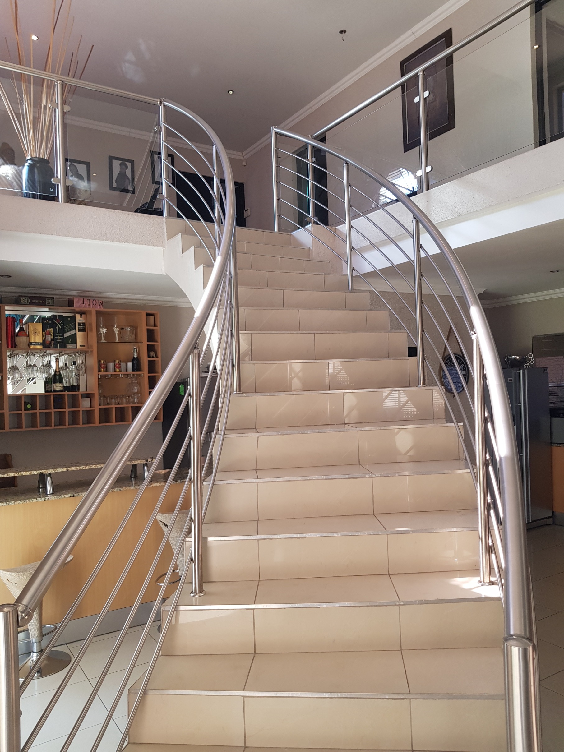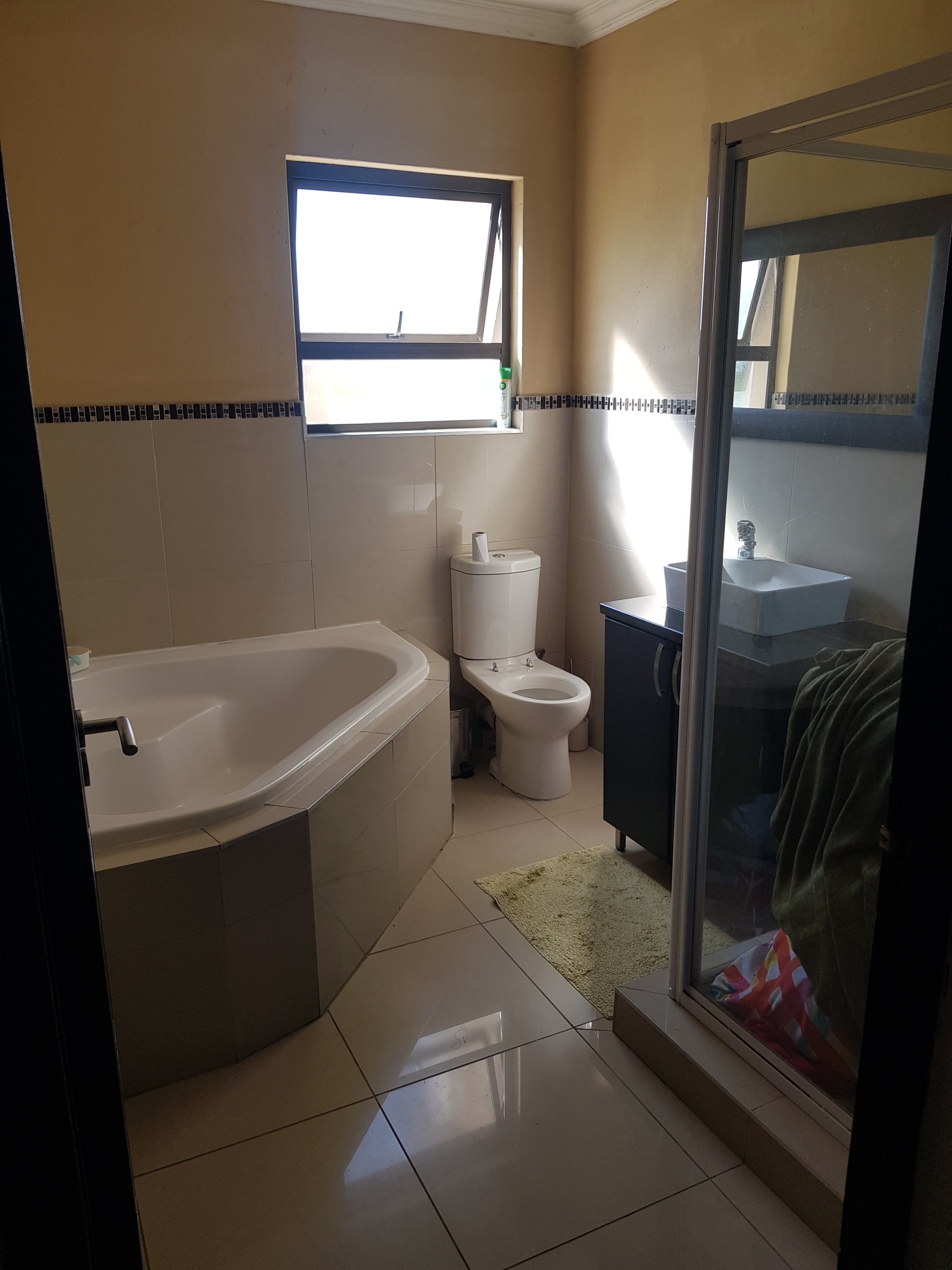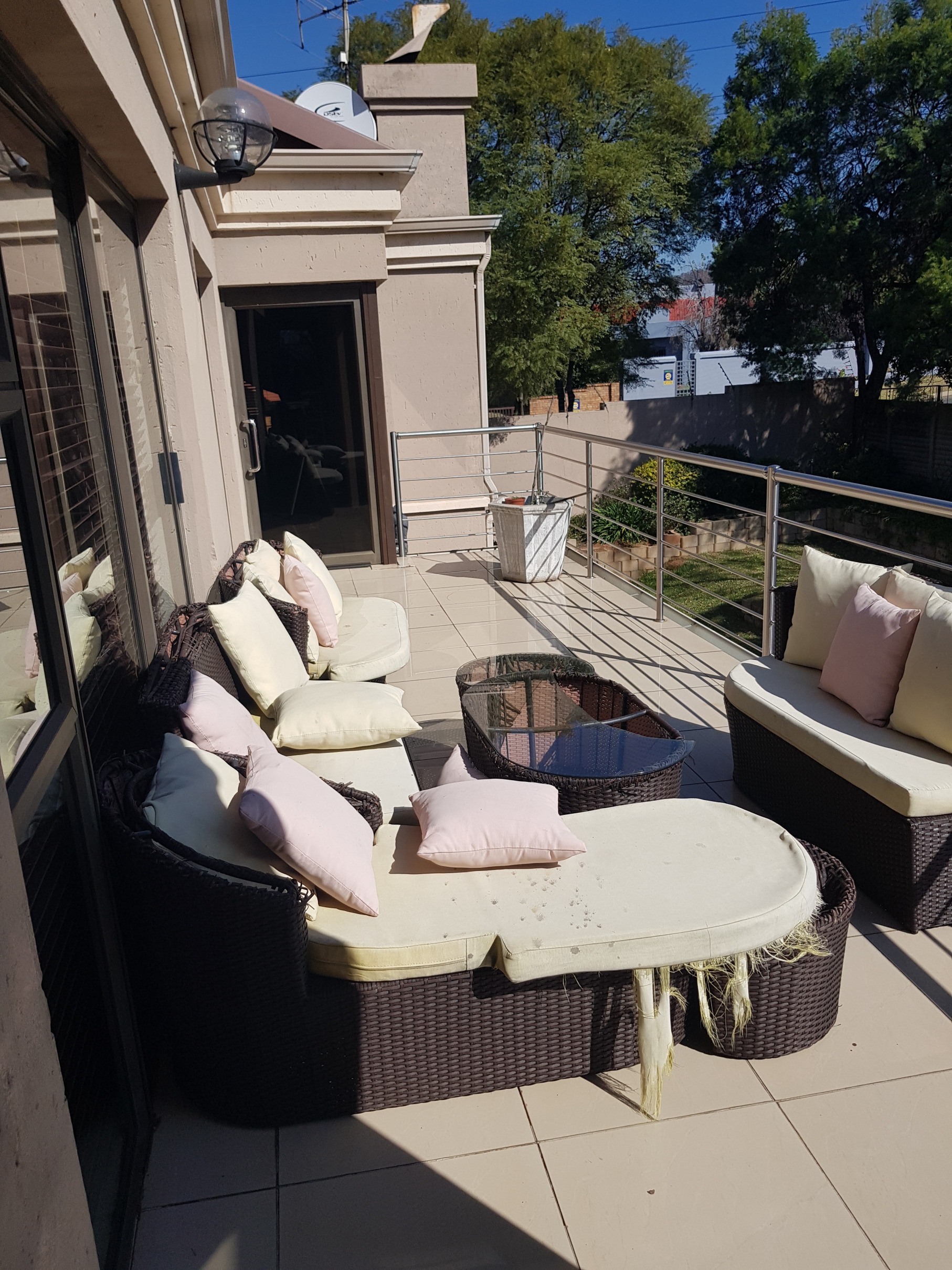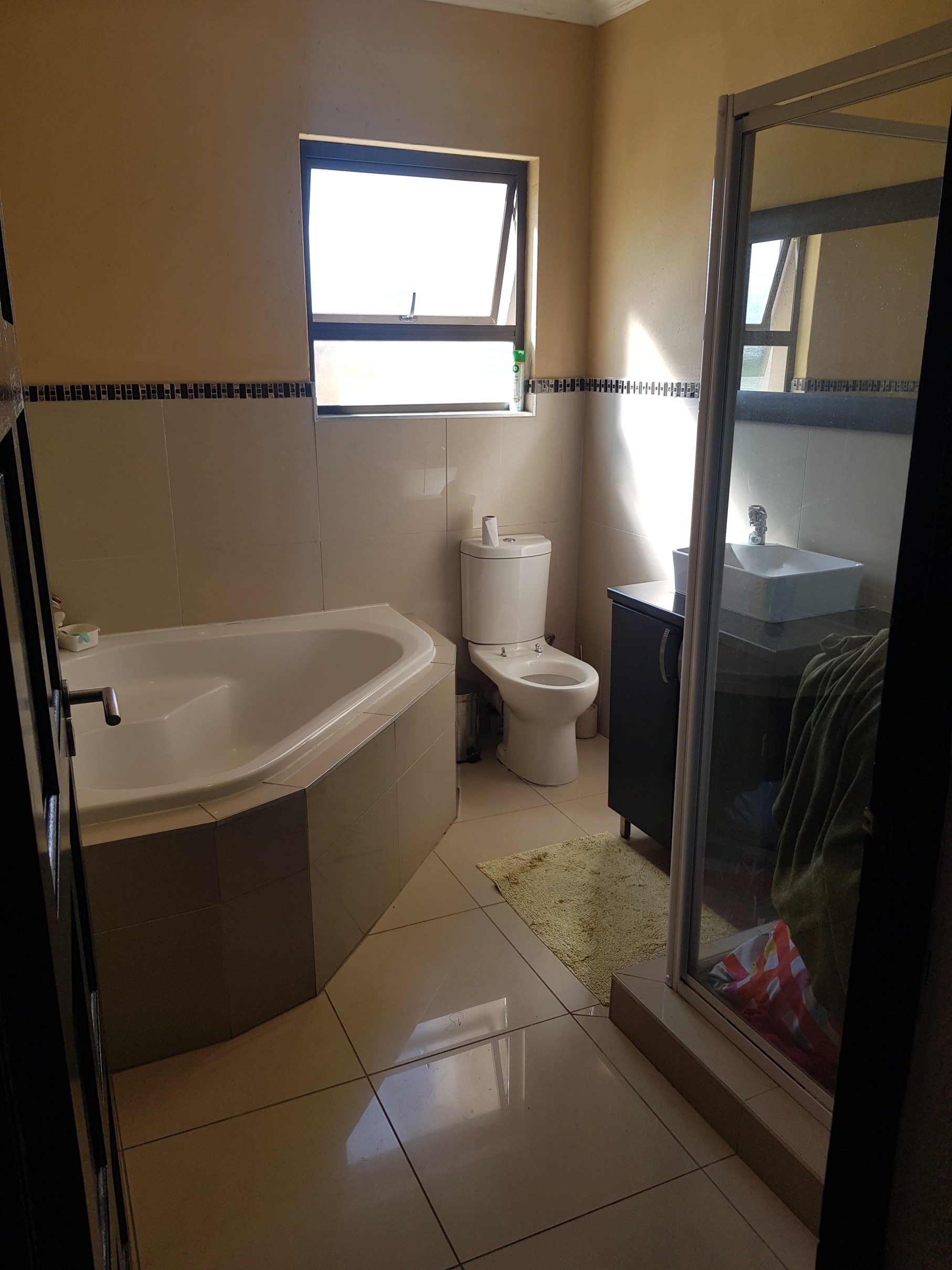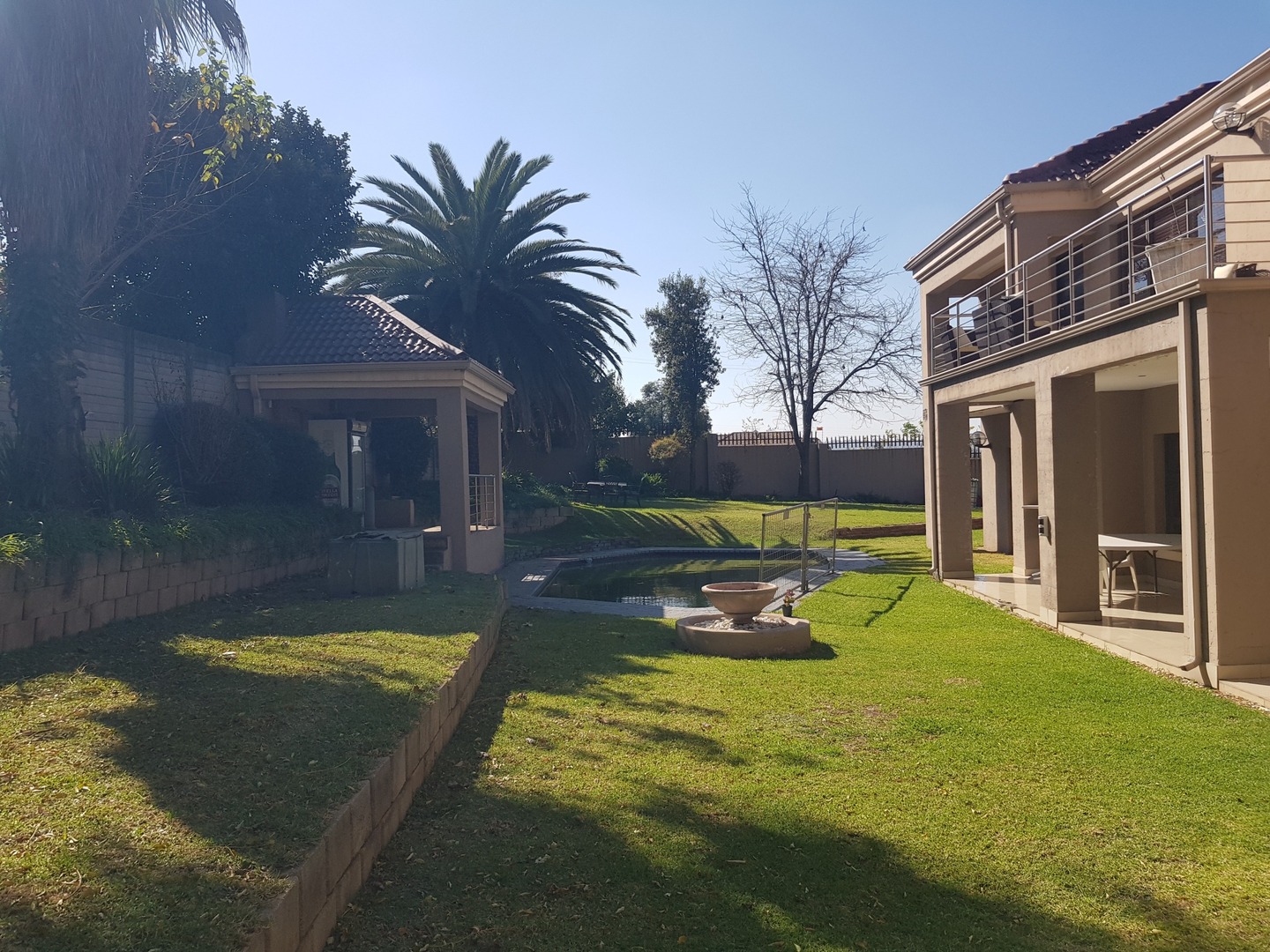 The property boasts a drive-through double garage with covered parking for two cars and additional space to accommodate up to five more vehicles within the yard. Outdoor features include a sparkling swimming pool, a lapa for entertainment, and four upstairs balconies offering breathtaking mountain views. The expansive 1,239 m2 yard is fully secured with electric fencing for peace of mind.