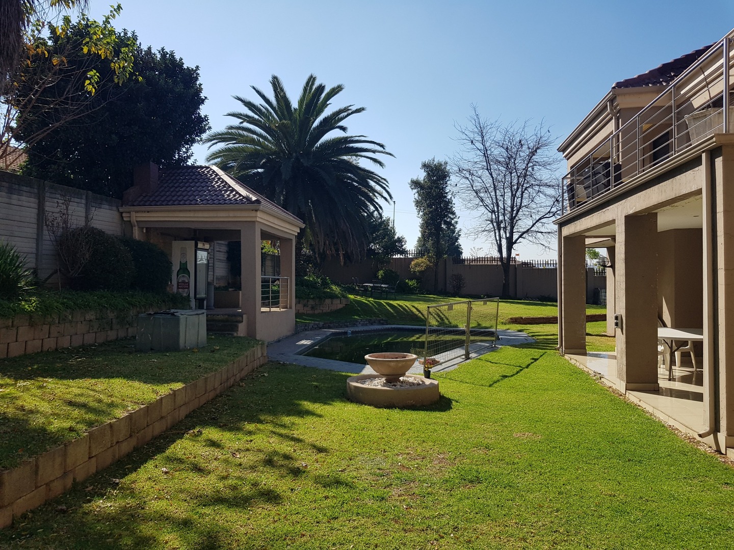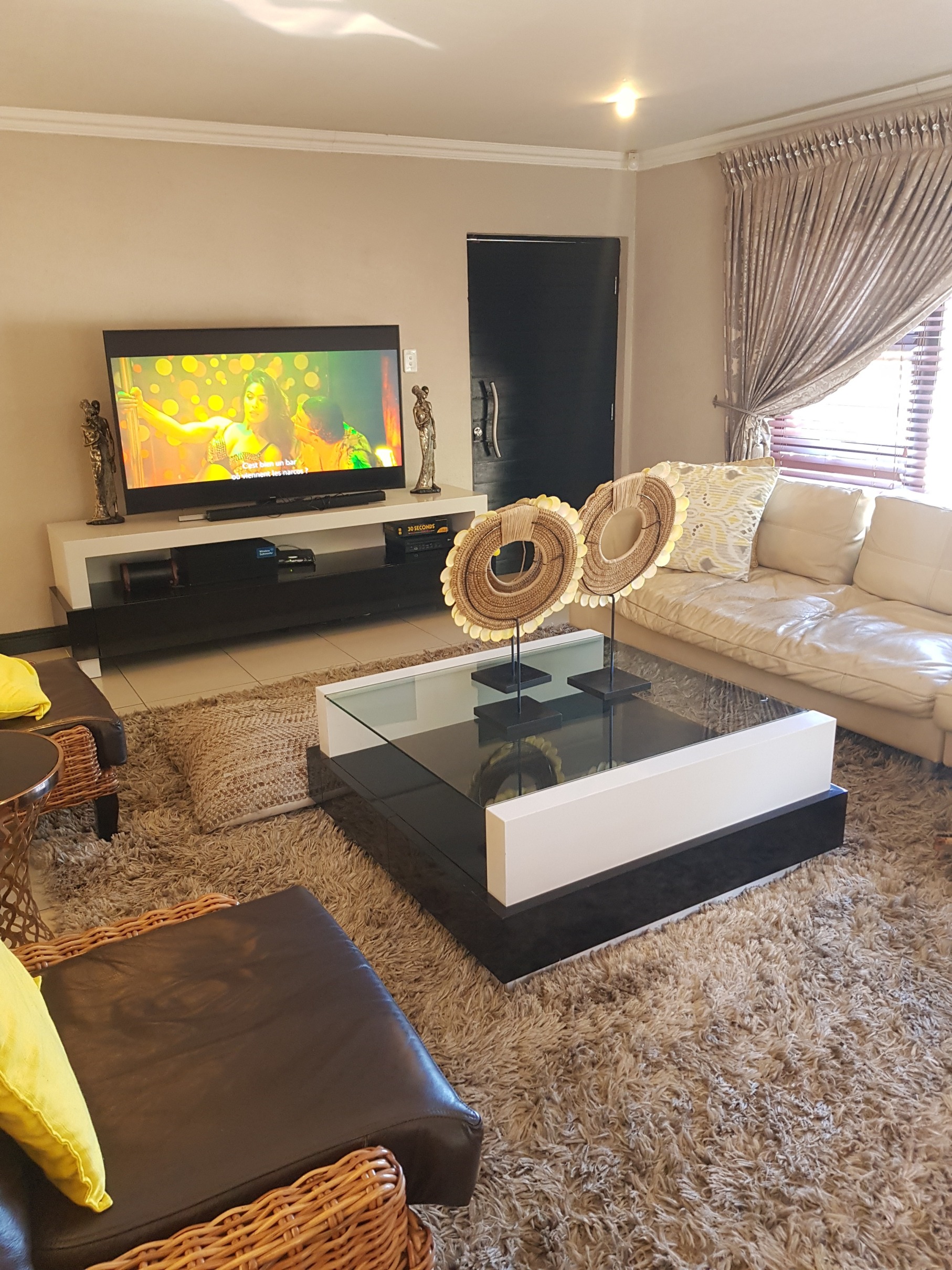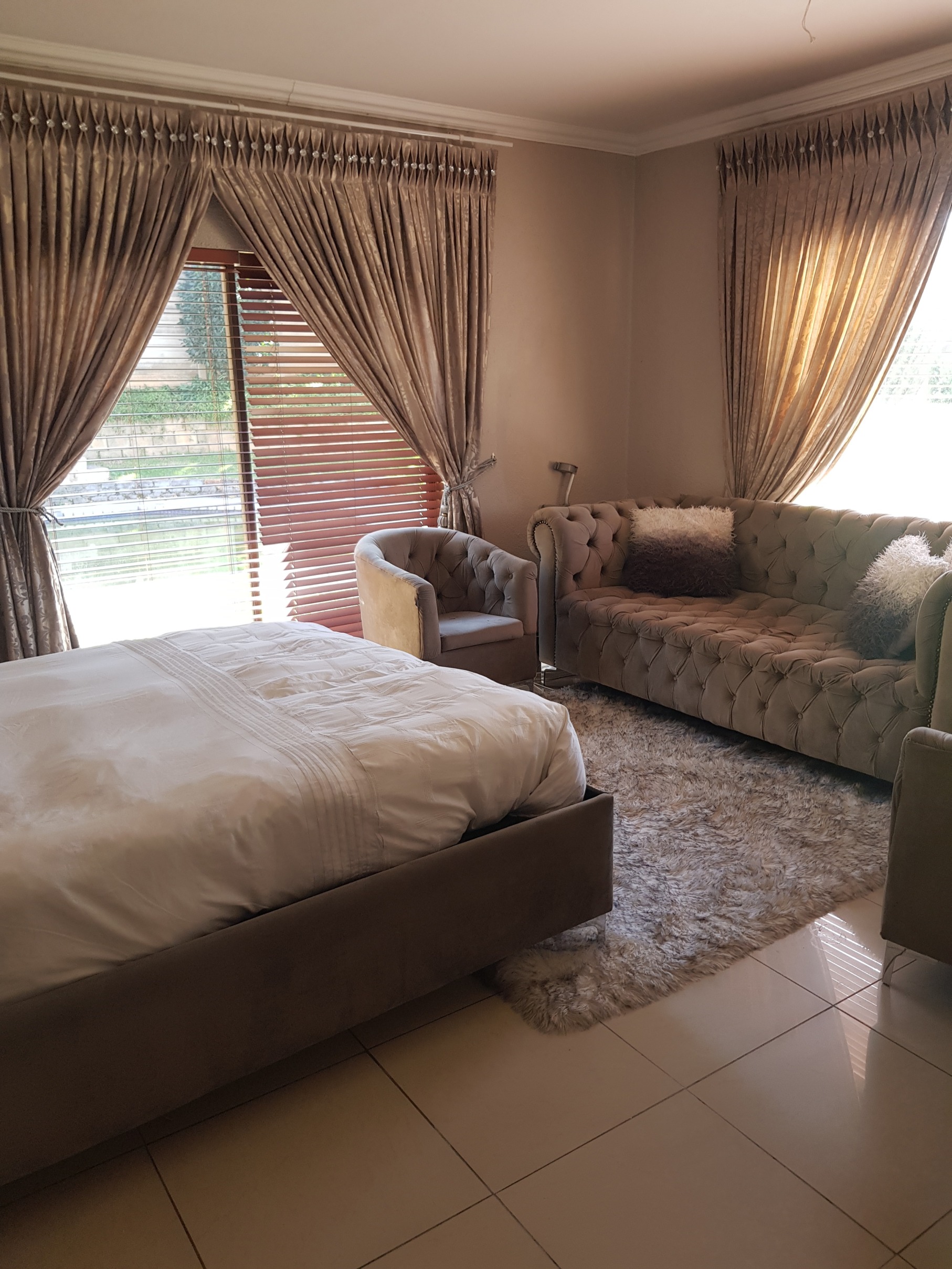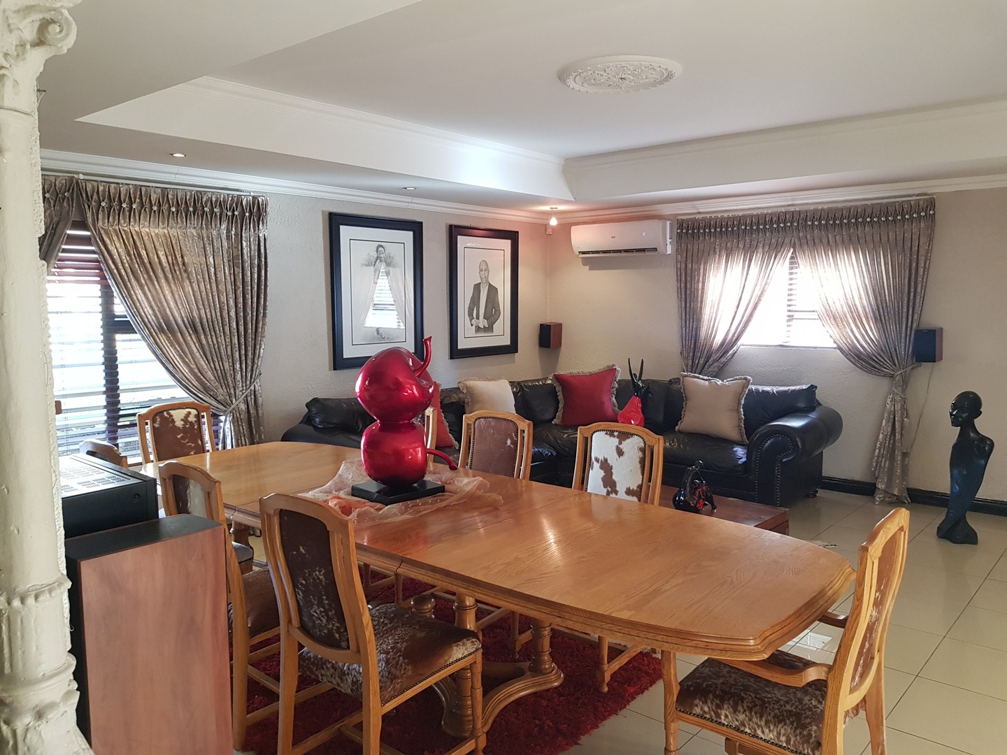 This stunning ultra-modern 6-bedroom residence is located in the quiet and sought-after suburb of Meredale, in the south of Johannesburg. Designed for luxury living, this elegant home features five en-suite bathrooms, a pyjama lounge, two guest toilets, a spacious living area, dining room, formal lounge, fitted bar, linen cupboards, a home office, and a modern kitchen with a scullery.