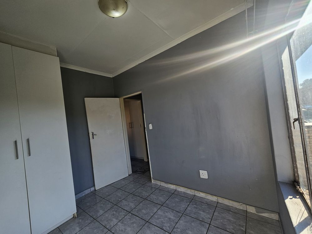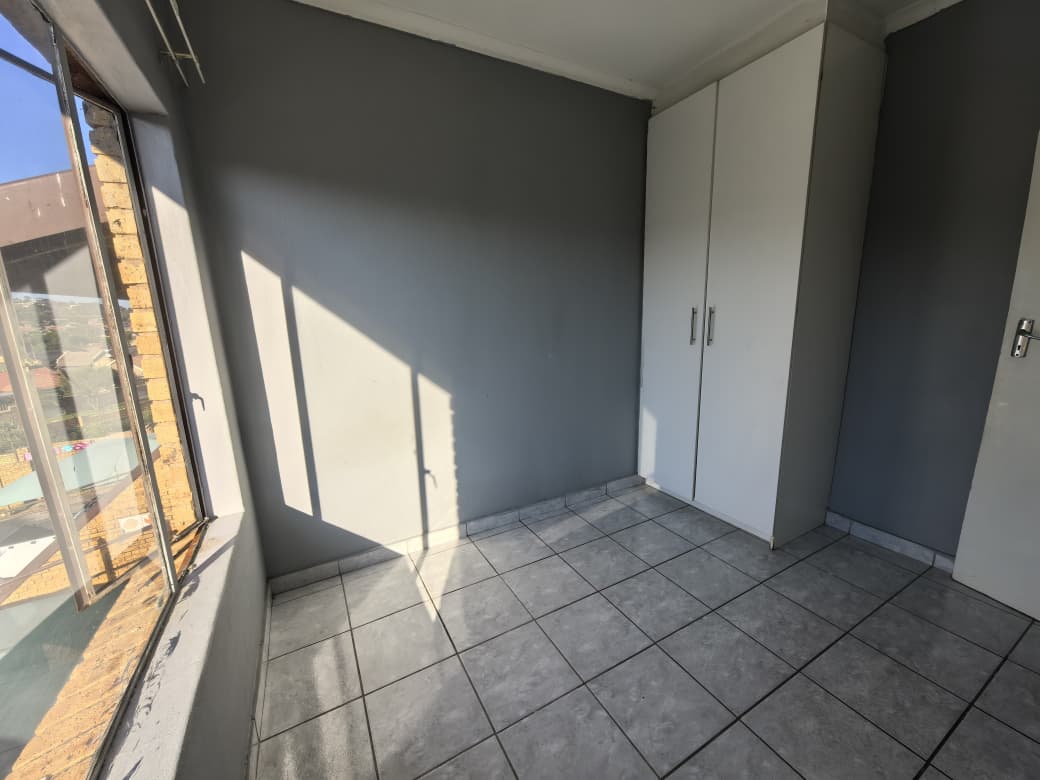 This lovely upstairs townhouse offers two cozy bedrooms. The kitchen boasts ample built-in cupboards and is designed in an open-plan layout that seamlessly connects to the inviting lounge and balcony. The bathroom includes a shower over the bath, a basin, and a toilet.