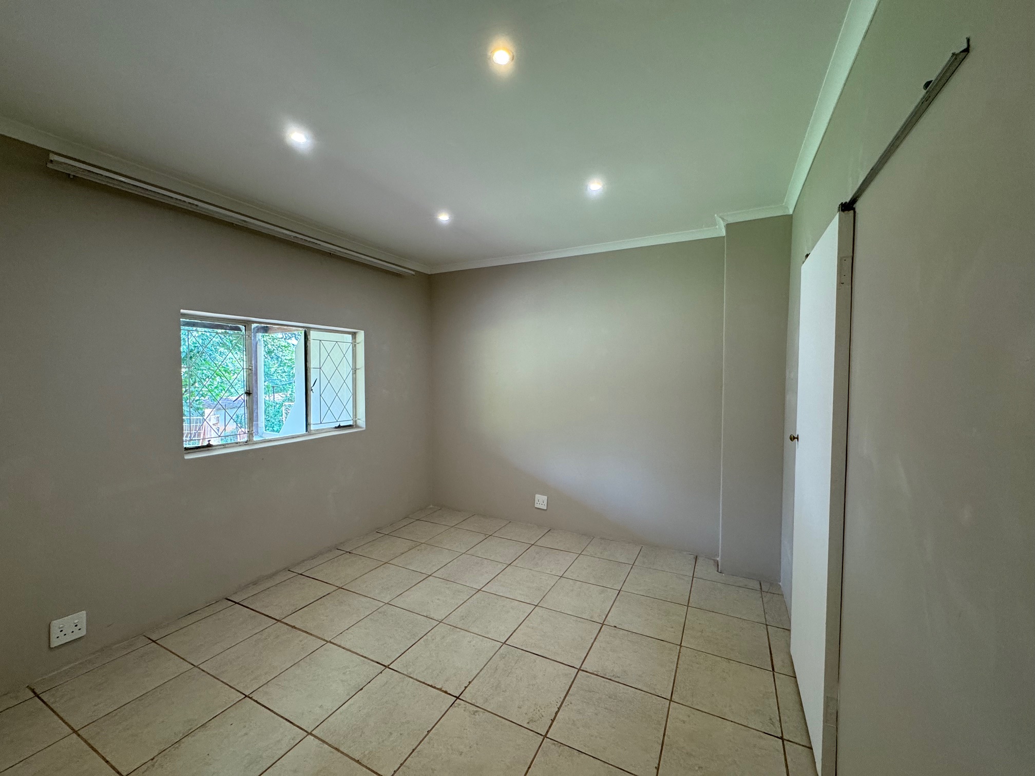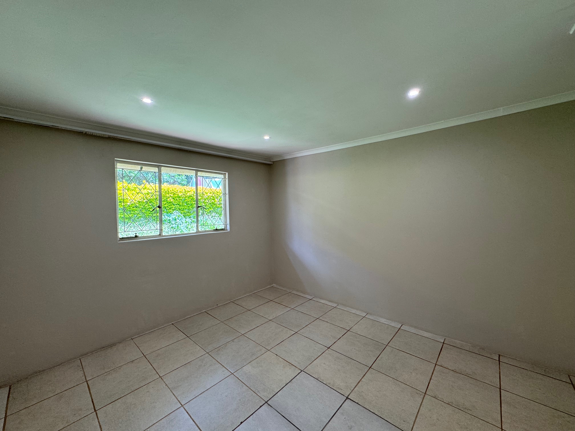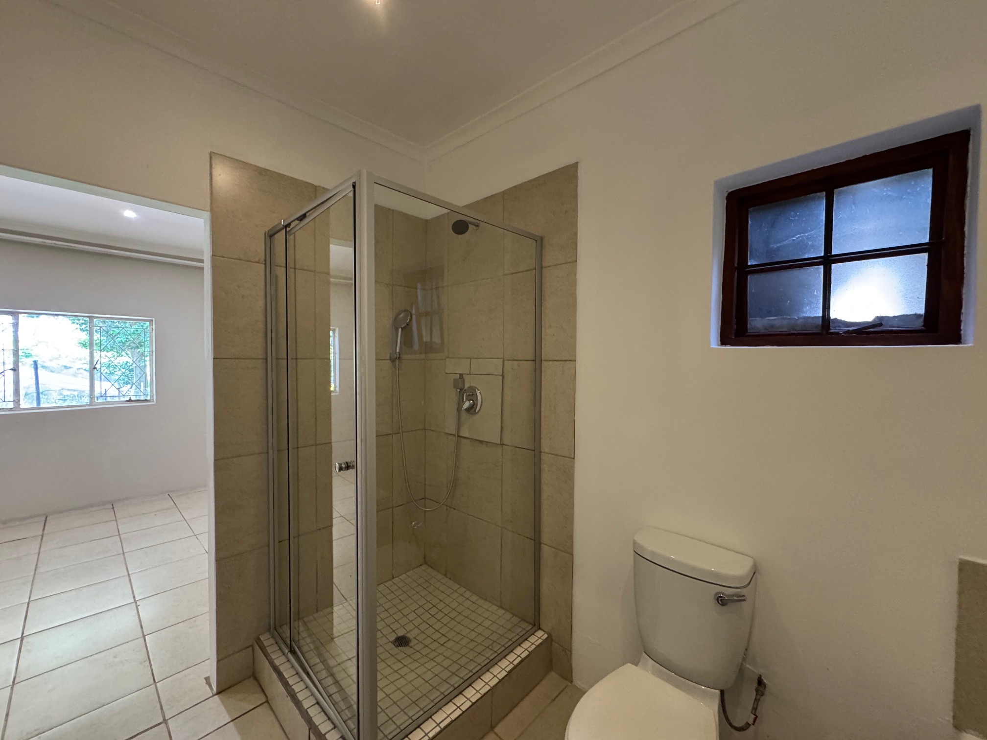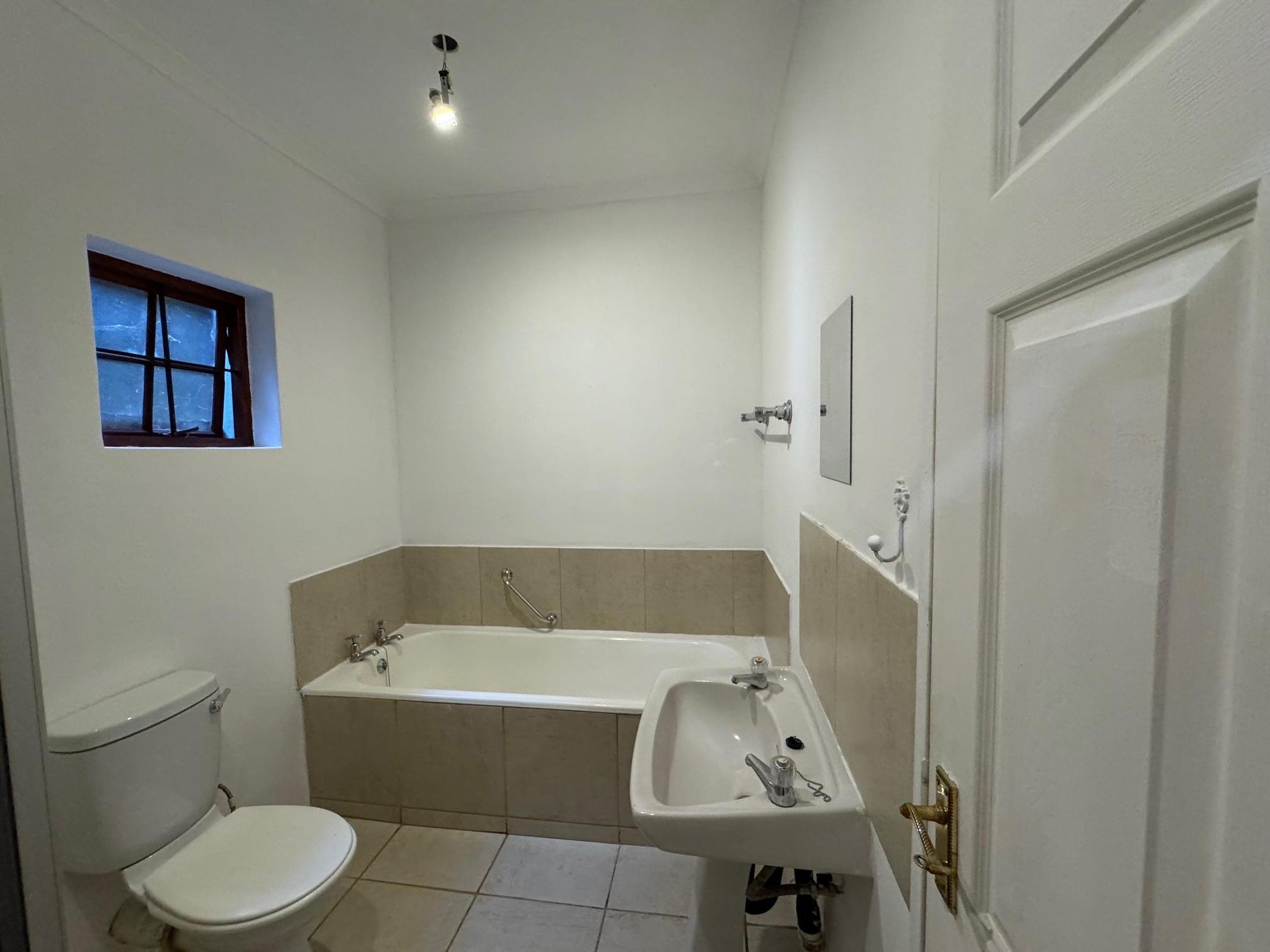 The main bedroom includes built-in cupboards and an en suite bathroom fitted with a shower, bath, basin, and toilet. This bathroom can also be accessed from the passage, making it convenient for guests.