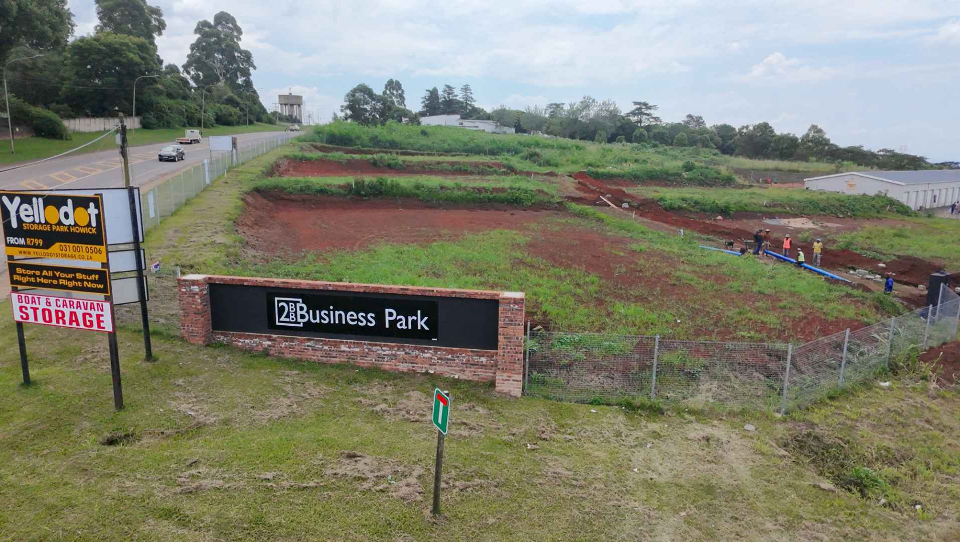 The development includes high-clearance roller doors, secure perimeter fencing, and space for vehicle access, loading, or outdoor storage. The wide street frontage allows for good visibility and future signage opportunities.
