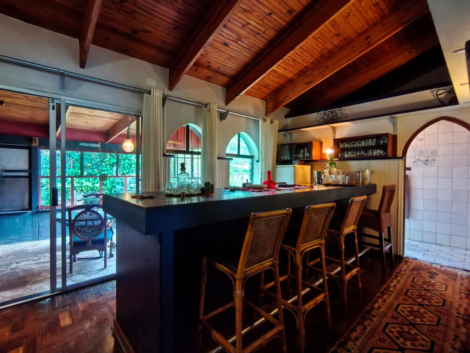 - From the main lounge, one can move south into a bar/pub area, complete with a guest bathroom and access to a large, enclosed covered braai room. This impressive space features a substantial built-in braai and glass panels overlooking the garden - perfect for year-round entertaining.