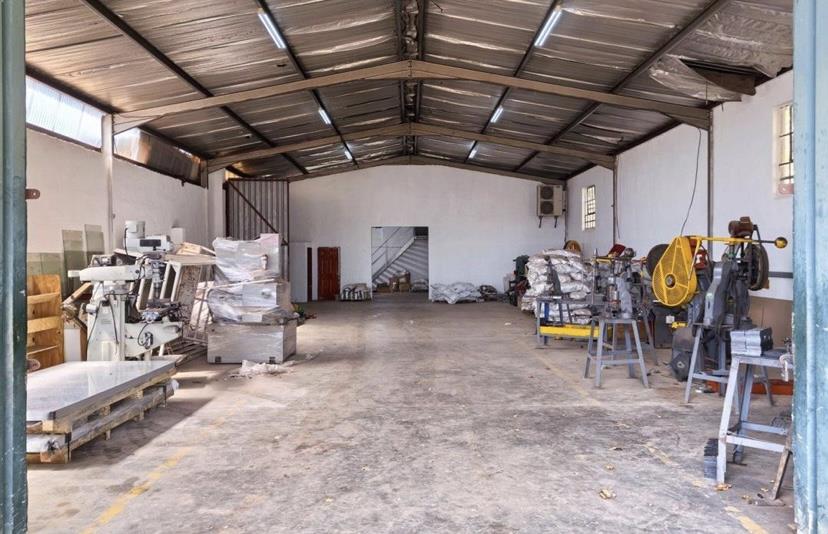 Set on a generous 1,388sqm plot, the property features approximately 800sqm of under-roof space, thoughtfully laid out to include a mix of warehouse, office, and support areas. The warehouse boasts internal clearance heights of ±4.2 to ±5.1 meters, allowing for flexible usage and efficient storage capacity. Multiple covered workshop and storage zones add further functionality to the site.