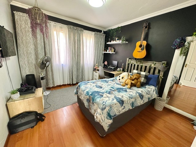 Two well-sized bedrooms with built-in cupboards and sleek laminated flooring, serviced by 1 modern full bathroom.