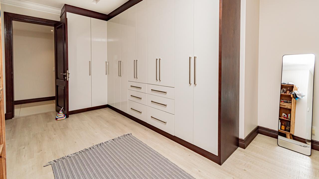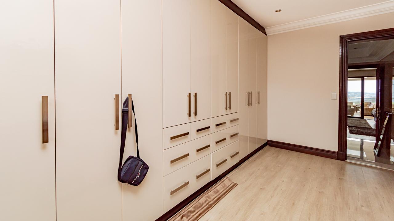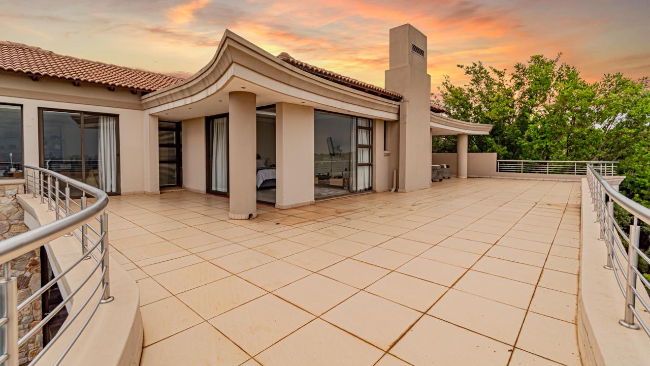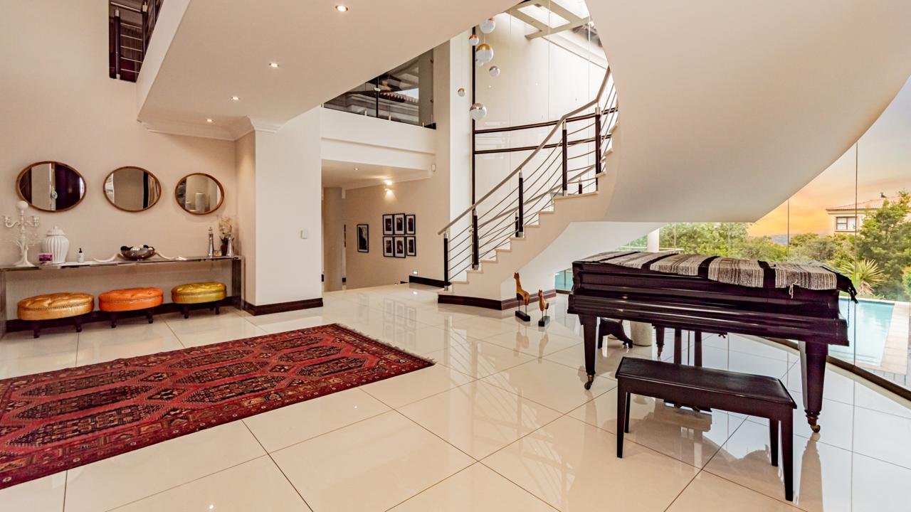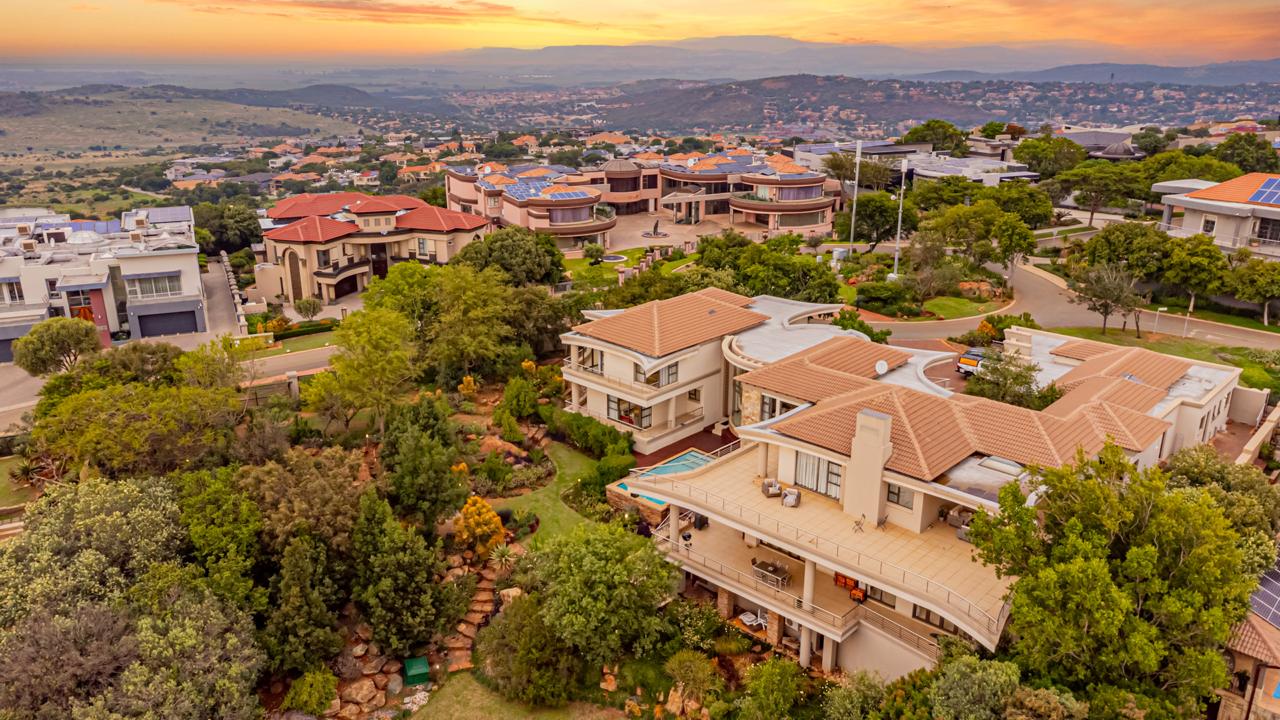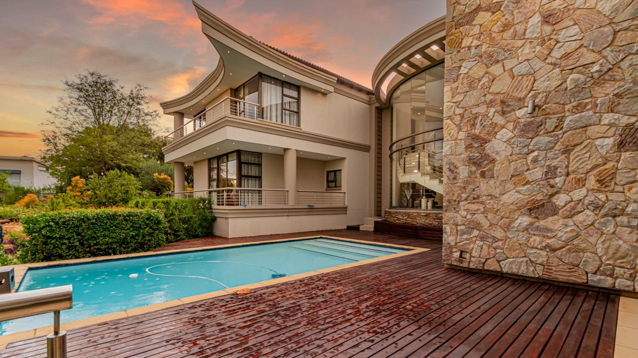 The property includes garaging for five vehicles with an additional side entrance for extra parking or further garaging. Two staff quarters add practicality as well as prepaid electricity and a server room for fully automation integration. All of this is situated within an eco-conscious estate renowned for its exceptional security, natural beauty, and tranquil environment.