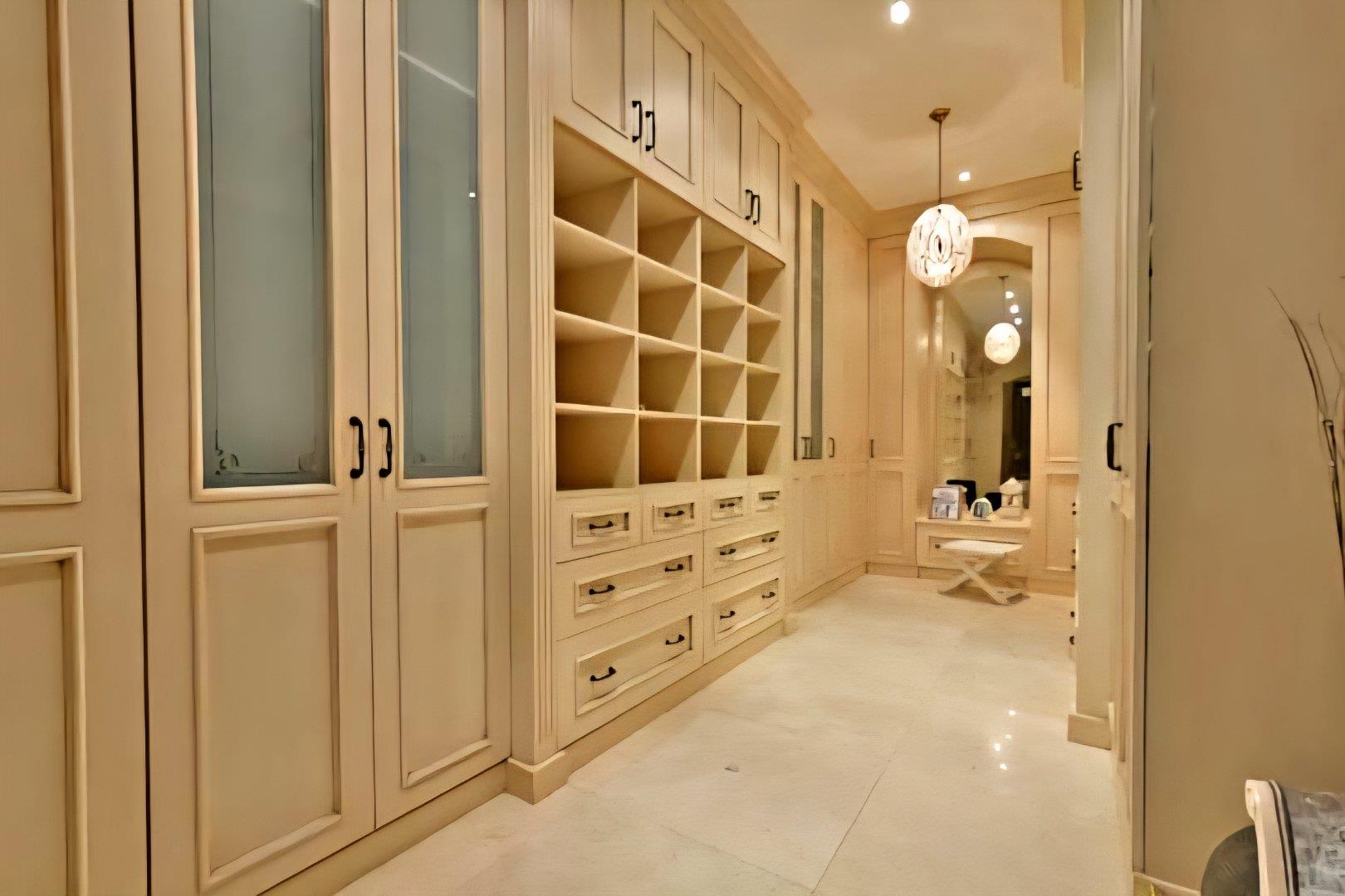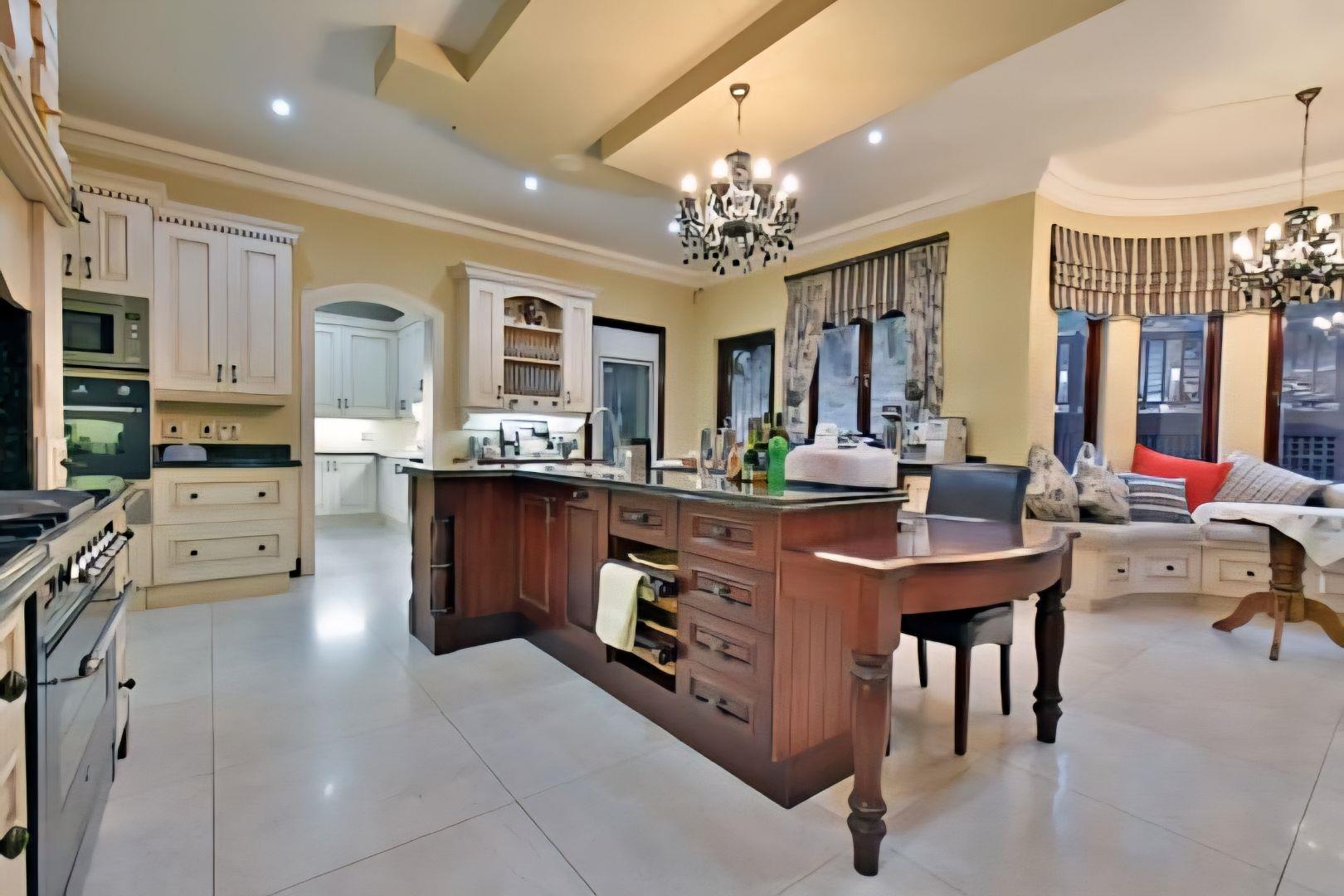A chef’s dream kitchen awaits, curated for both performance and aesthetics with premium ILVE appliances, including two electric ovens and a built-in microwave. A gas hob, two walk-in pantries, a walk-in fridge, and a separate scullery ensure ample space and convenience. A cozy nook with scenic window seating adds to the charm.