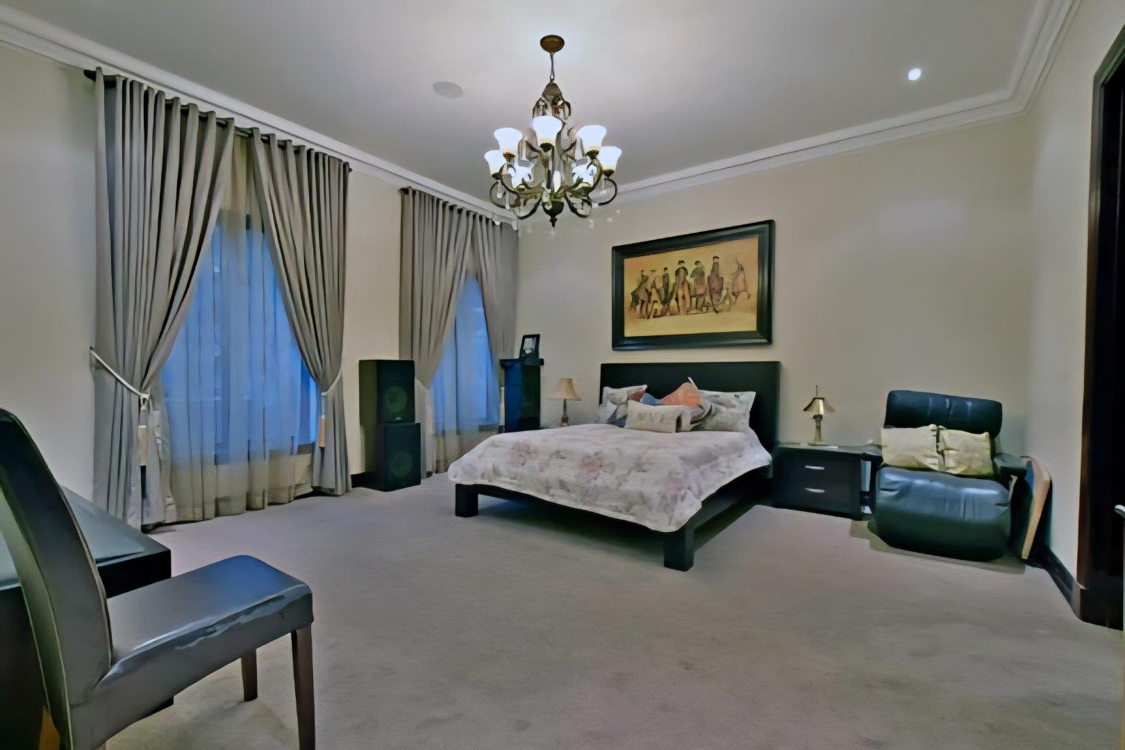 The property includes an exclusive self-contained suite featuring a private lounge, kitchen, bedroom, and full bathroom—perfect for extended family or VIP guests. Additionally, there are two en-suite bedrooms, each crafted for comfort and privacy. The grand main suite offers His & Hers bedrooms, each with its own walk-in closet, complemented by a shared luxurious en-suite bathroom. An executive study provides breathtaking panoramic views, and a guest bathroom is available for convenience.