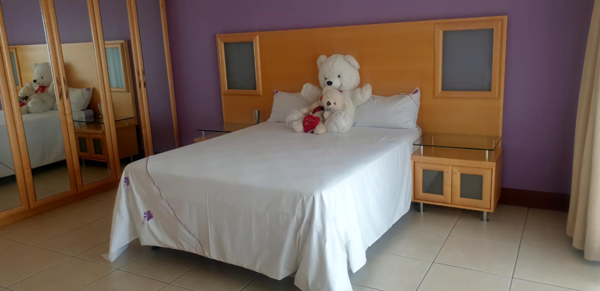 - Five bedrooms (or four bedrooms and a gym room), all with custom wooden built-in cupboards.