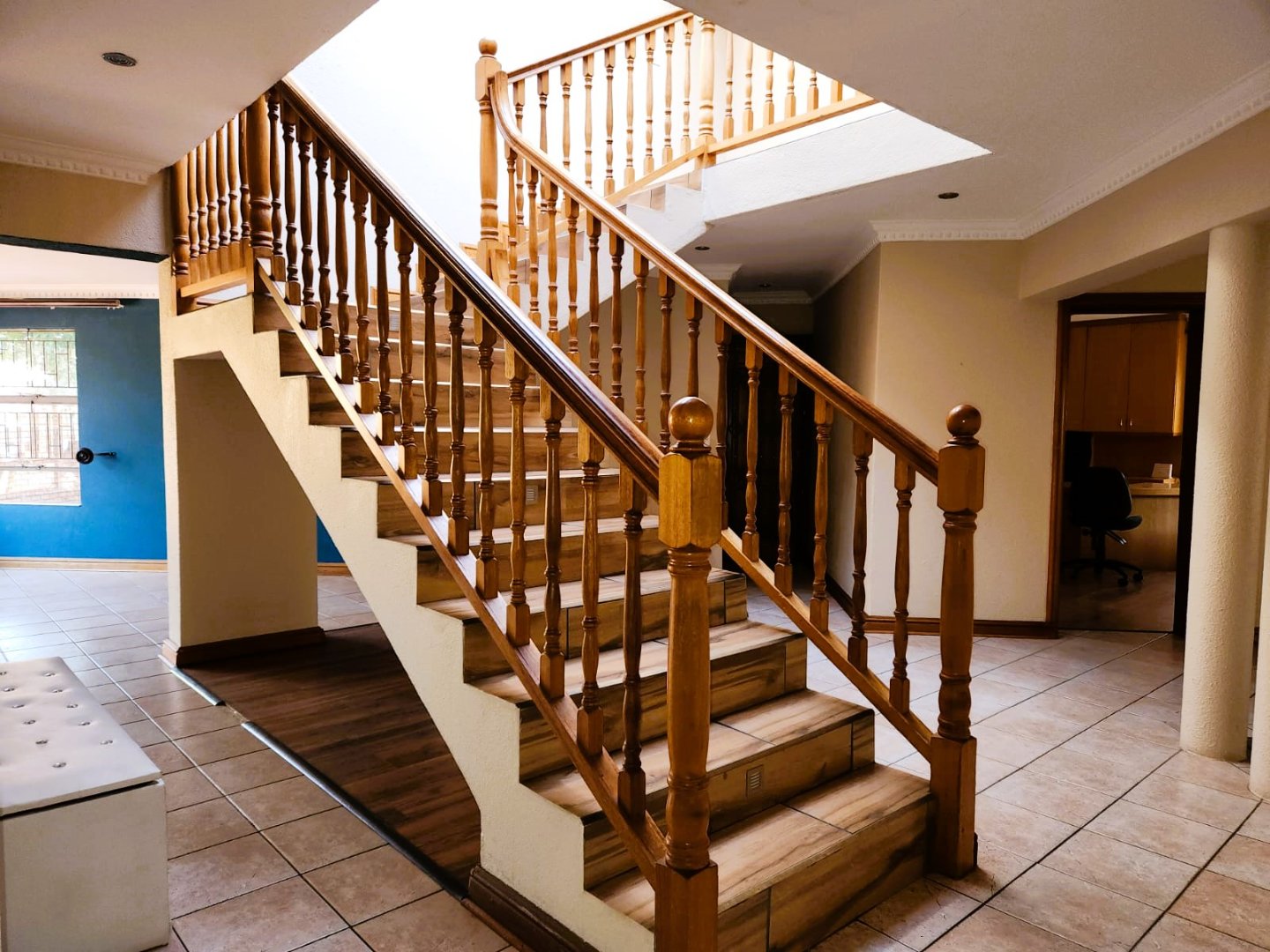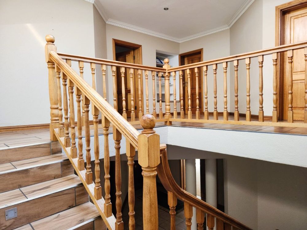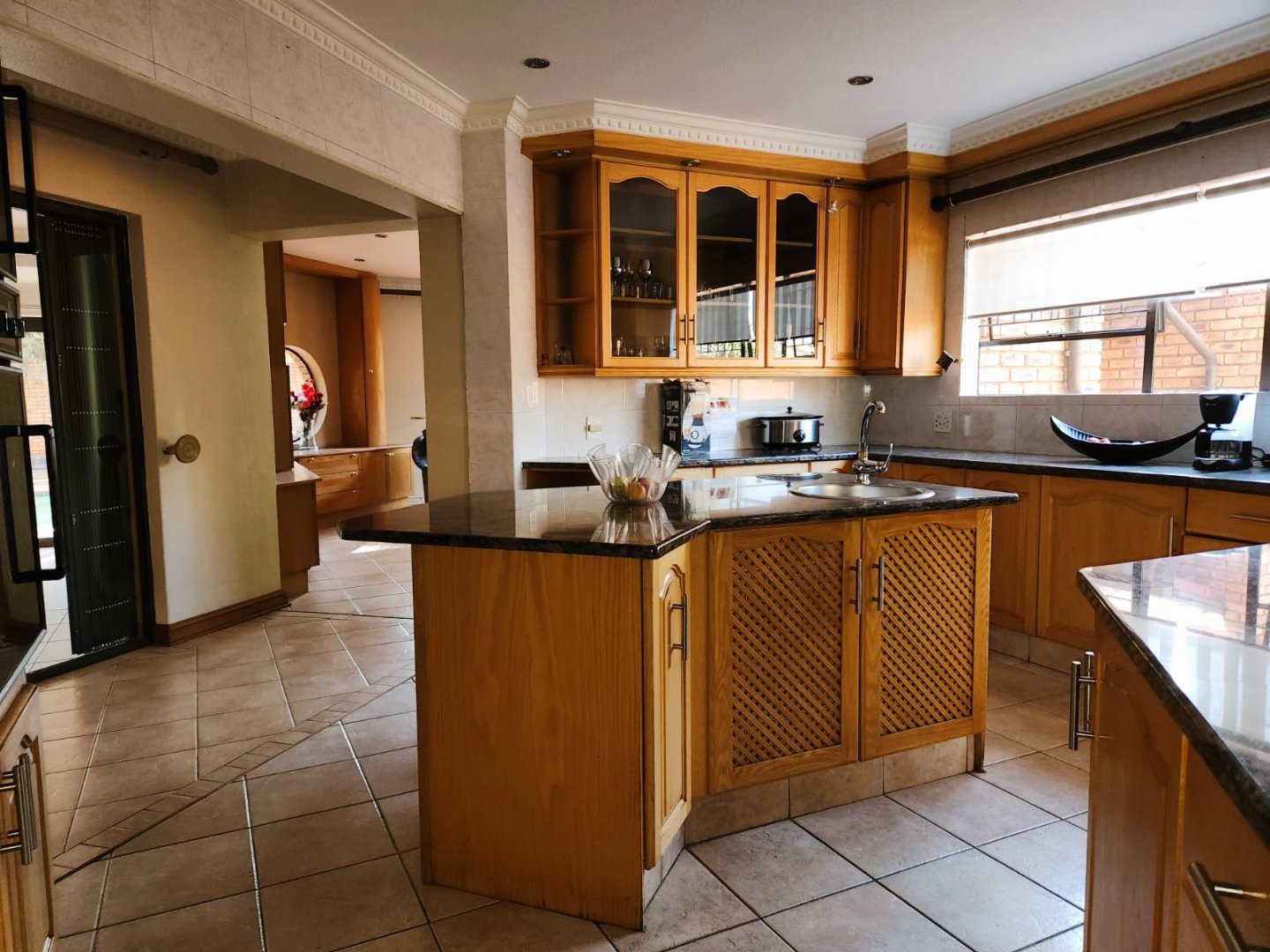 Step outside to a sparkling swimming pool set within a lush garden, or enjoy evenings around the boma with a warm fire. The property also offers four automated garages plus additional parking for four vehicles. Security is a top priority with CCTV cameras and electric fencing.
