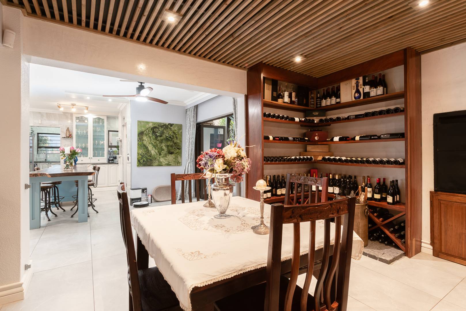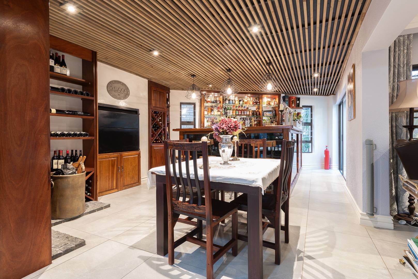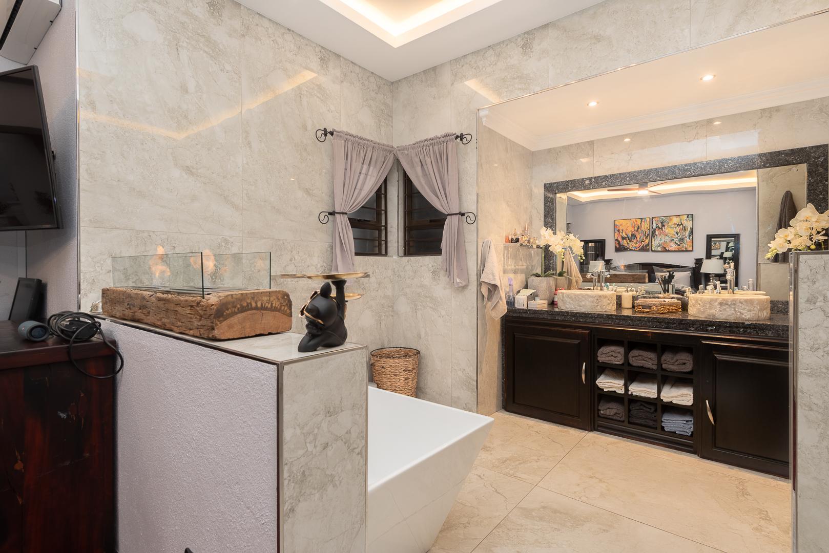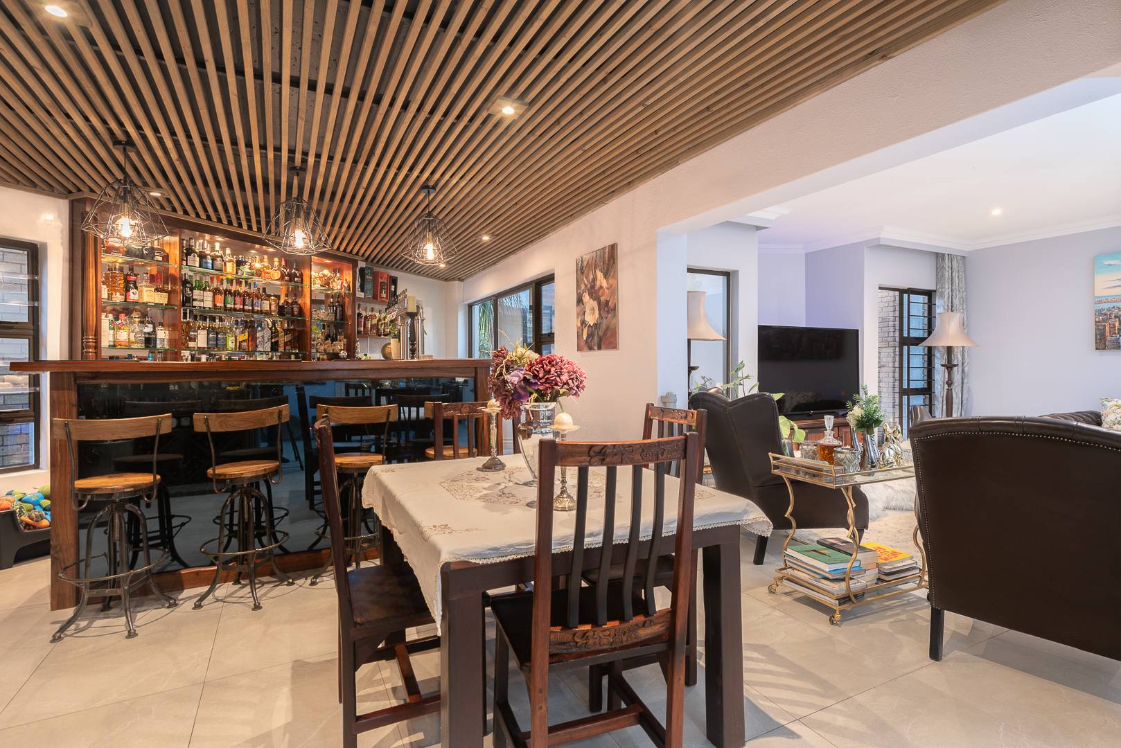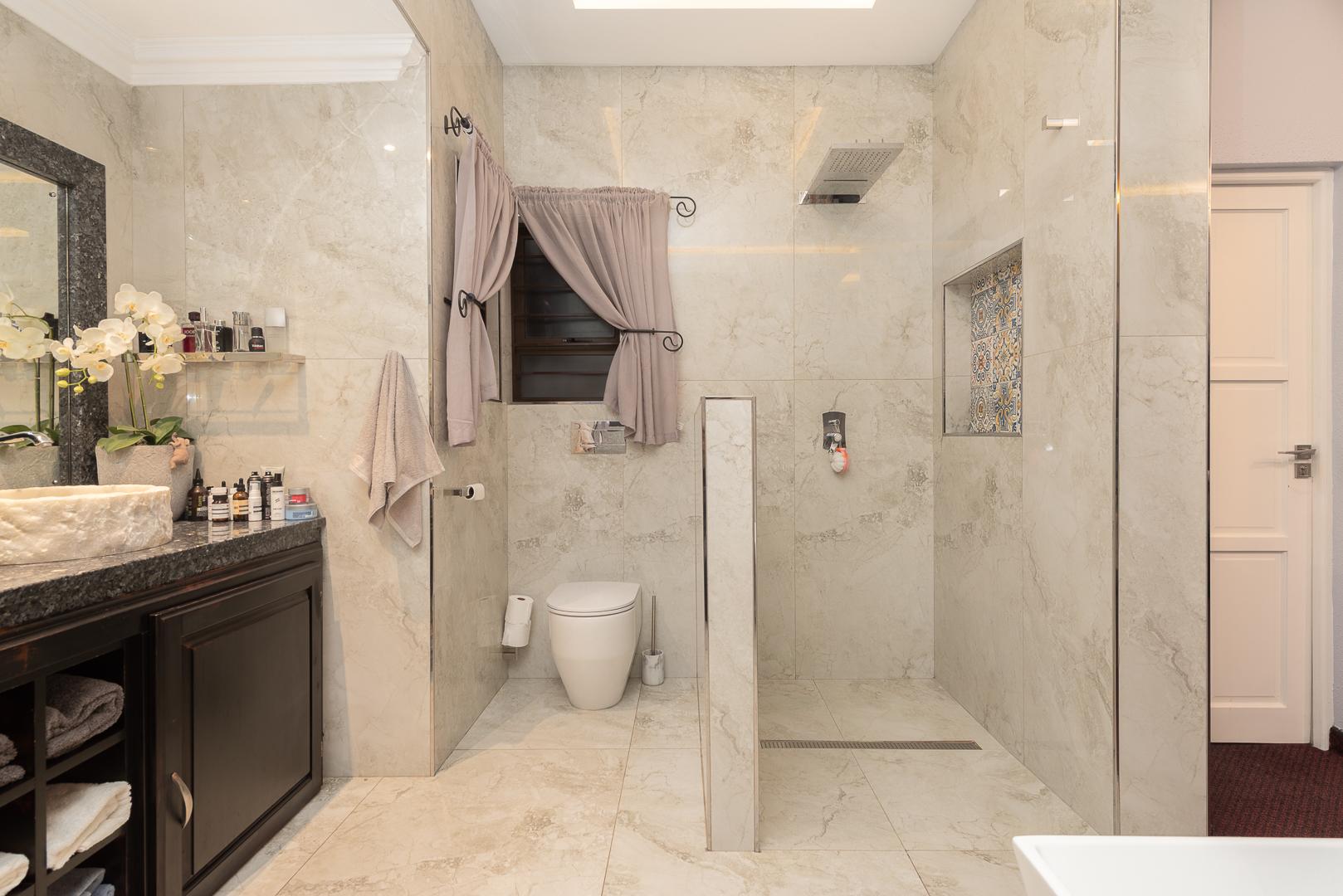 The modern kitchen is a chef’s dream, combining high-end finishes with ample storage and a practical layout perfect for everyday cooking and hosting. Enhance your entertaining experience with an indoor braai and a sleek built-in bar, allowing you to host with sophistication or unwind in style.
