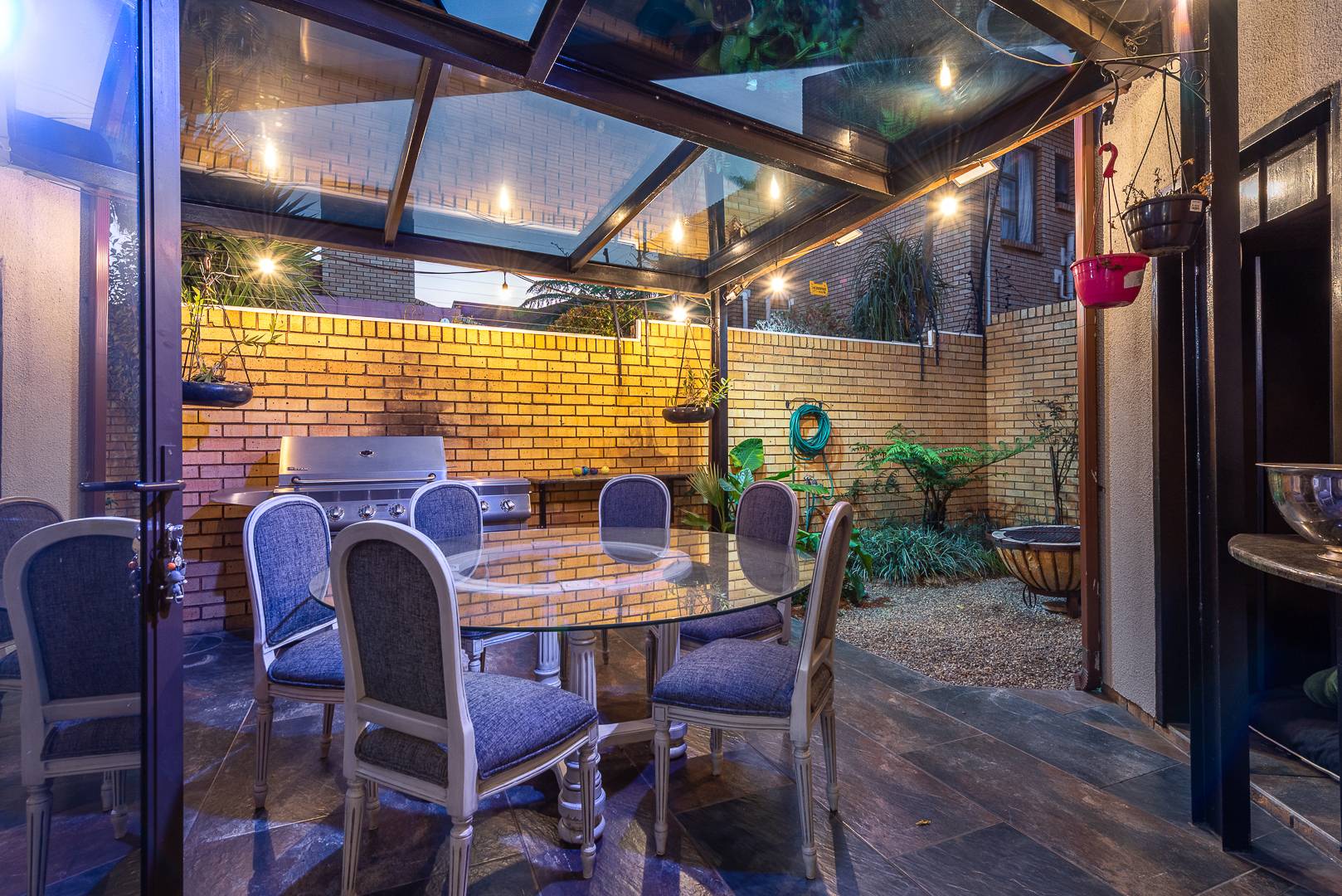 Embrace sustainable living with this fully energy-efficient home, equipped with a comprehensive solar power system to minimize grid reliance and reduce energy costs. Dual hot water systems, including a solar geyser and a backup gas geyser, guarantee a consistent hot water supply. Additionally, the property boasts an approved borehole with a full water filtration system and two evaporative coolers to maintain comfort throughout the year.