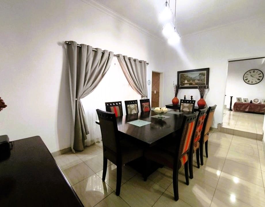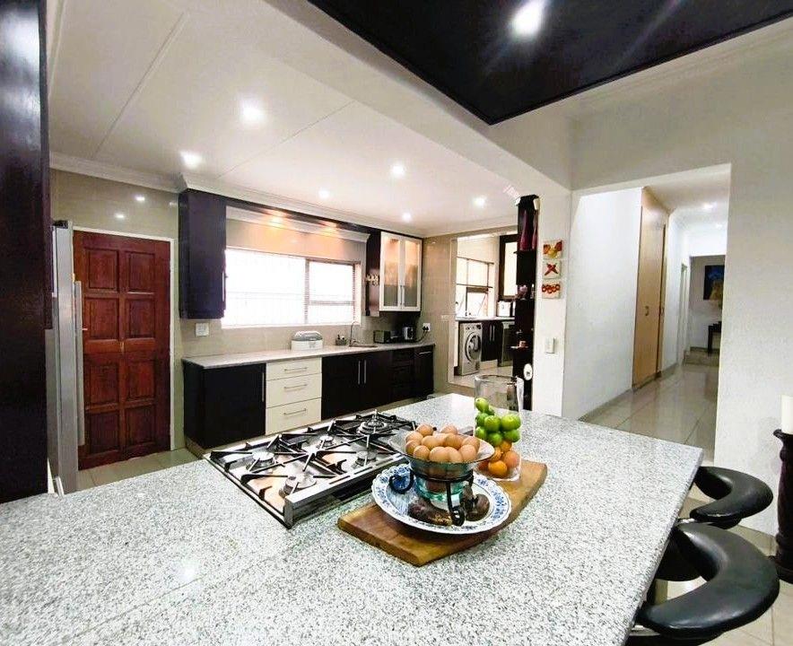 Step inside to a bright, open-plan layout where the lounge, dining area, and kitchen flow seamlessly, creating a warm and inviting atmosphere. The kitchen is a chef’s delight, fitted with ample cabinetry, granite countertops, and a Smeg 6-plate gas stove with oven, plus a separate scullery with space for three appliances for added convenience.