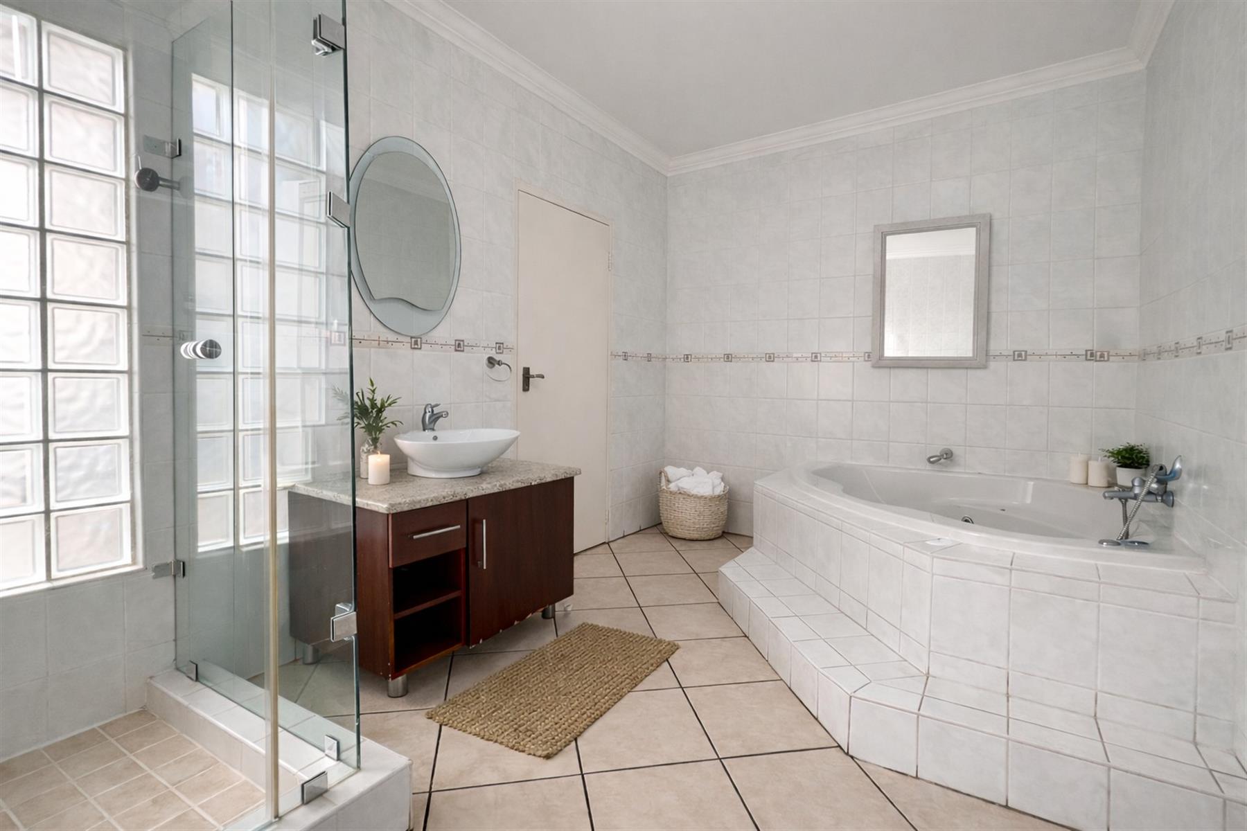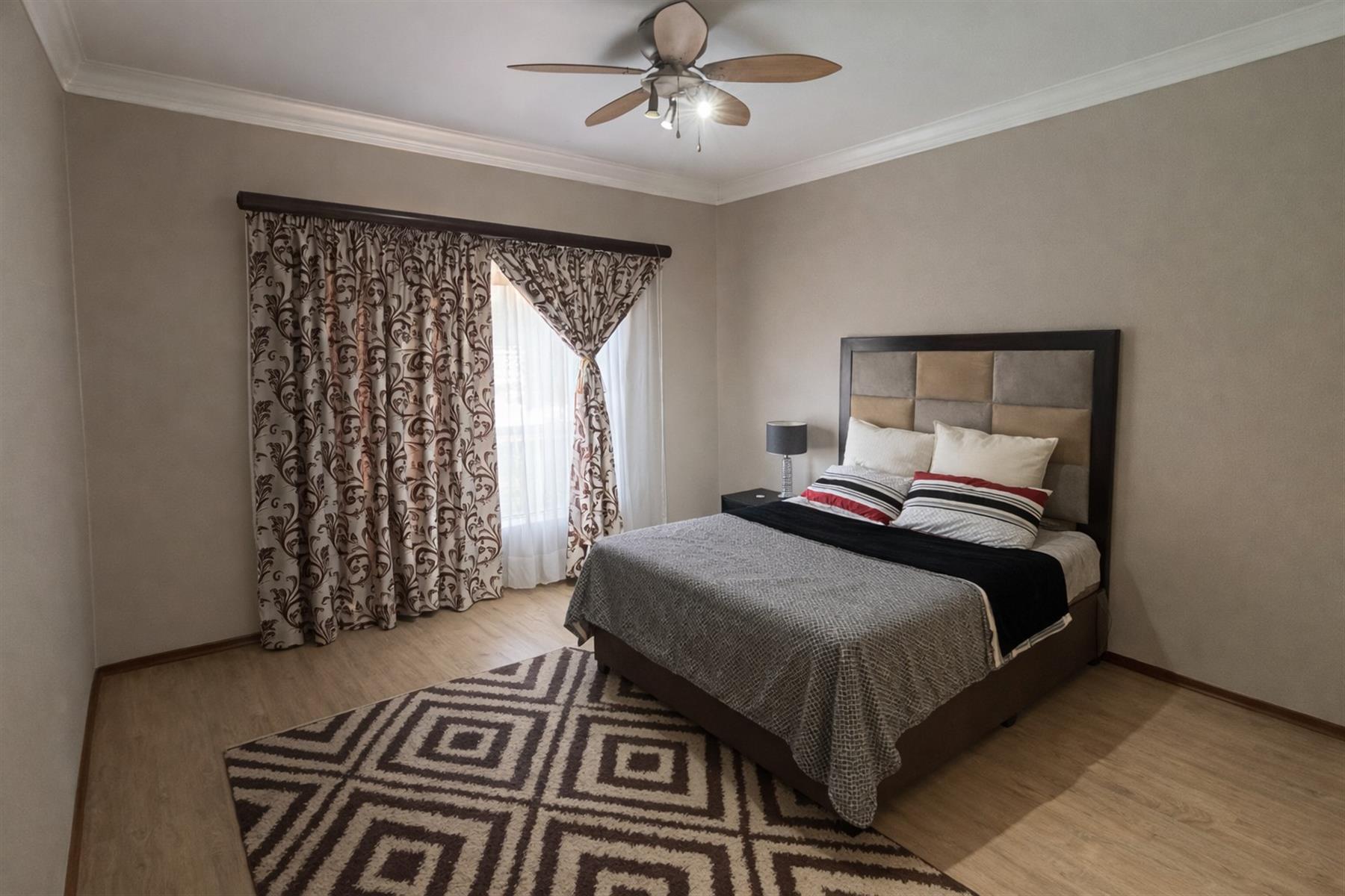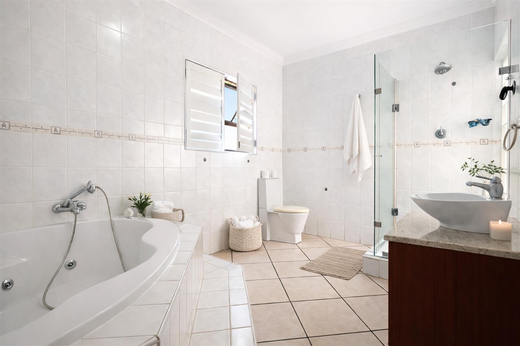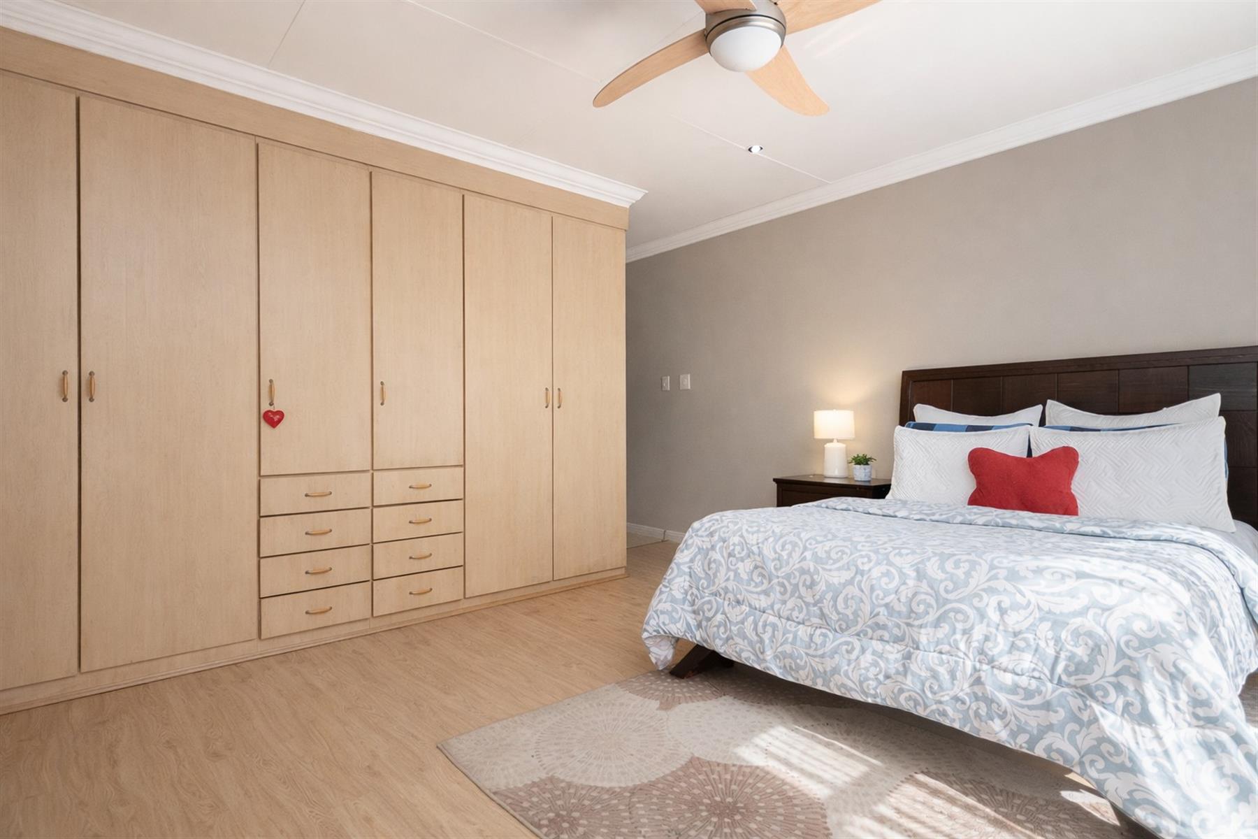Outdoors, the home truly comes alive. A large covered patio with double-volume ceilings overlooks the garden and sparkling swimming pool, creating a relaxed space for weekend braais, family time, or entertaining friends. The large stand offers ample room to shape the garden into your ideal outdoor sanctuary, whether that is lush lawns, play areas, or tranquil seating spaces.