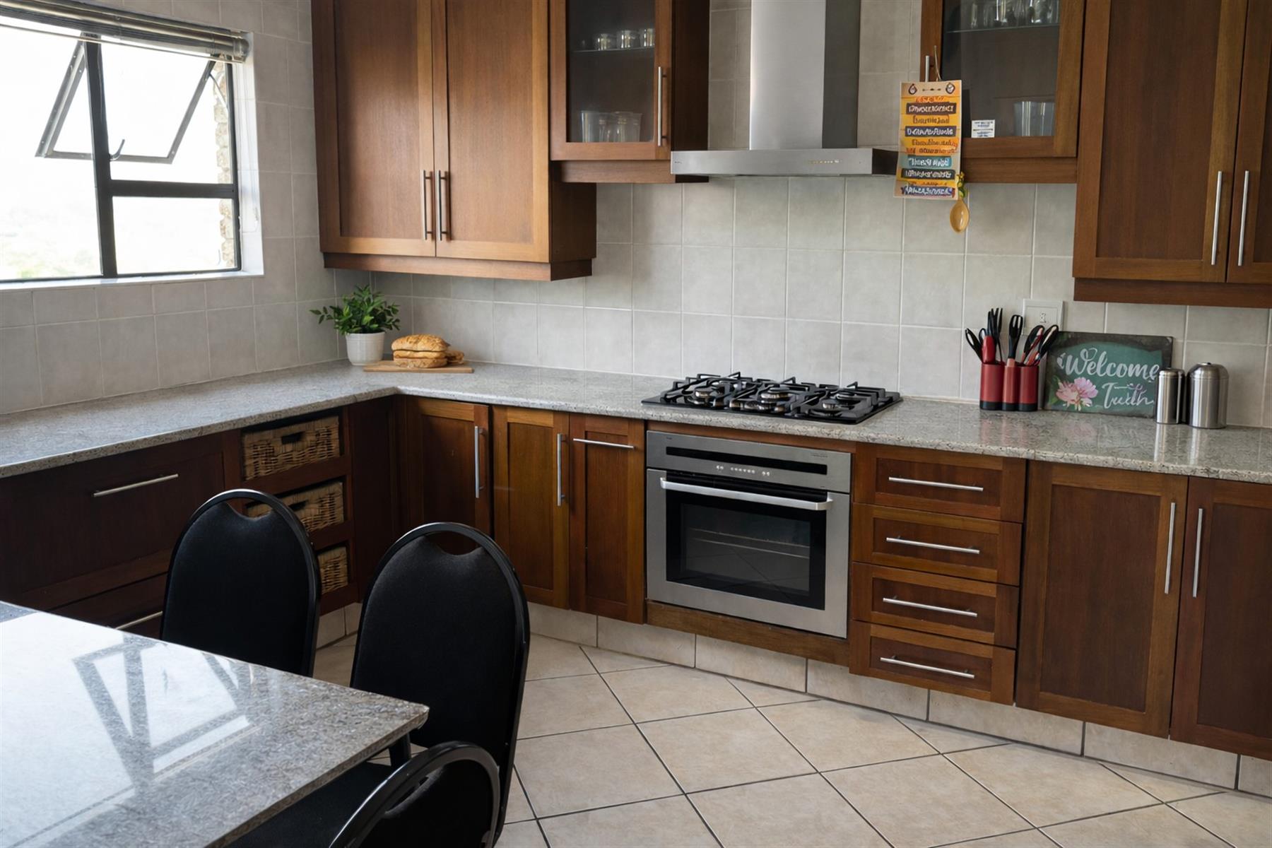 The kitchen is both practical and welcoming, offering wooden built-in cupboards, granite countertops, a breakfast nook, gas stove with extractor, pantry, and a separate scullery, designed to support everyday family living with ease.