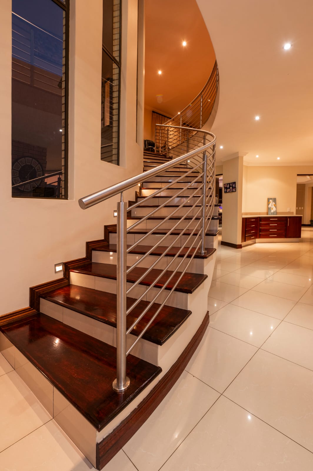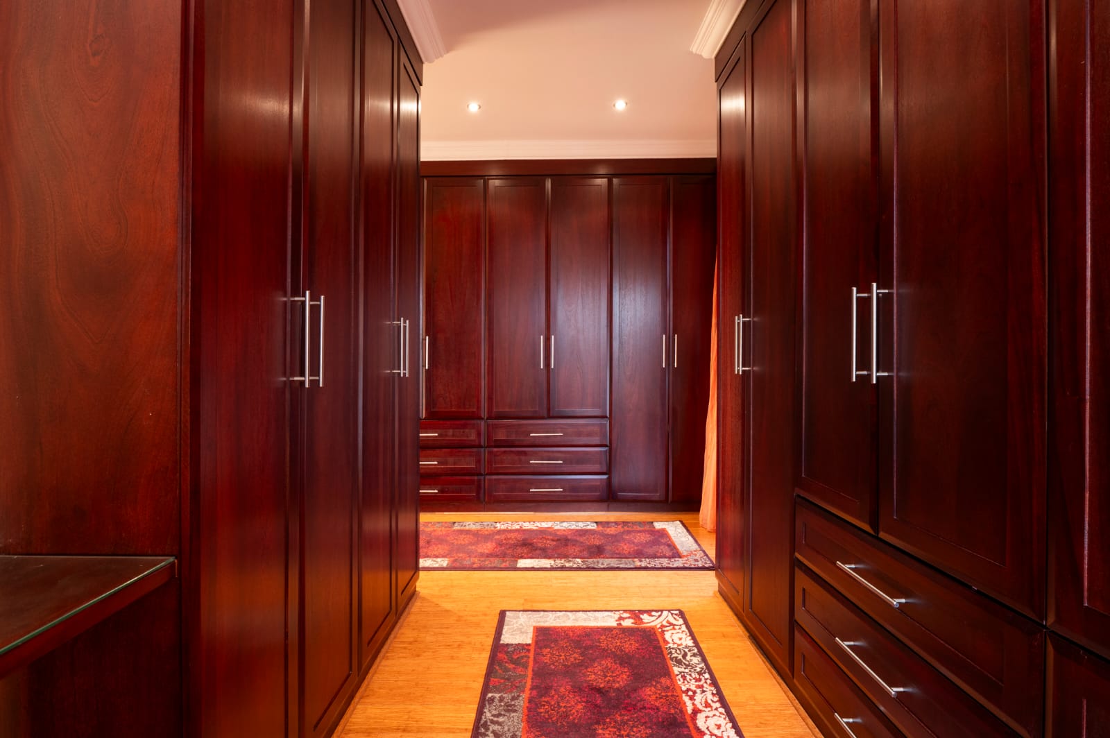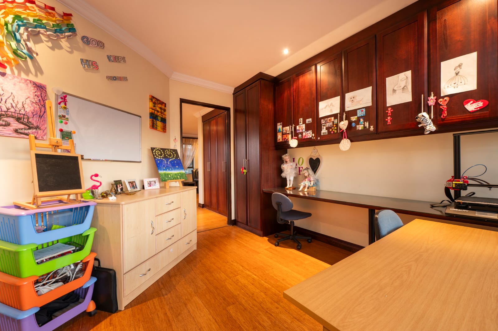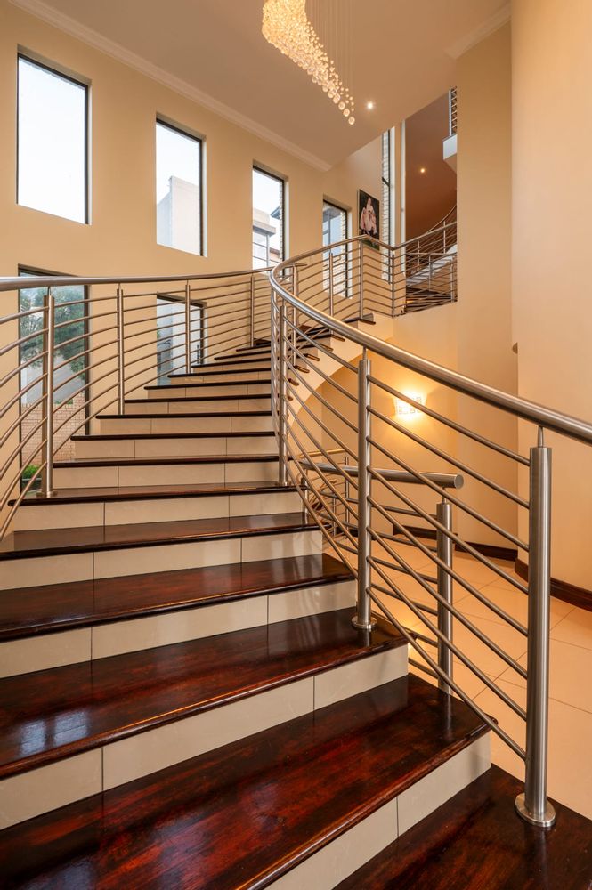 Nestled along the lush greenbelt of the nature reserve, this elegant face-brick four-bedroom home embodies luxury and serenity within this exclusive upmarket estate, offering breathtaking evening views. The ground floor welcomes you with an elegant entrance hall that sets the tone for the breathtaking luxury throughout this home. Enjoy multiple living areas, including a private lounge, an open-plan TV room, a cozy pajama lounge, and a formal dining room—perfect for hosting and entertaining. Versatile living spaces include a fully equipped teenage pad, granny flat, or home office complete with its own kitchenette, offering endless flexibility for your lifestyle needs. The chef-inspired kitchen features rich dark solid-wood cabinetry, a walk-in pantry, and a separate scullery and laundry for added convenience. This exceptional residence boasts four beautifully designed bedrooms, each with its own en-suite bathroom and built-in cupboards. The luxurious main suite, fit for a king and queen, offers a generous walk-in dressing room, a private study area, and a walk-in linen room for additional storage. Outdoor features include a sparkling swimming pool, a spacious garden, a large storeroom, three automated garages, a workshop, and ample parking space to accommodate guests with ease. For an exclusive and private viewing give me Melanie a call to set up the appointment