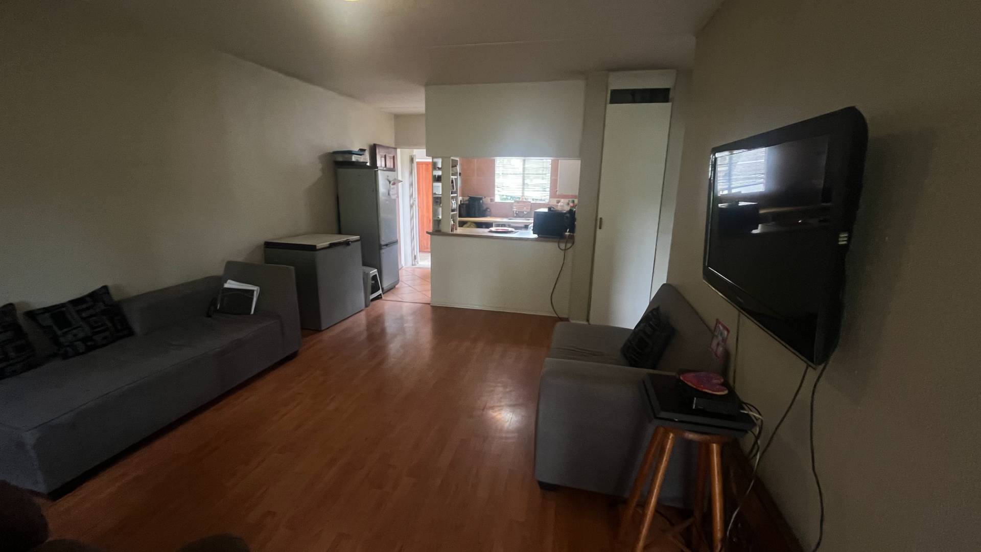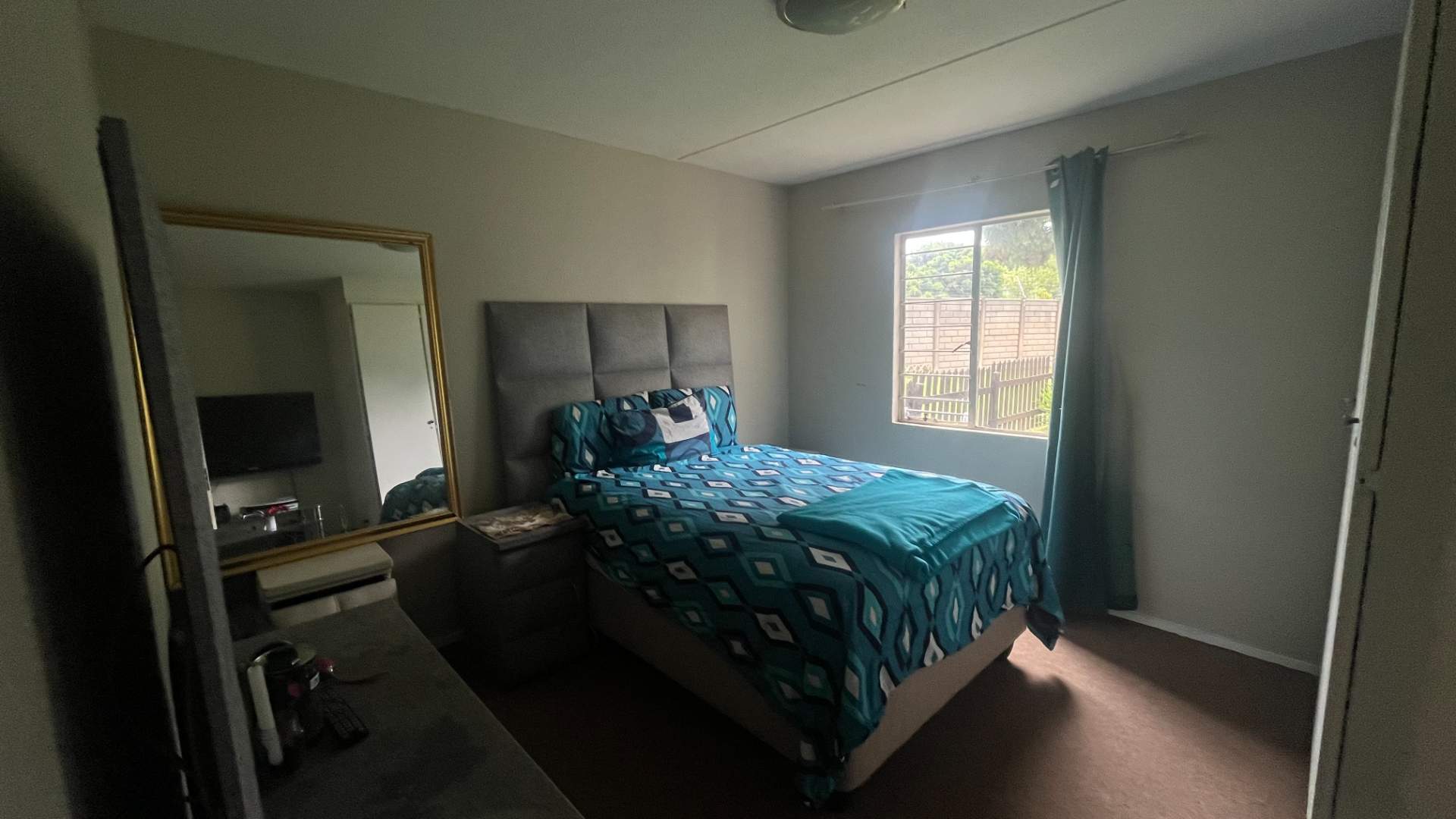 It's a ground floor unit with fitted kitchen with cupboards and space for washing machine and electric stove, it is tiled throughout, it has 2 Bedrooms with cupboard space, 1 family bathroom, private garden, communal swimming pool and 24hrs security in the estate.