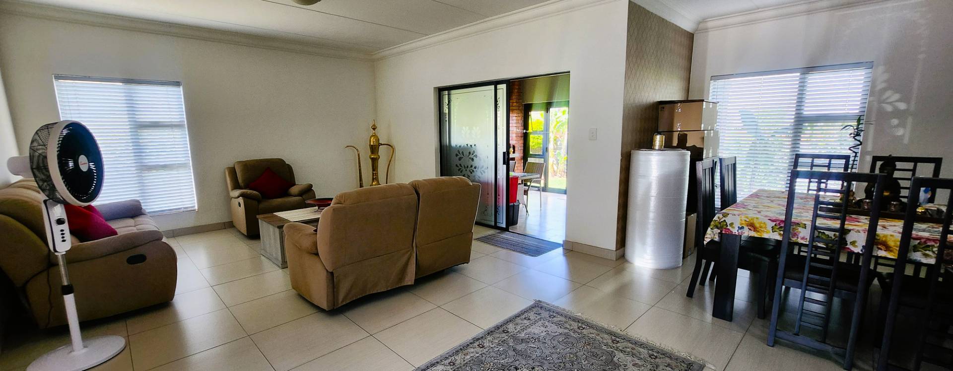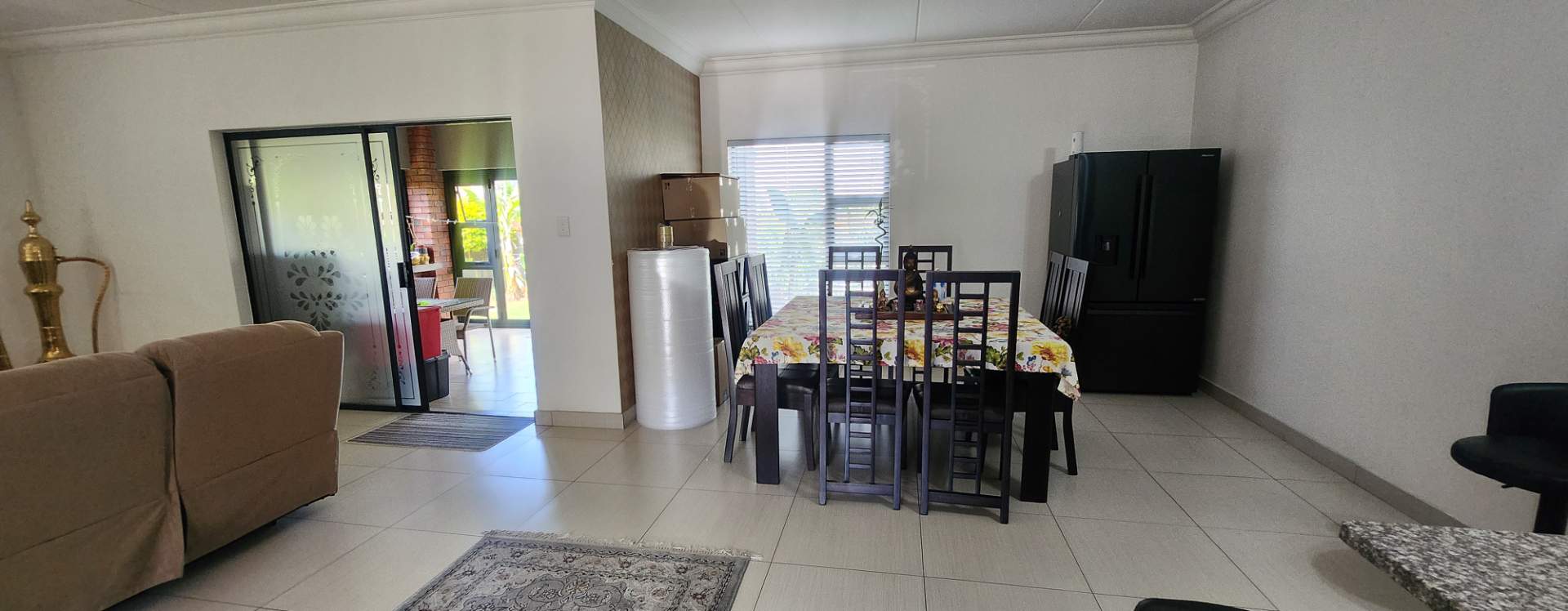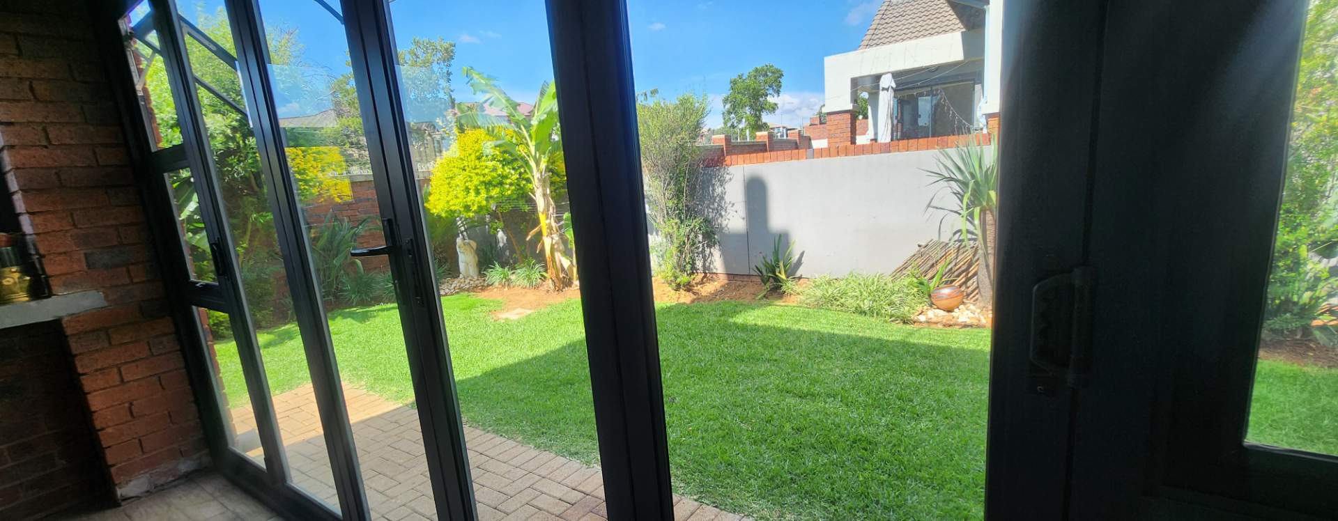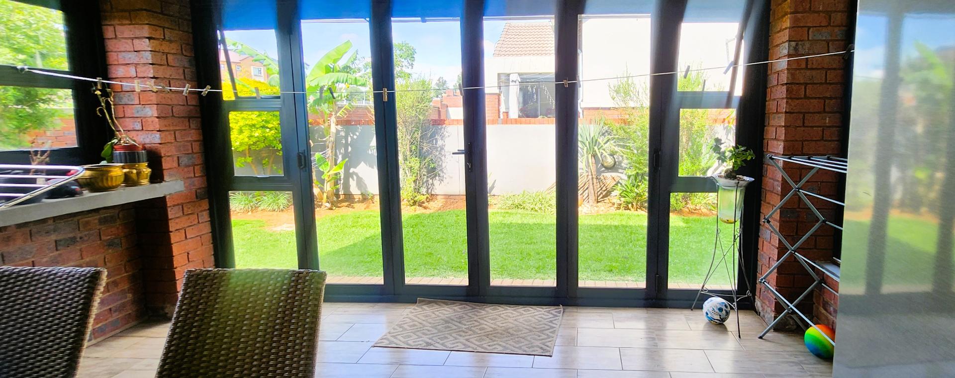 Step outside to the covered patio, featuring a built-in braai, ideal for hosting gatherings with family and friends. The stacker doors open up to reveal a beautifully landscaped garden, offering a serene outdoor retreat.