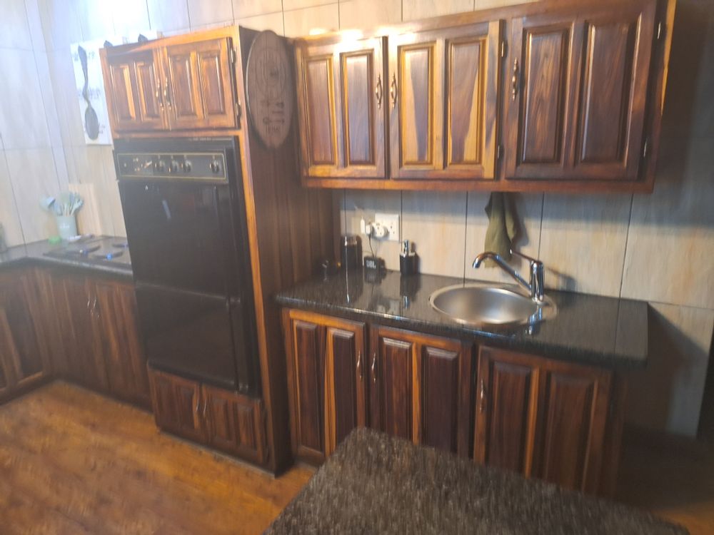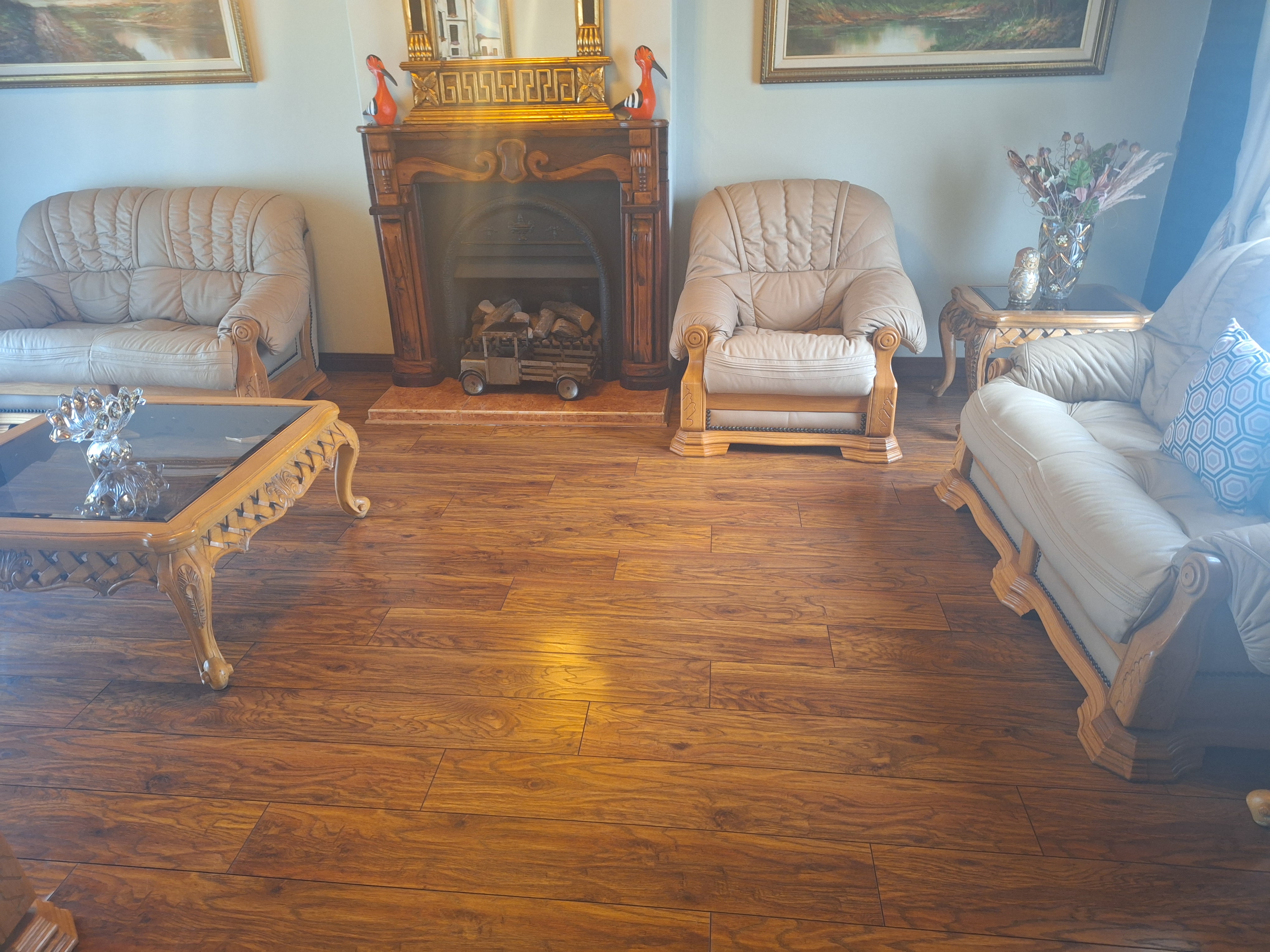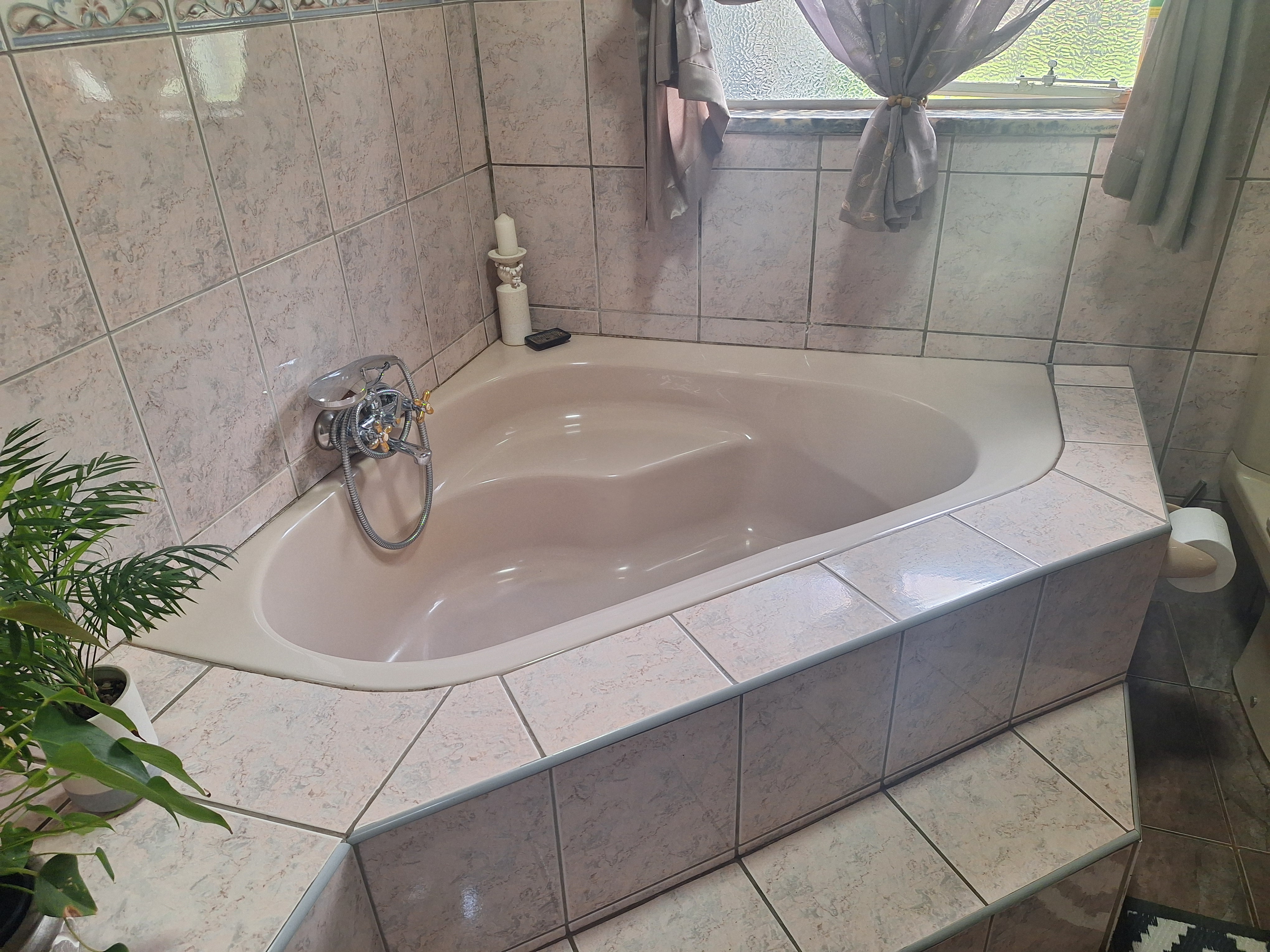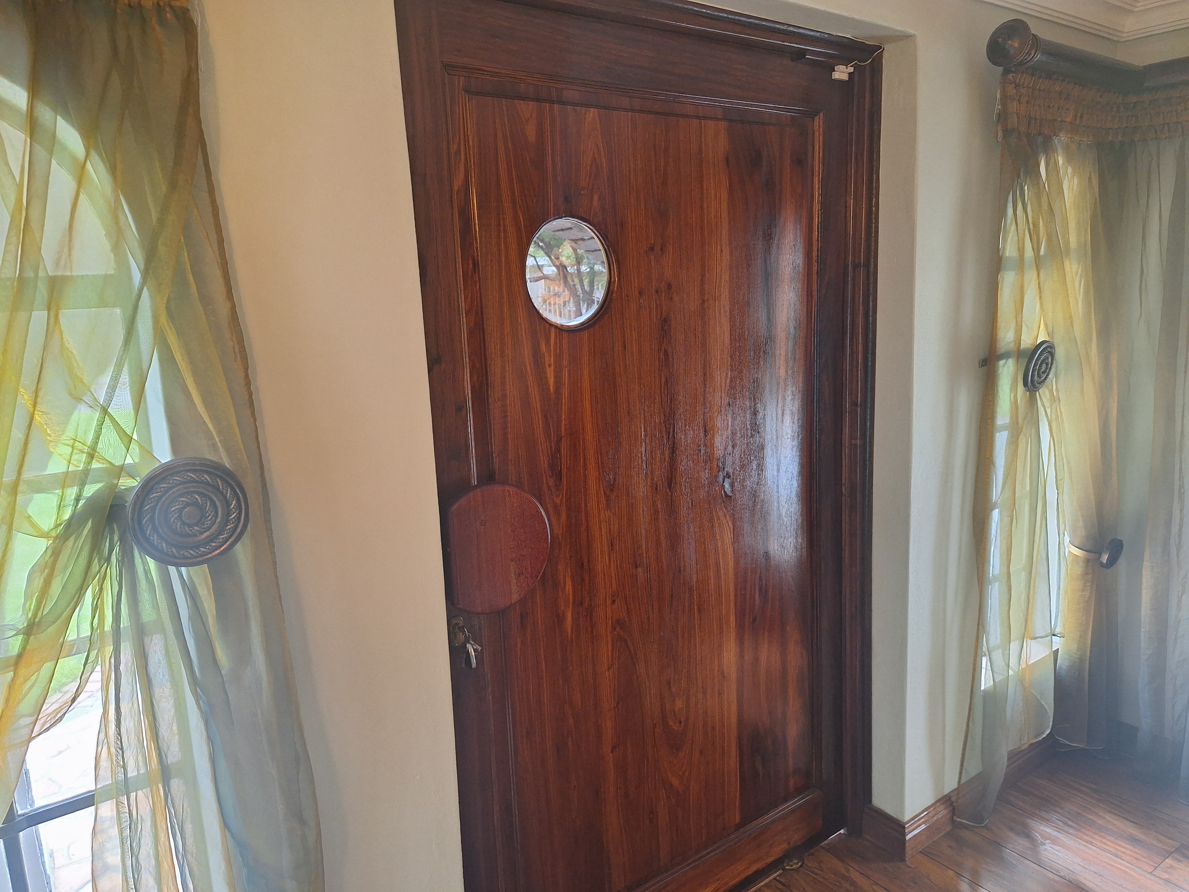 Outside the property continues to impress with a double, tiled garage, a huge lapa with a built-in braai and a grass roof finished with Harvey tiles, and a sparkling swimming pool set in a well groomed garden.