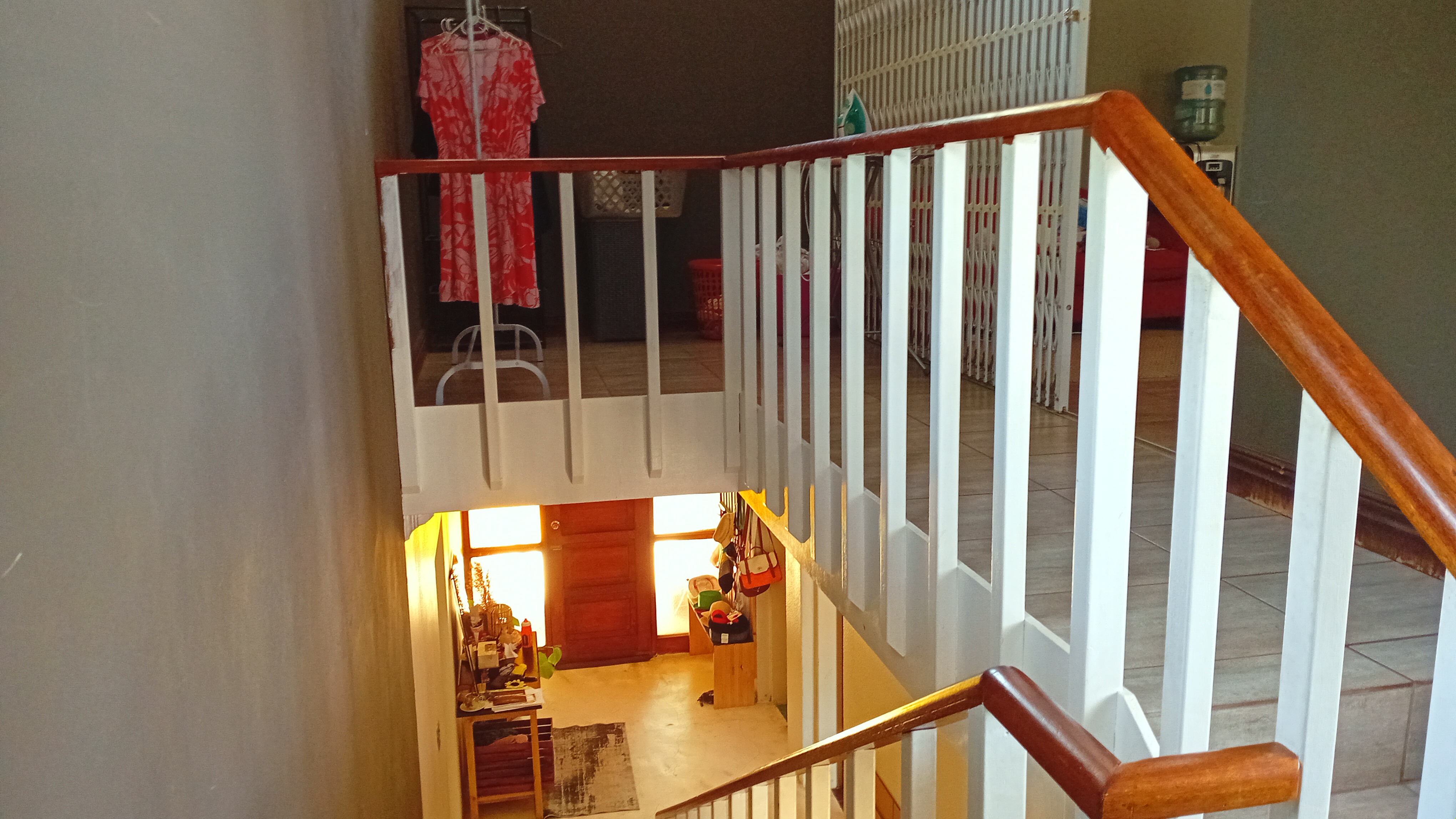 Upstairs, you will find three spacious bedrooms with built-in cupboards. The main bedroom features a walk-in closet and a private en-suite bathroom. The remaining two bedrooms share a full bathroom. There is also an additional space that can be used as a TV room or family lounge.