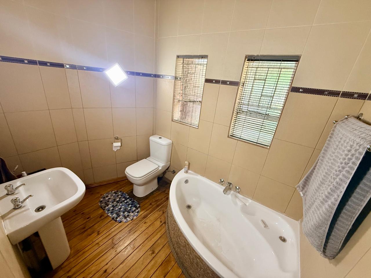 Step outside to your private oasis featuring a sparkling swimming pool and a thatched lapa, ideal for relaxed weekends and hosting friends. Added extras include a borehole with sprinklers, double garage, and a double carport.