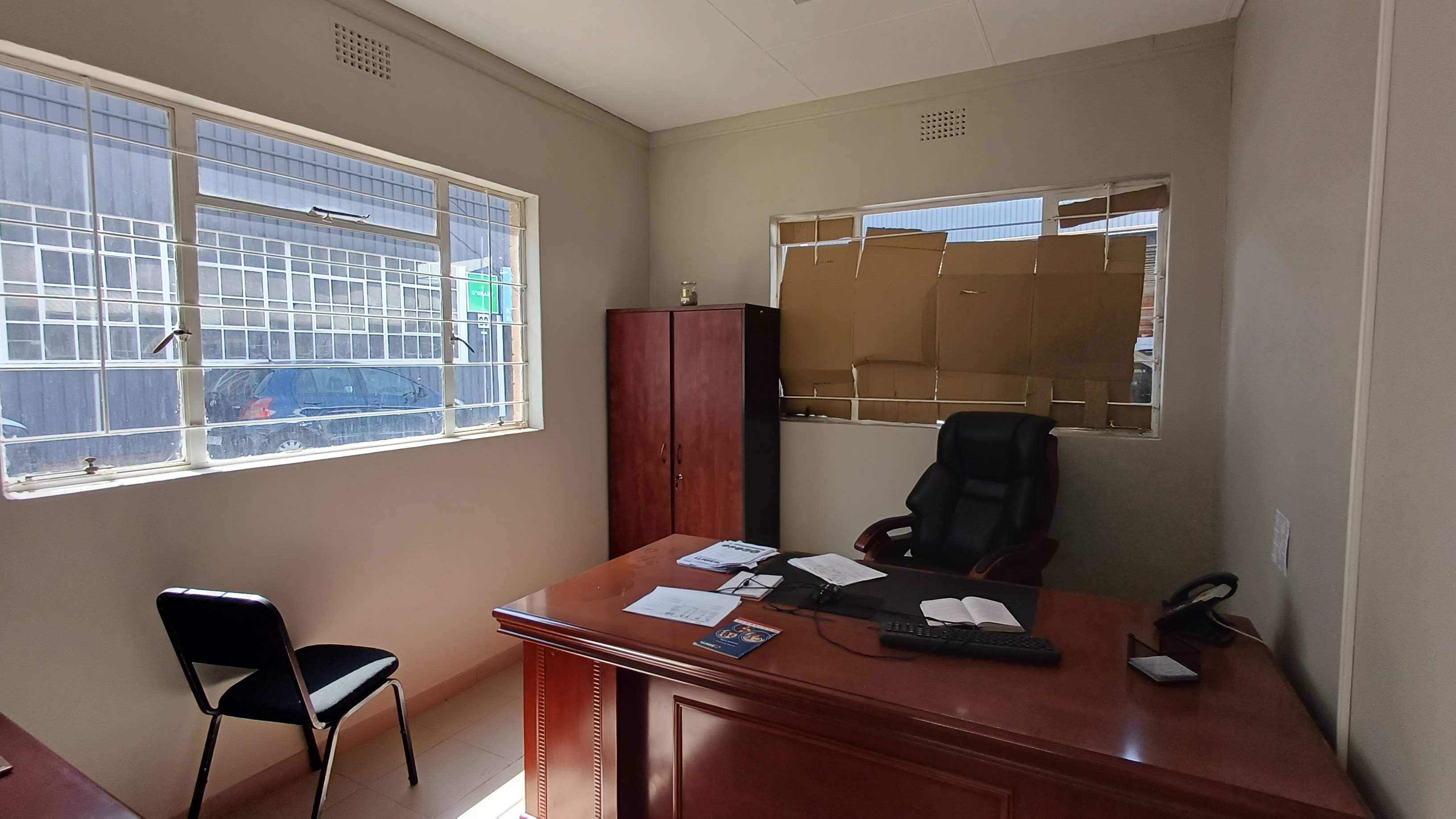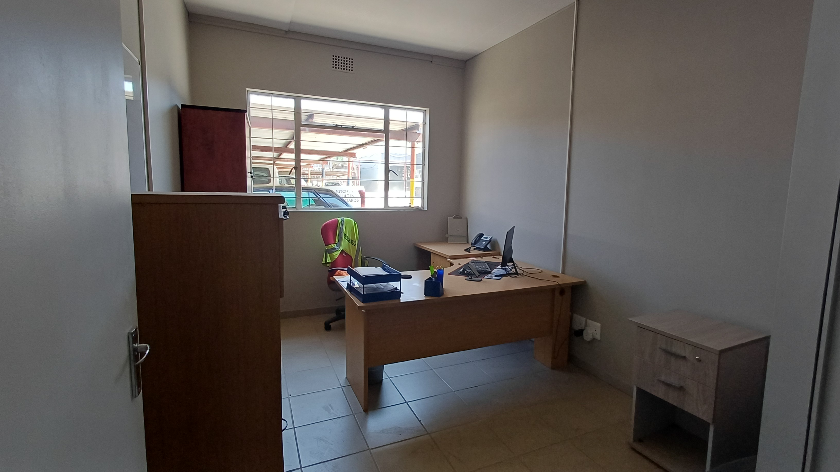 Harcourts Commercial presents 140m2 of office space to let in Pilkingtons Industrial Park. It comes equipped with three-phase, 63Amps power. The unit consists of a reception area, 5 offices, a boardroom with storage space and kitchenette/eating area. Each unit is assigned its own toilets and key with shared ablution facilities available.