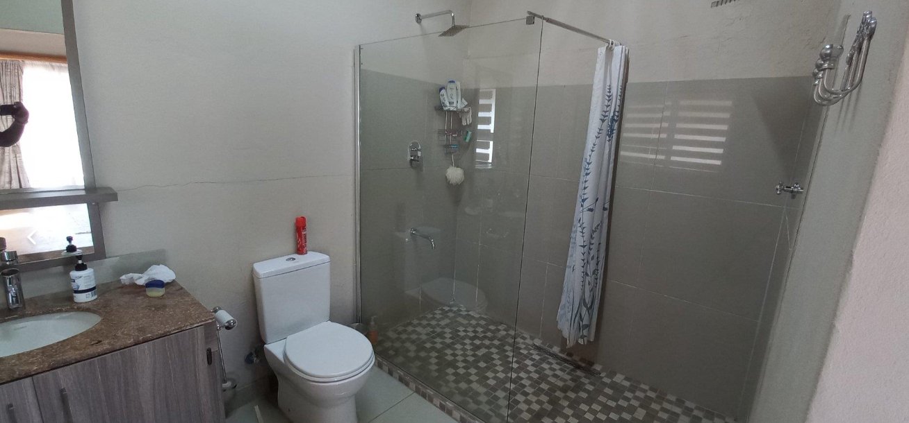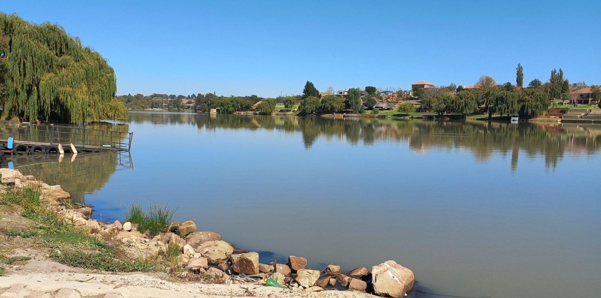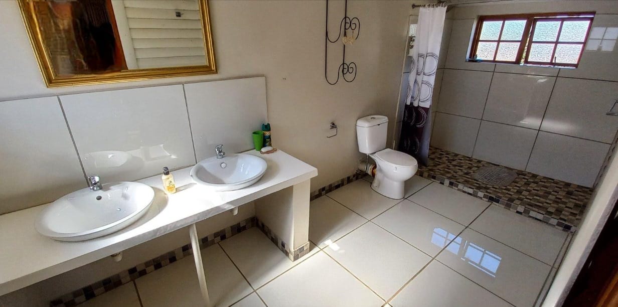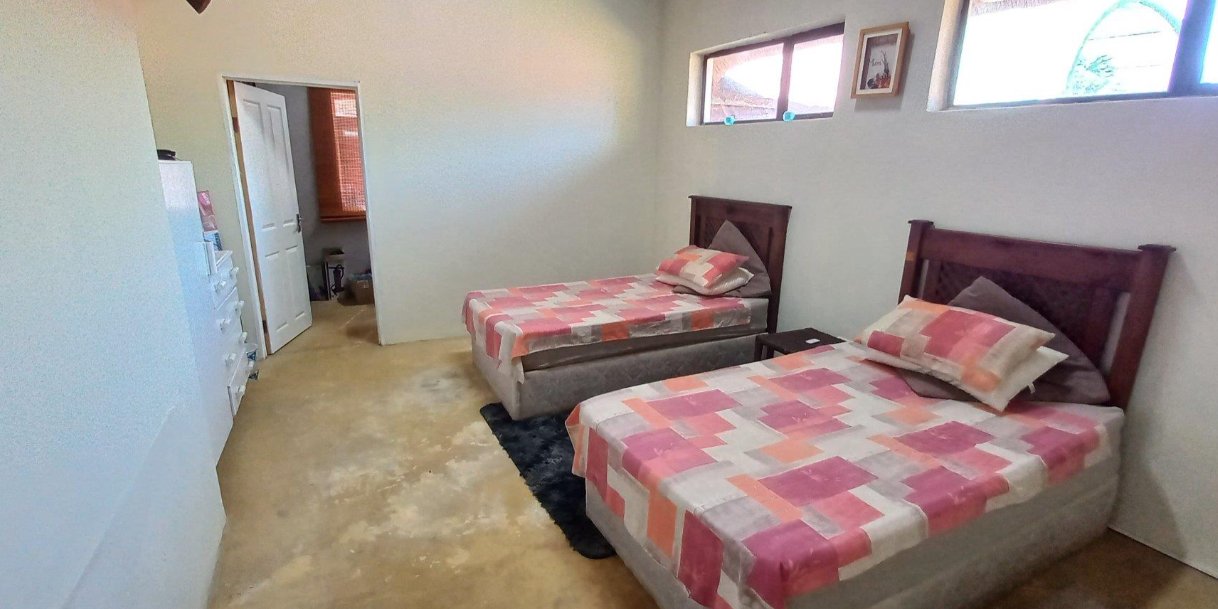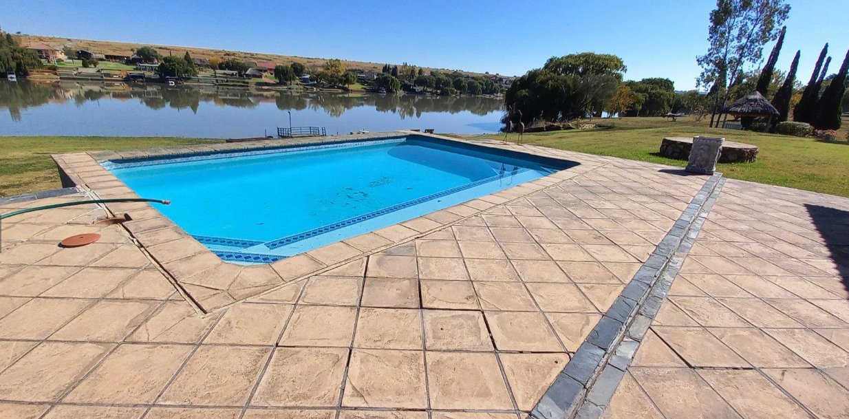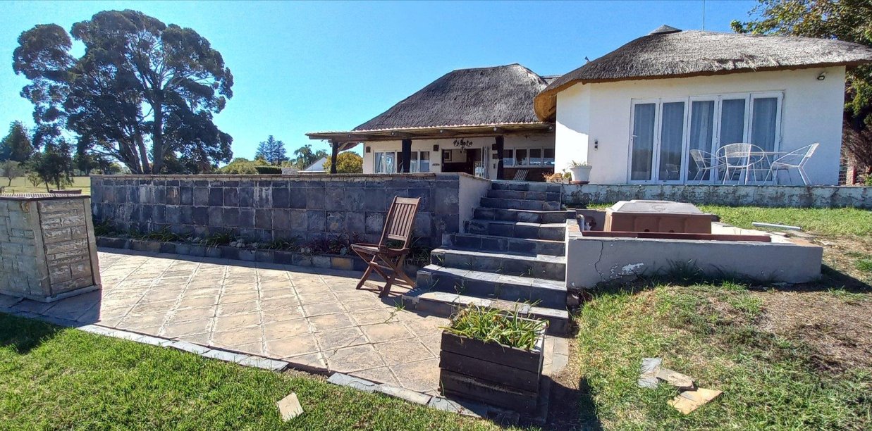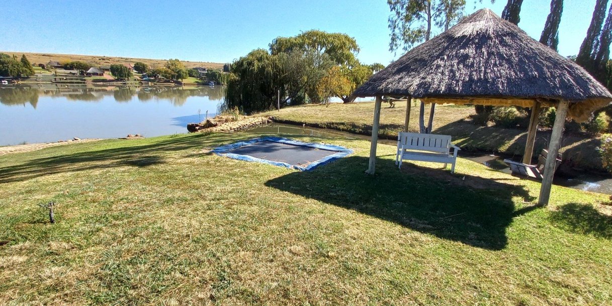 The first 3 hectare's which is located on the river with boat launch and 3 separate dwellings. The 1st is the main house which has a thatched roof allowing cooler summer days and warmer winters. Also giving of that holiday feeling with the raised rustic feel. The sliding doors and windows allow light to pass through allowing the outdoor feel to really set in, which leads to the patioed area overlooking the pool and great Vaal river.