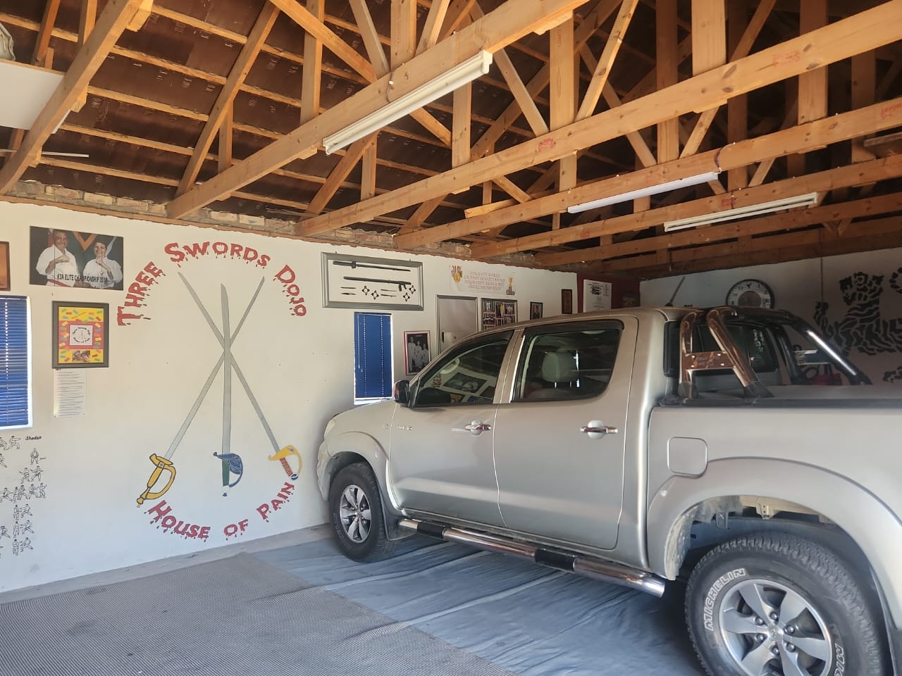 Outside, you'll find 4 garages, carports for 2 cars, an electric gate motor, and cameras ensuring safety and security. The 2500lt Jojo tank provides a steady water supply, while the outside servants toilet and additional room offer convenience. An inverter for backup electricity is also one of the plus points to this resident.