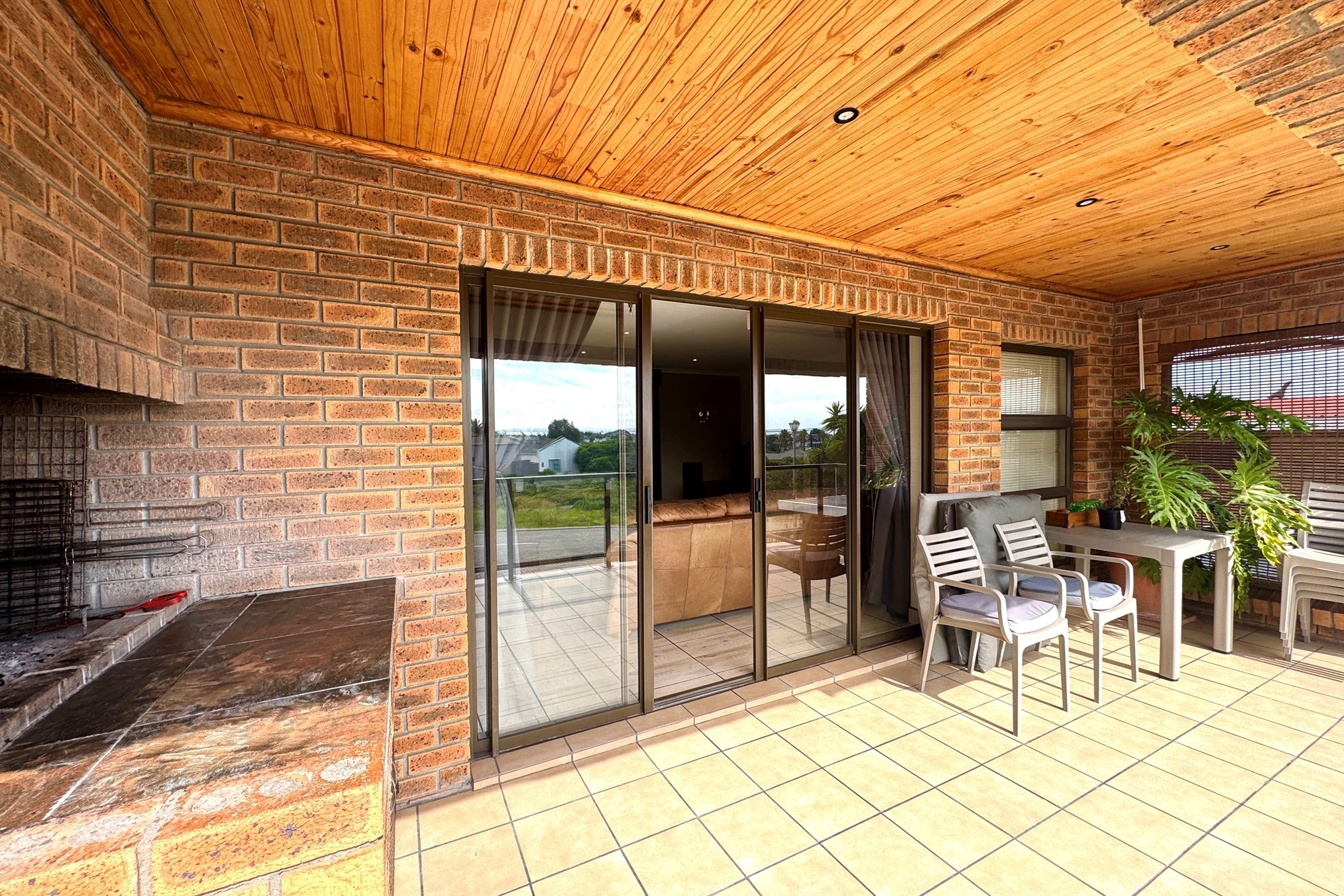 Step into an open-plan living space that combines the lounge, dining area, and kitchen. Perfect for those cooler West Coast evenings. The sunny balcony boasts beautiful lagoon views and features an outdoor built-in braai, ideal for entertaining.