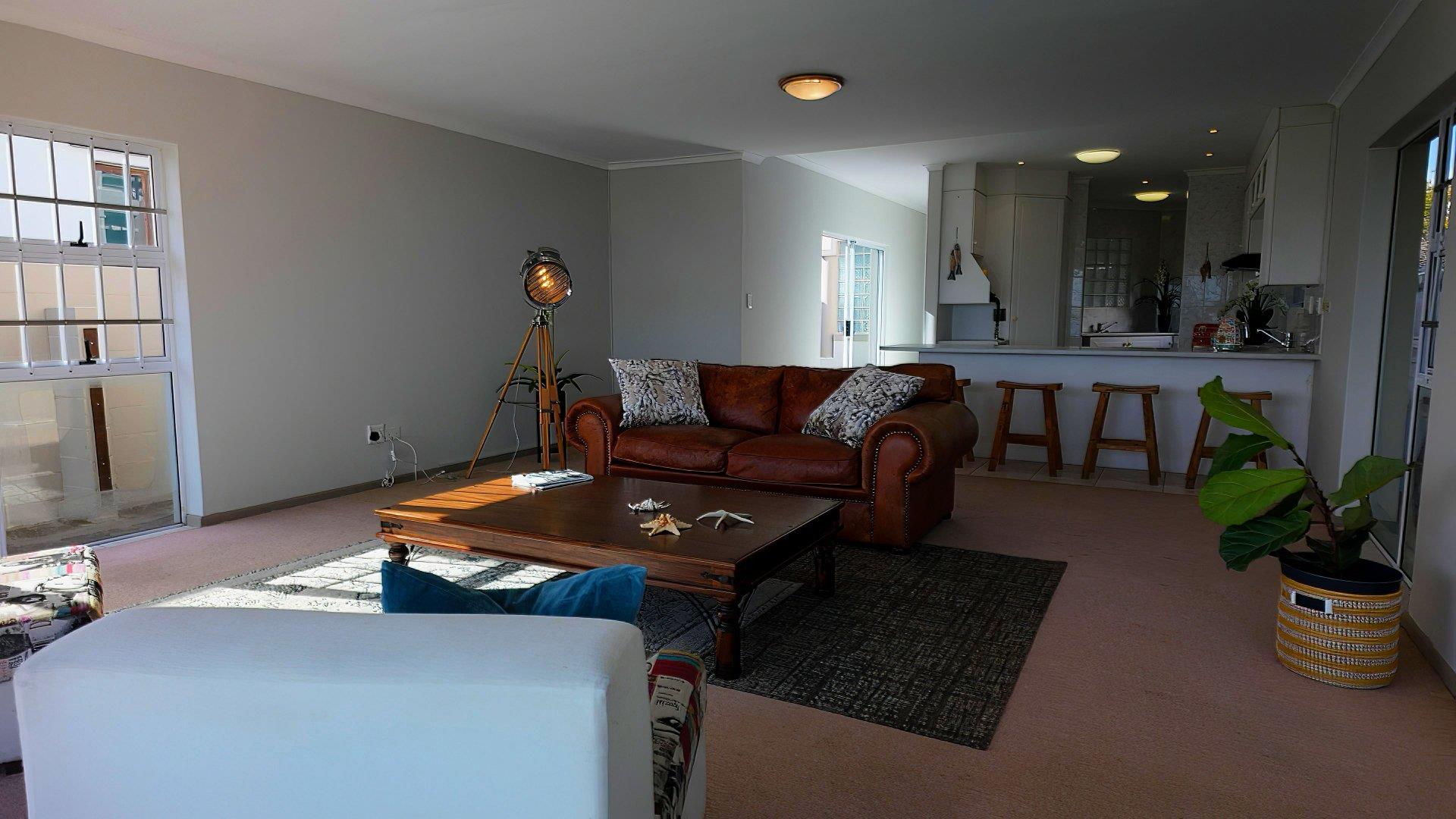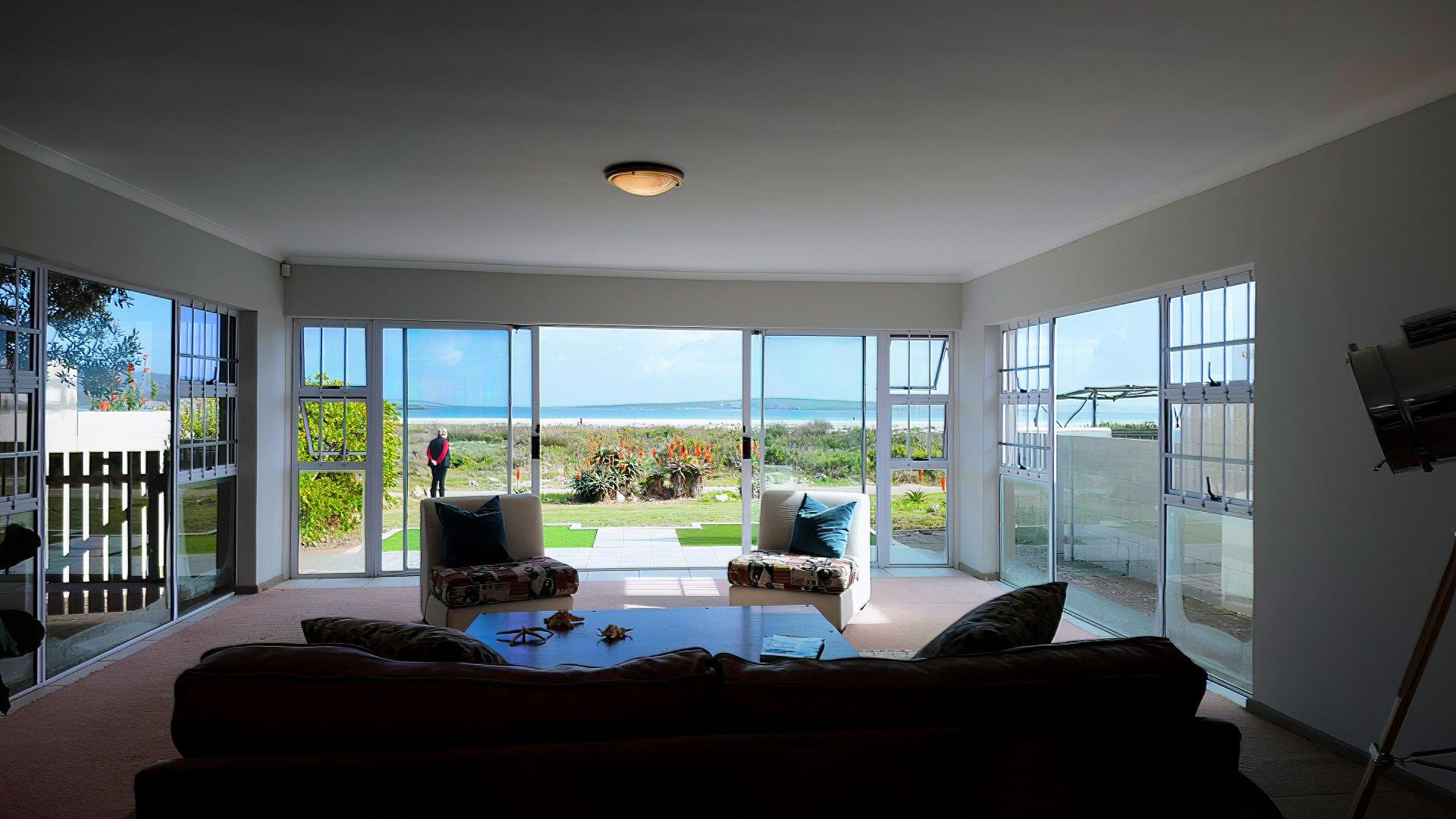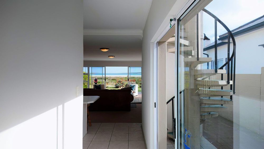 The home itself has a relaxed, welcoming flow with open-plan living areas that make the most of those spectacular lagoon views. Large sliding doors open from the dining and lounge area directly onto the garden and dunes, letting in fresh coastal air and endless light. The kitchen is both social and practical, with a big breakfast counter and a separate scullery and laundry tucked away behind it. A guest toilet is conveniently located nearby, and a spacious braai room opens to a wind-sheltered courtyard — ideal for entertaining no matter the weather.