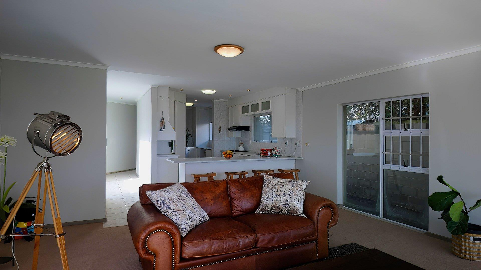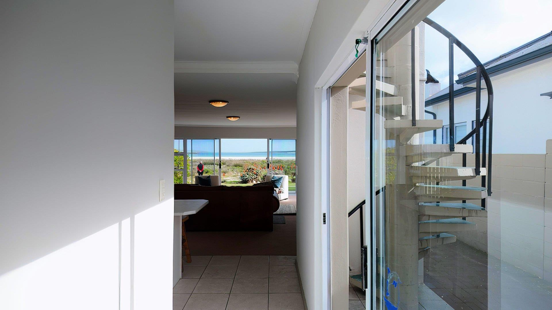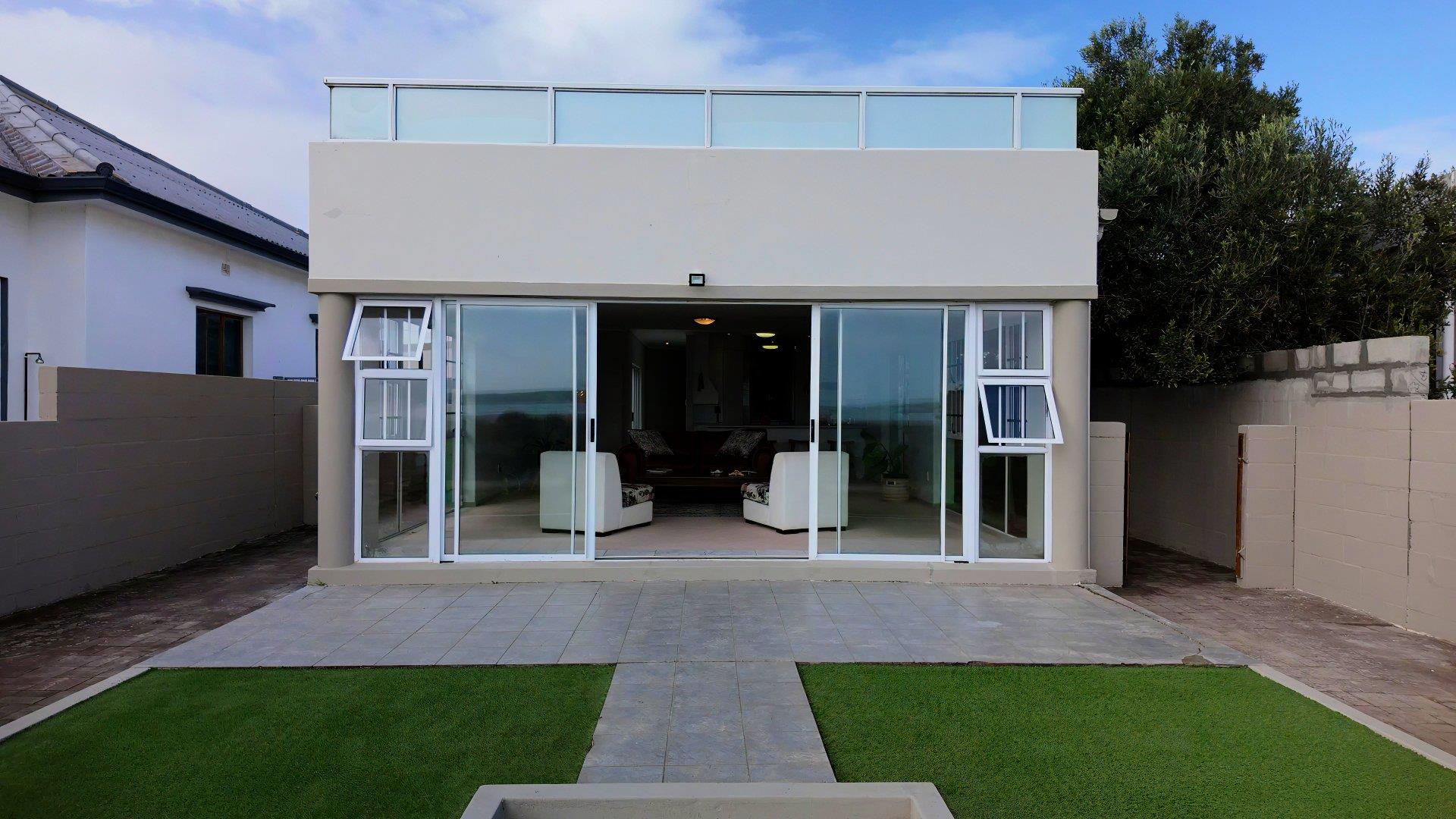 The home itself has a relaxed, welcoming flow with open-plan living areas that make the most of those spectacular lagoon views. Large sliding doors open from the dining and lounge area directly onto the garden and dunes, letting in fresh coastal air and endless light. The kitchen is both social and practical, with a big breakfast counter and a separate scullery and laundry tucked away behind it. A guest toilet is conveniently located nearby, and a spacious braai room opens to a wind-sheltered courtyard — ideal for entertaining no matter the weather.