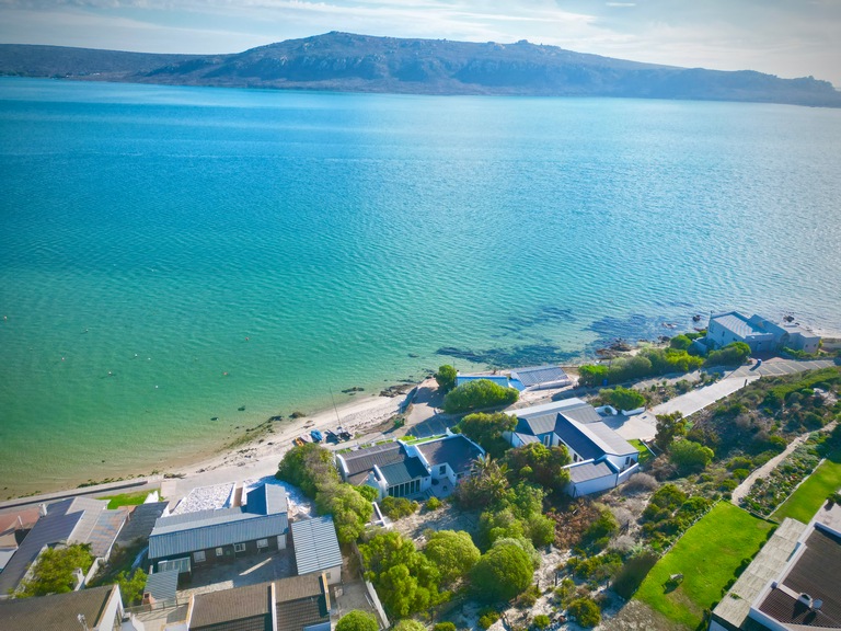 This rare beachfront property offers uninterrupted sea views of the turquoise lagoon, with the breath taking Postberg and Kraalbraai mountains in the background.