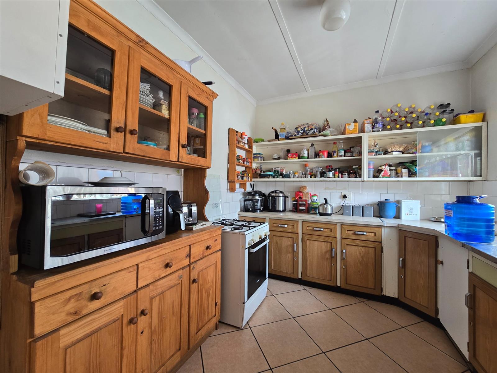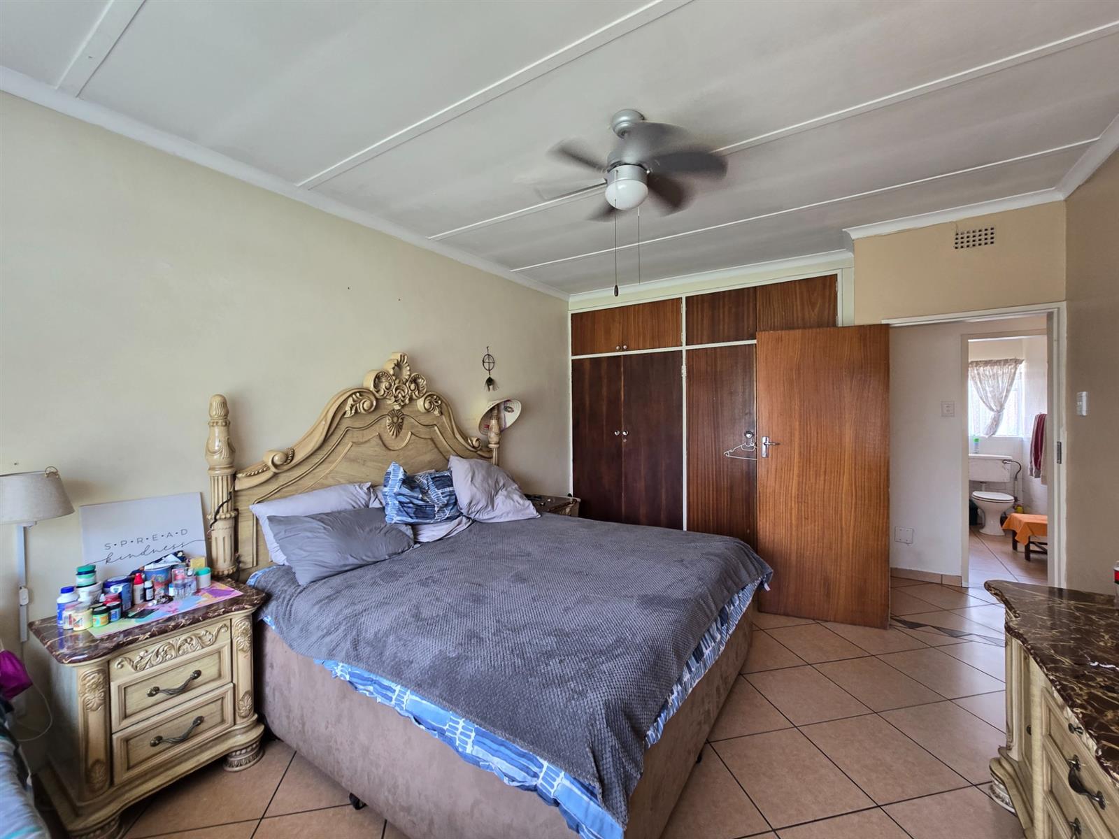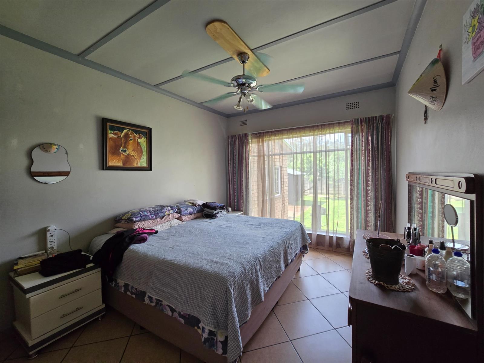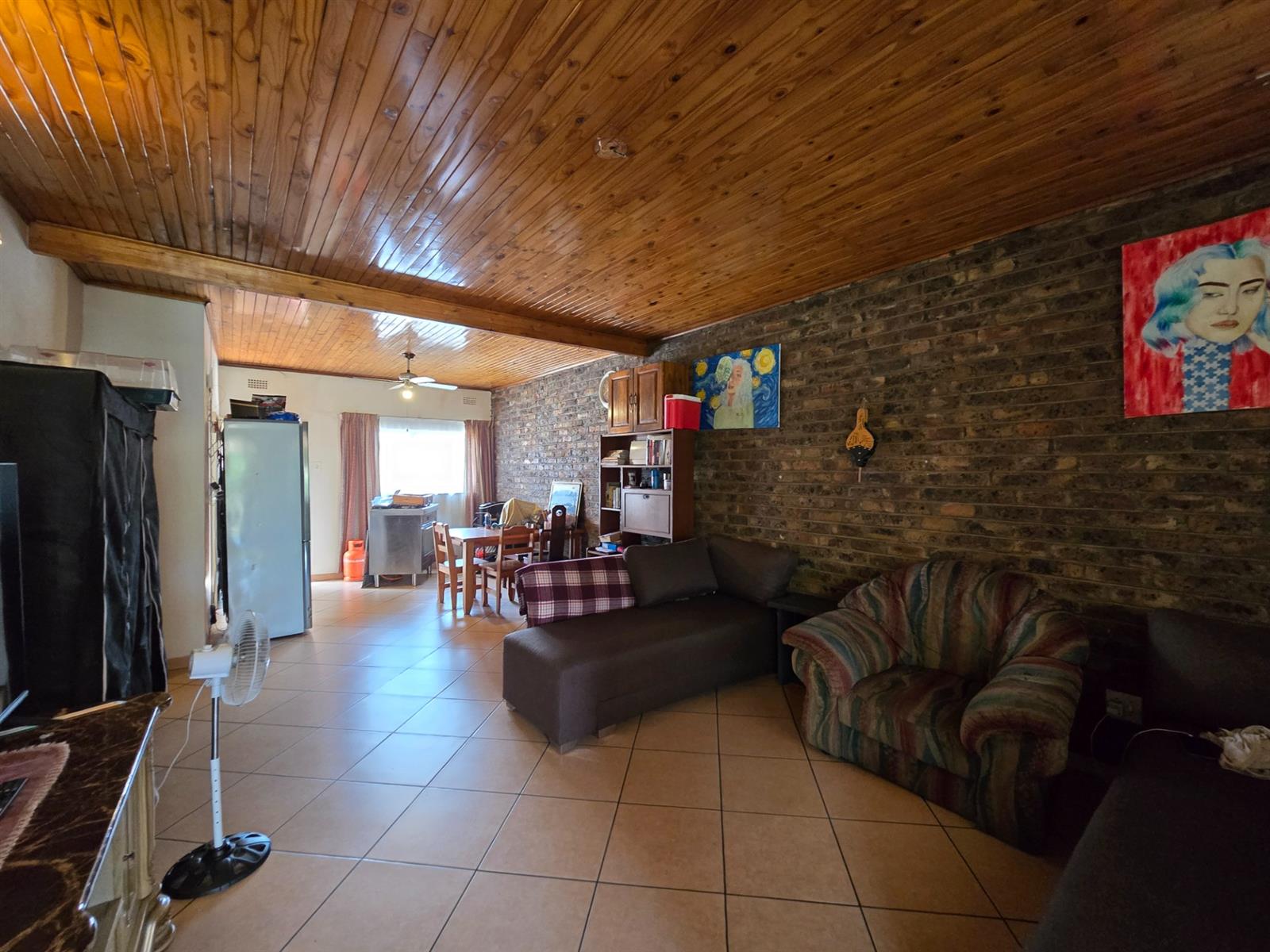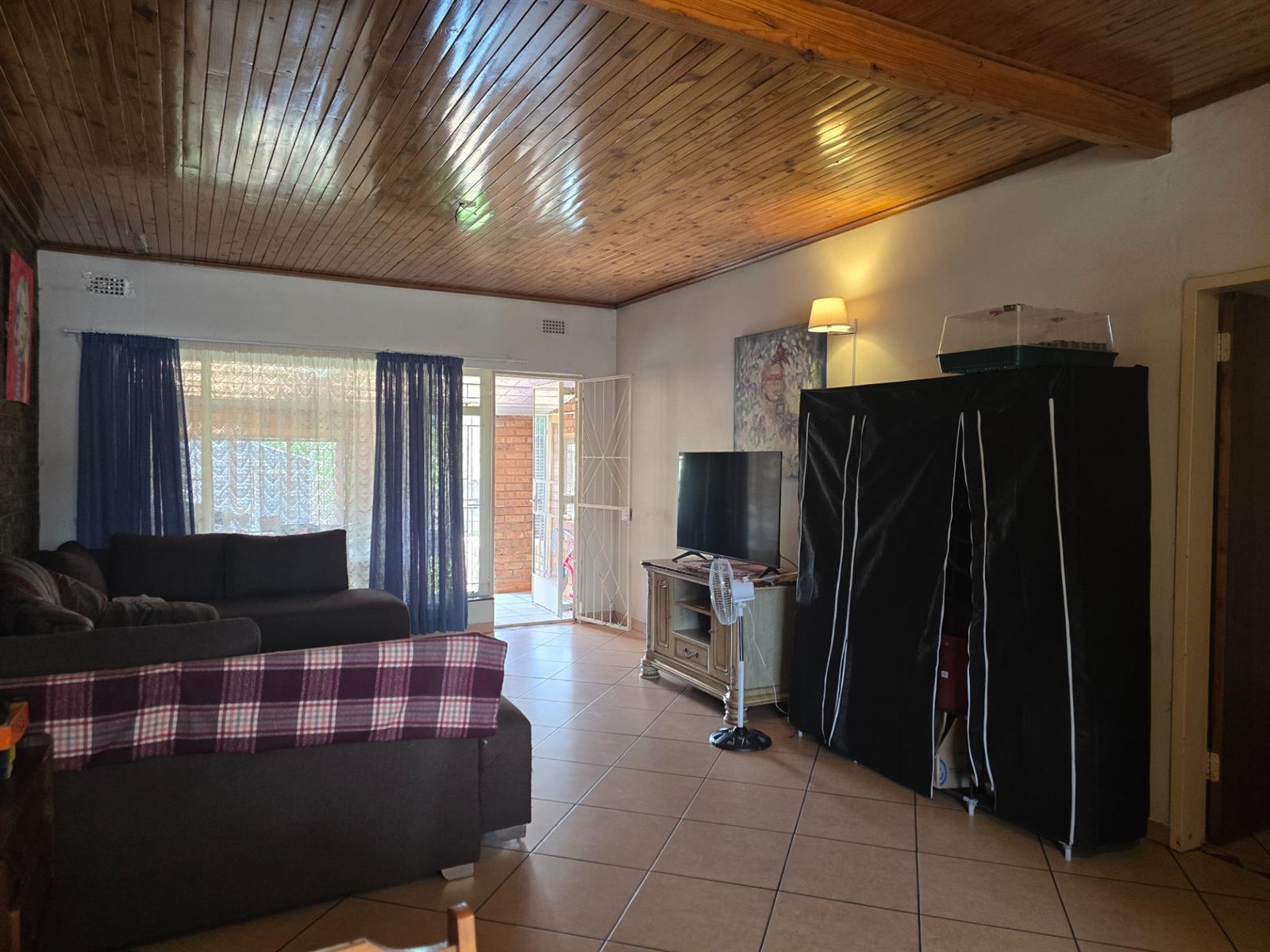 Flowing from the living area is a delightful sunroom, an ideal space to enjoy the warmth of the sun throughout the year. This room opens out to a spacious and established garden featuring beautiful lemon, peach, and fig trees, creating a serene outdoor environment with a charming, almost countryside feel. The garden is complemented by a boma and an outside braai area, perfect for relaxed entertaining and memorable evenings with friends and family.
