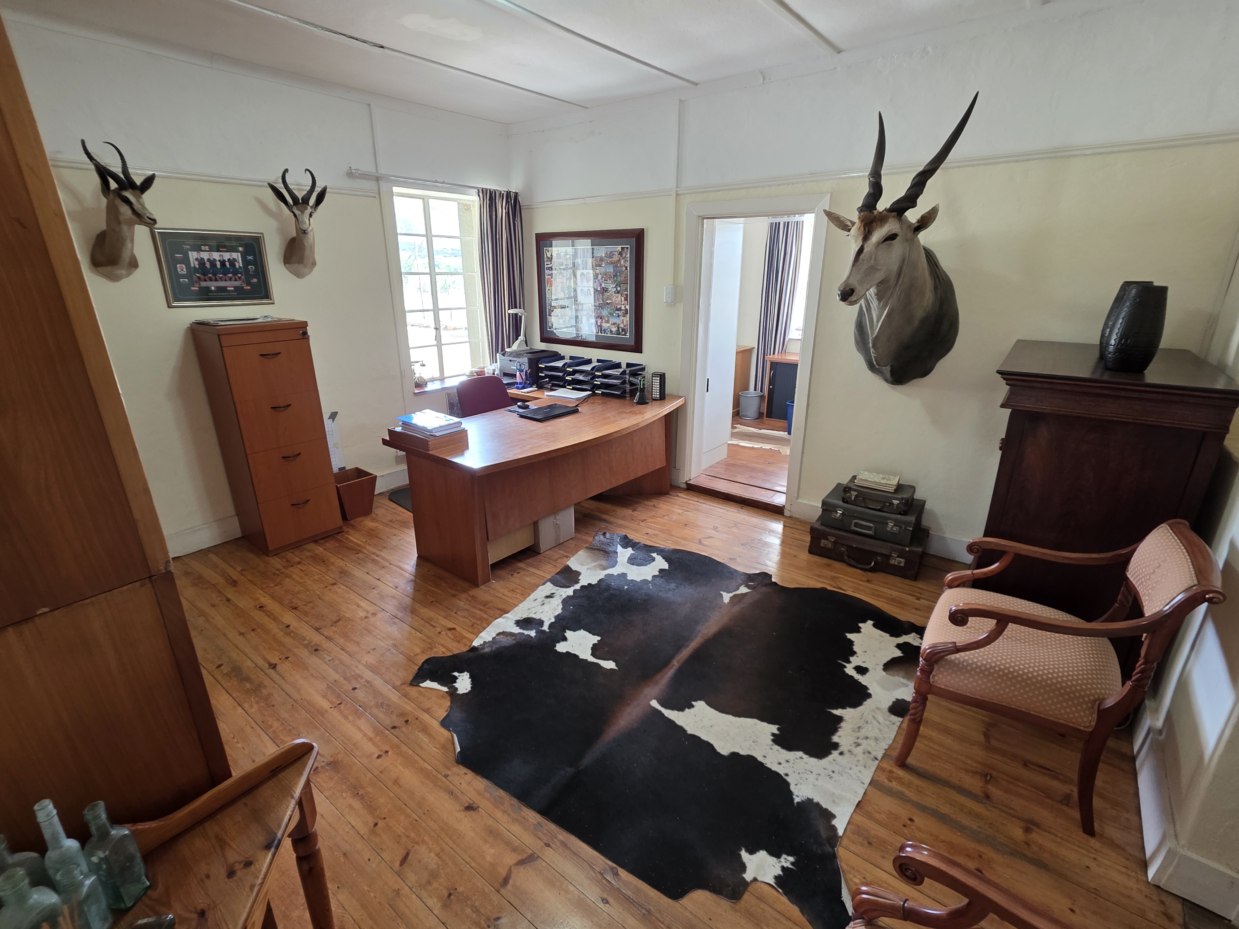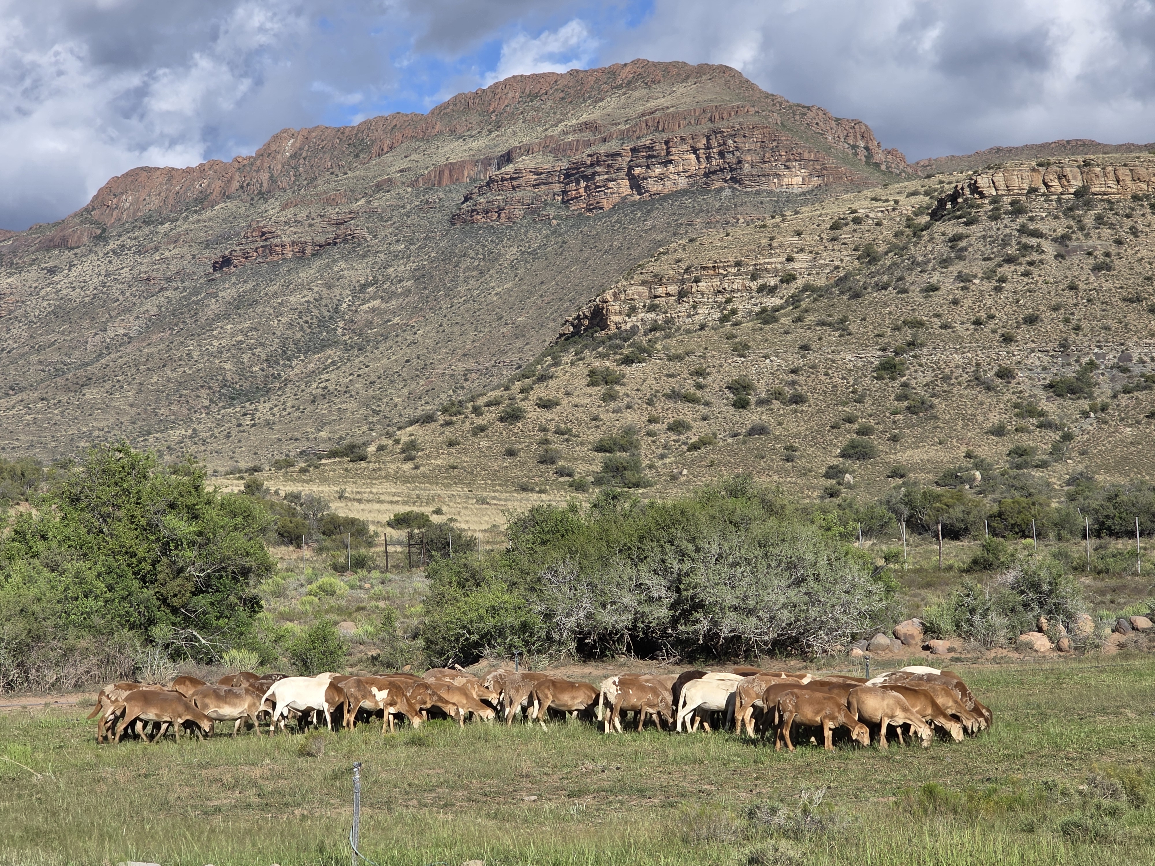 The farm is located in a healthy area with low parasite pressure, making it suitable for cattle, sheep, or goat farming. Infrastructure is in good condition throughout, including fencing, outbuildings, water systems, and internal roads. Some of the roads are off-road, adding to the farm’s rugged Karoo character.