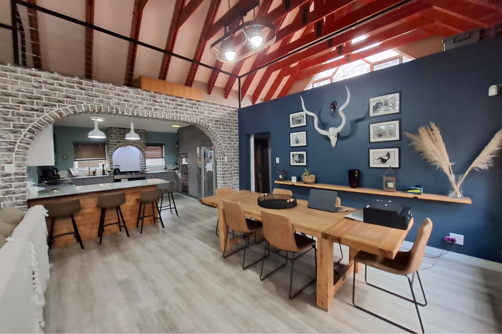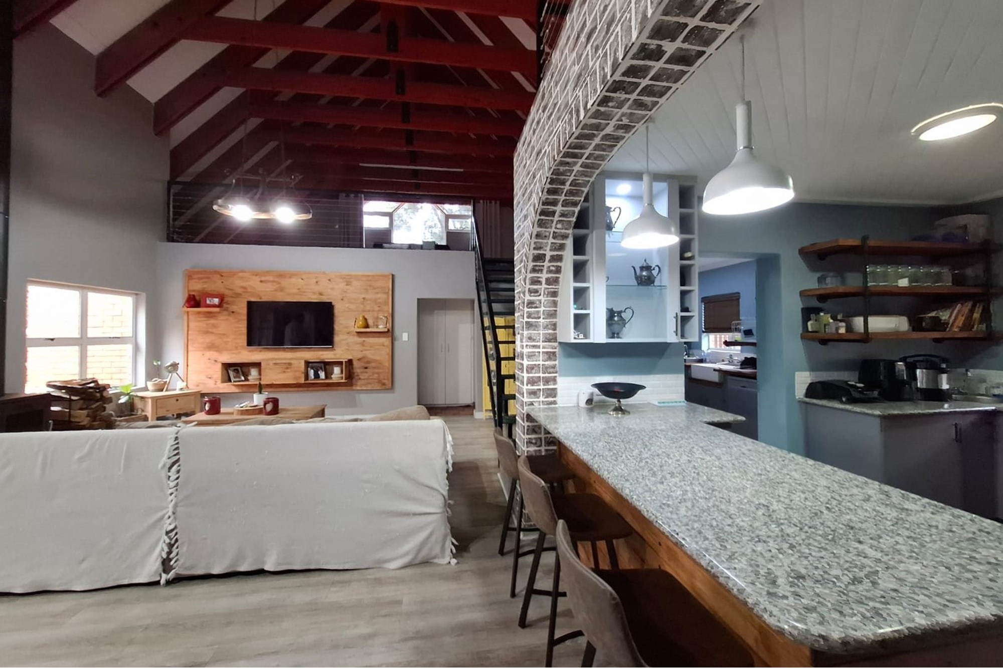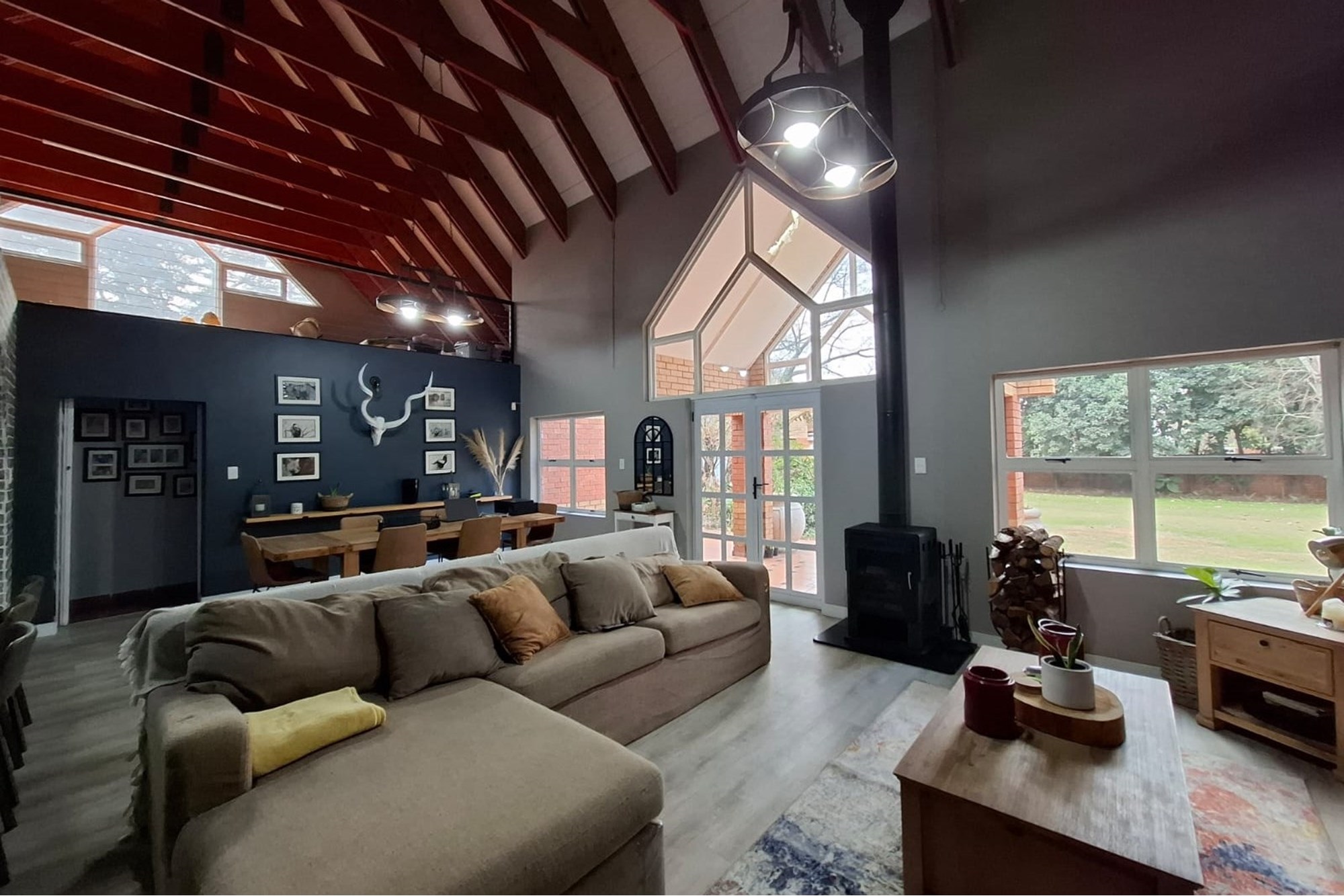 From the moment you step inside, you’ll feel the homely charm of the main residence. With double-volume ceilings, exposed wooden beams, and an open-plan living area that flows beautifully, this home is designed with space, light, and comfort in mind.