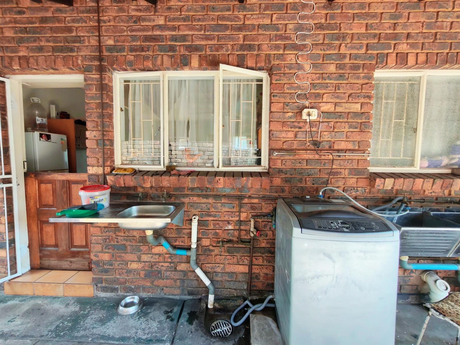 At the back of the house is a space for a washing machine.