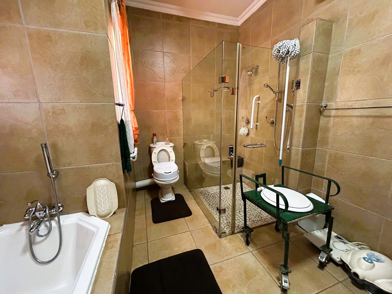 2 bathrooms. Main bedroom has a full bathroom ensuite - all wheelchair friendly. 2nd Bathroom has a bath and shower as well.