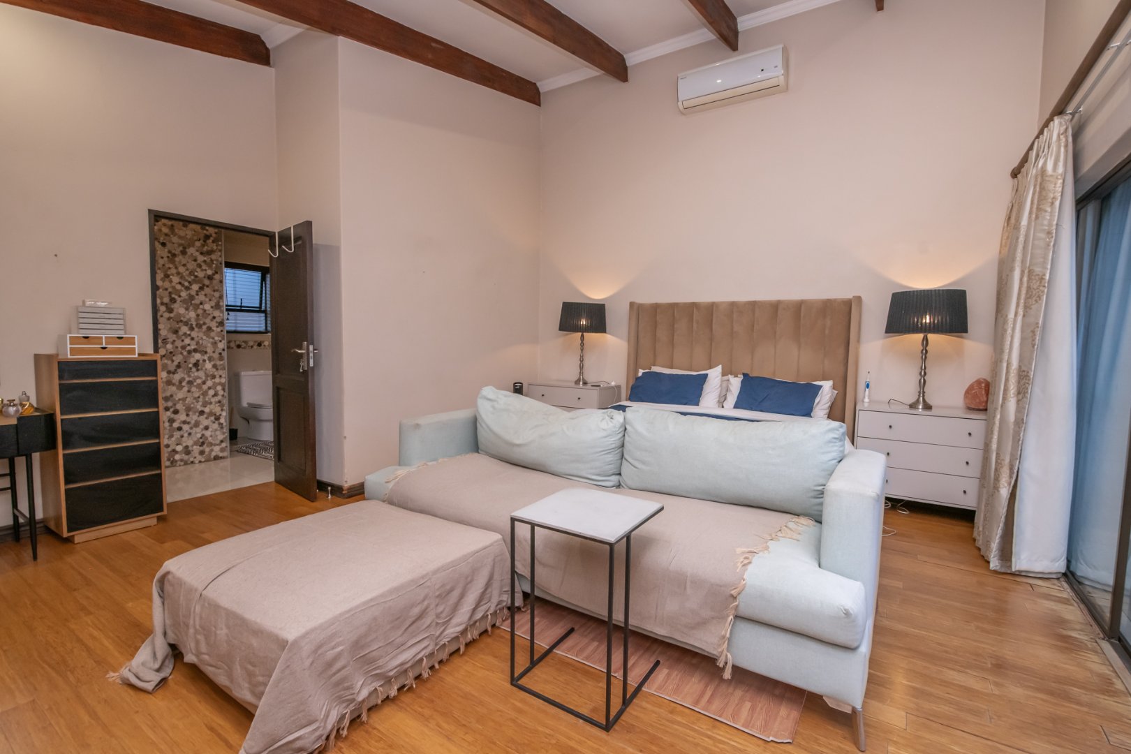 Expansive main bedroom with walk-in closet, full en-suite bathroom & private balcony