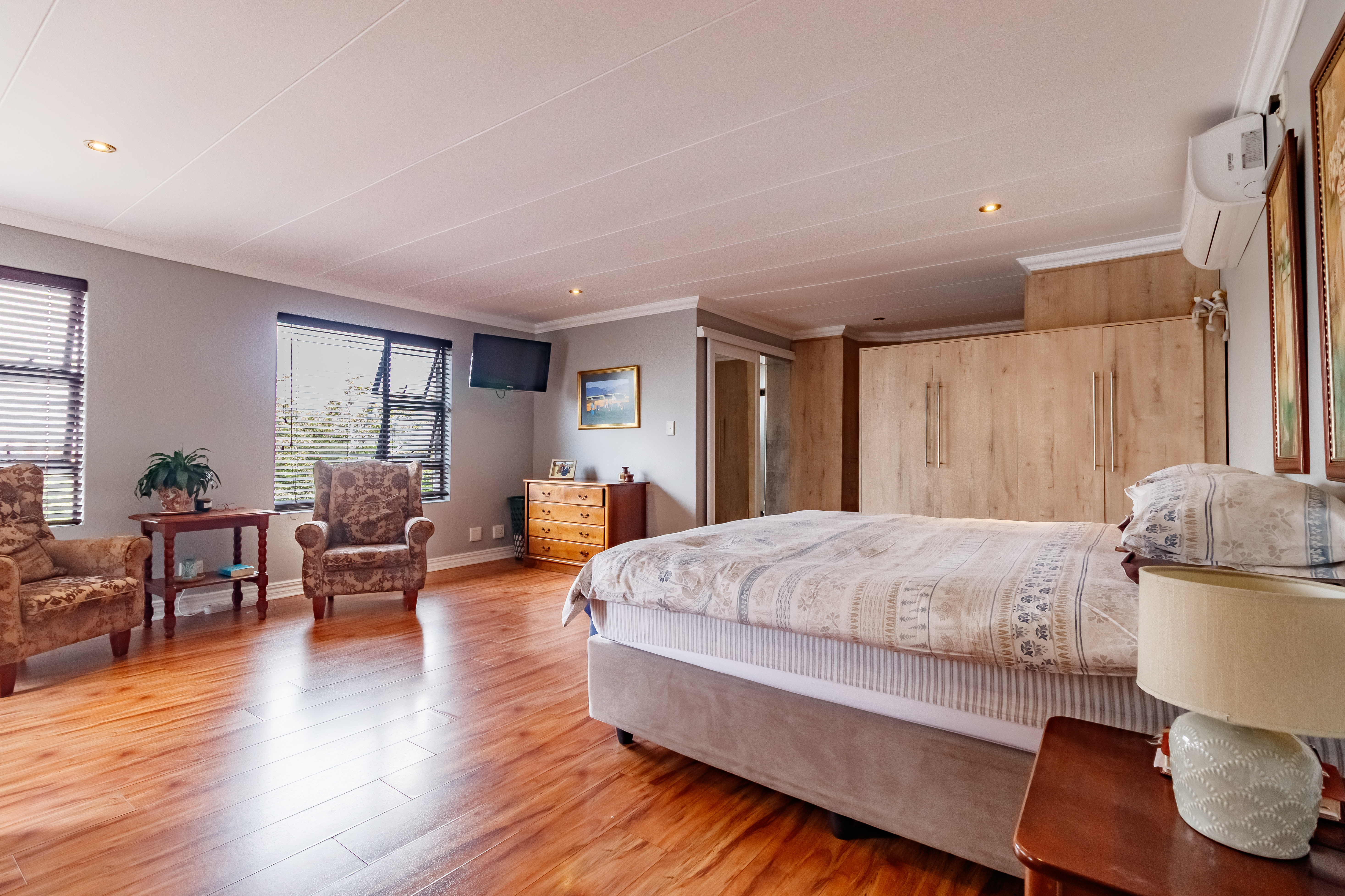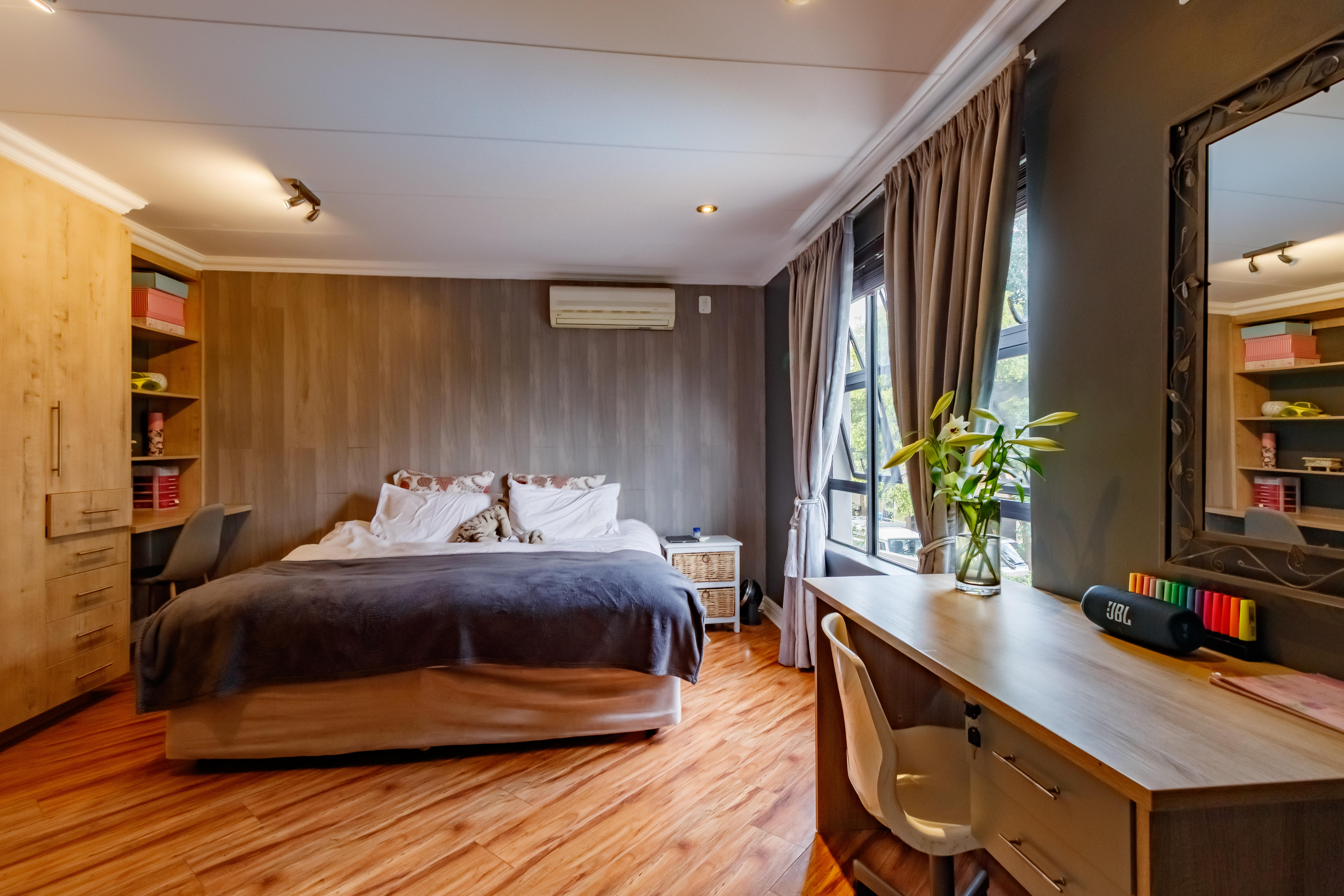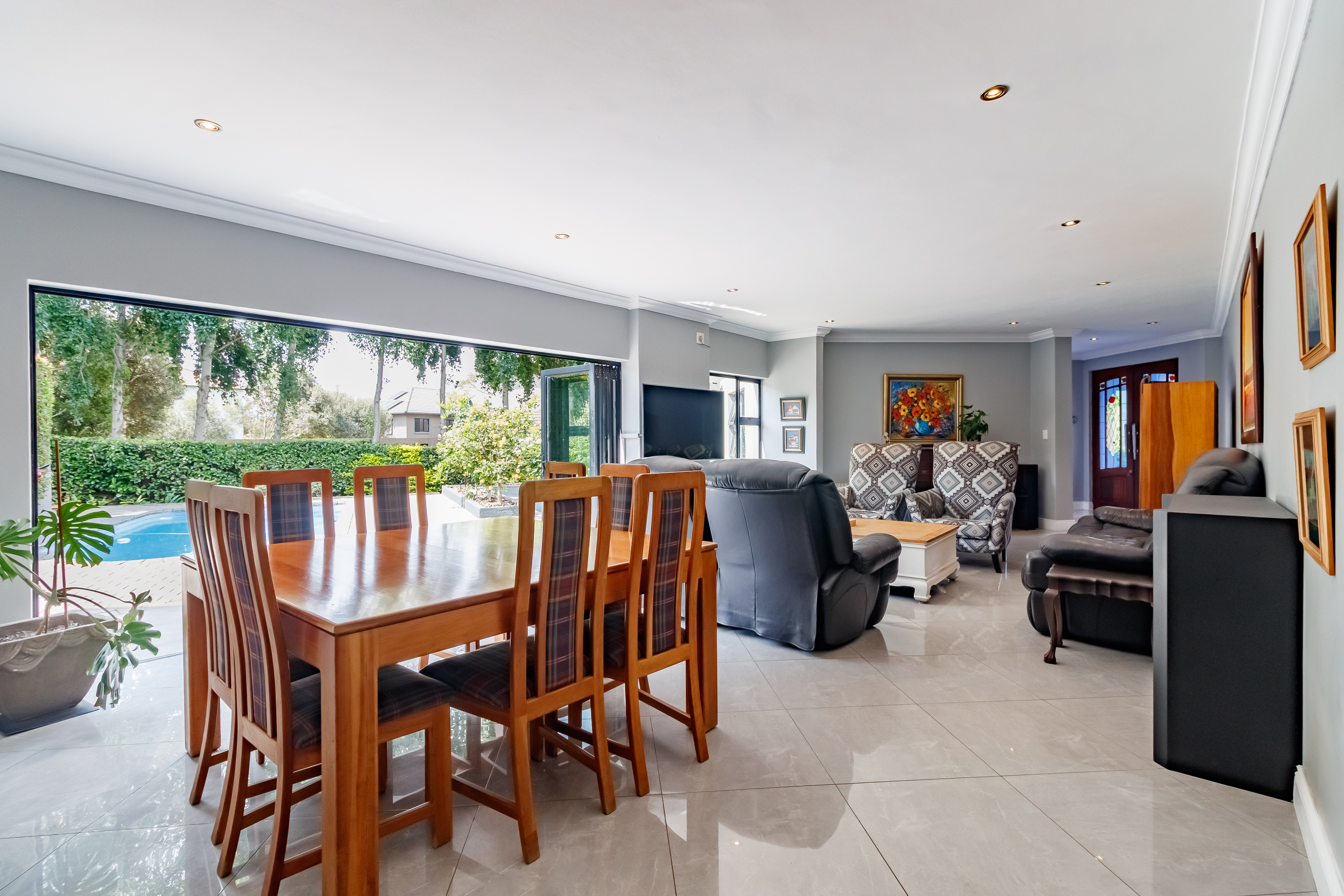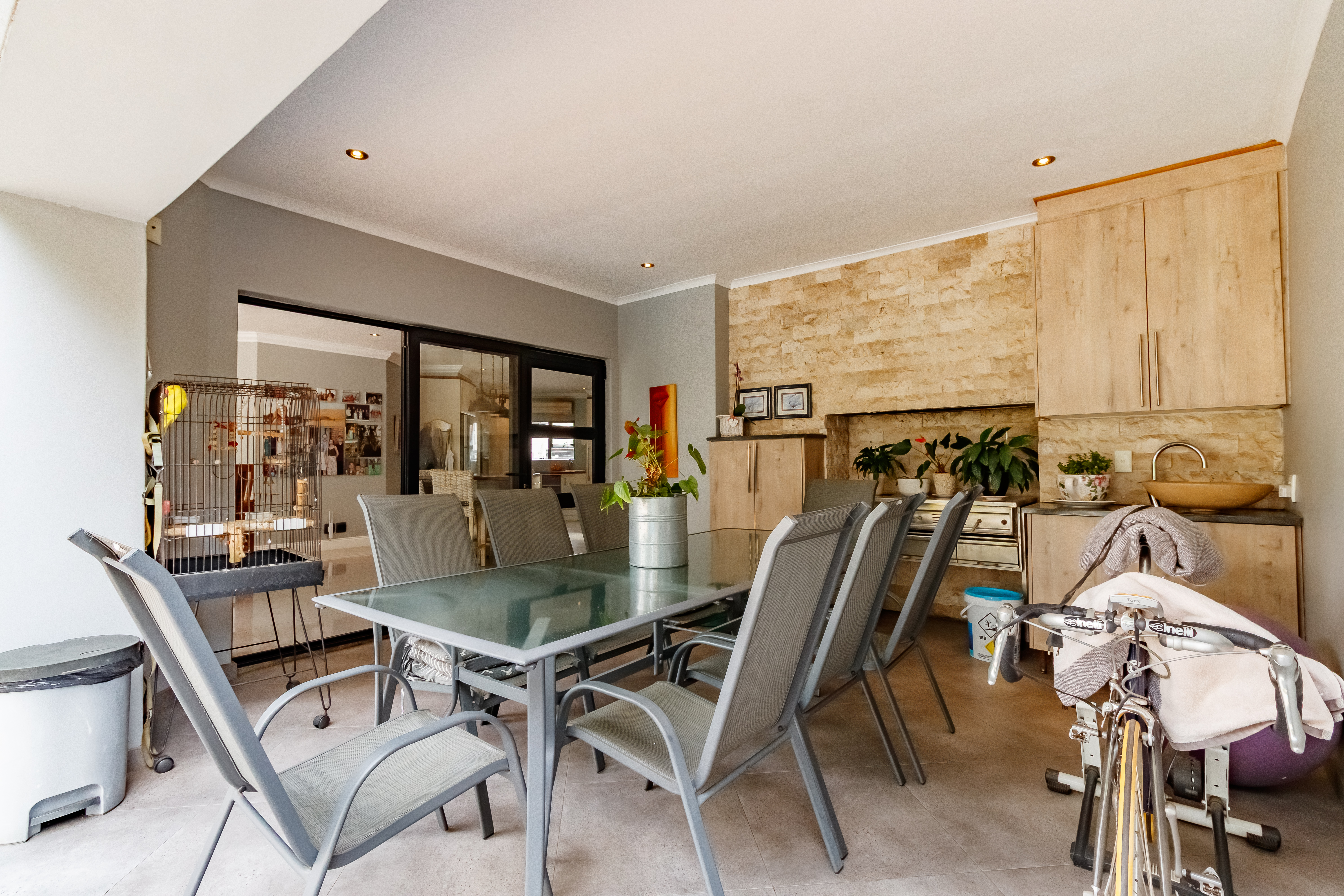 From the moment you step into this beautifully designed home, you’re welcomed by a sense of warmth, comfort, and effortless flow — the perfect setting for family living and entertaining. The open-plan kitchen and living area seamlessly connect to the sparkling swimming pool and undercover patio, complete with a built-in braai, making it ideal for relaxed weekend gatherings filled with laughter and good food. Whether you’re unwinding by the fire in the boma under the stars or enjoying quiet evenings upstairs in your private retreat, every space in this home is thoughtfully created to balance sociable living with tranquil privacy. It’s a place where memories are made, where every corner reflects comfort, joy, and togetherness — a home that simply feels right.