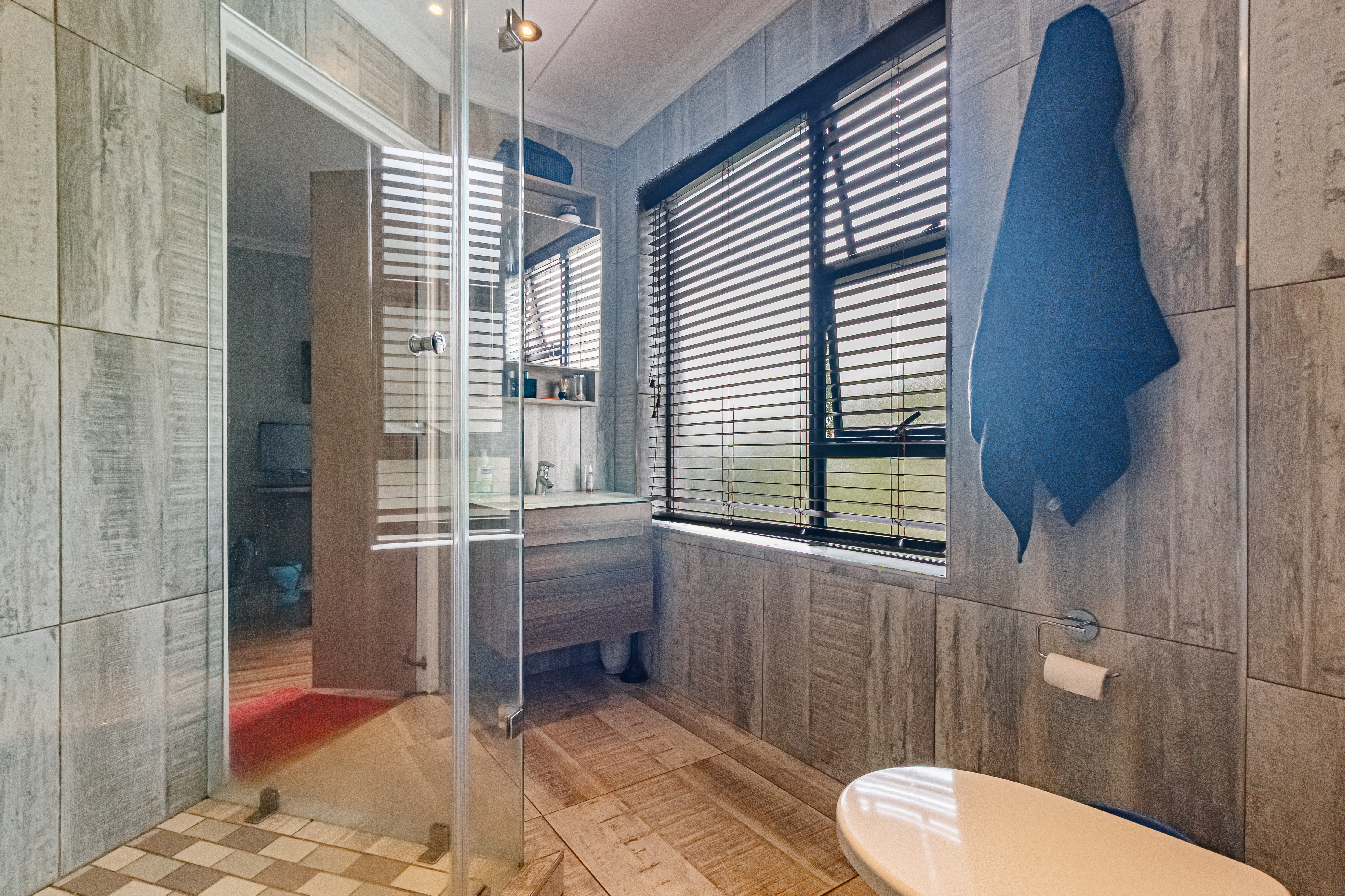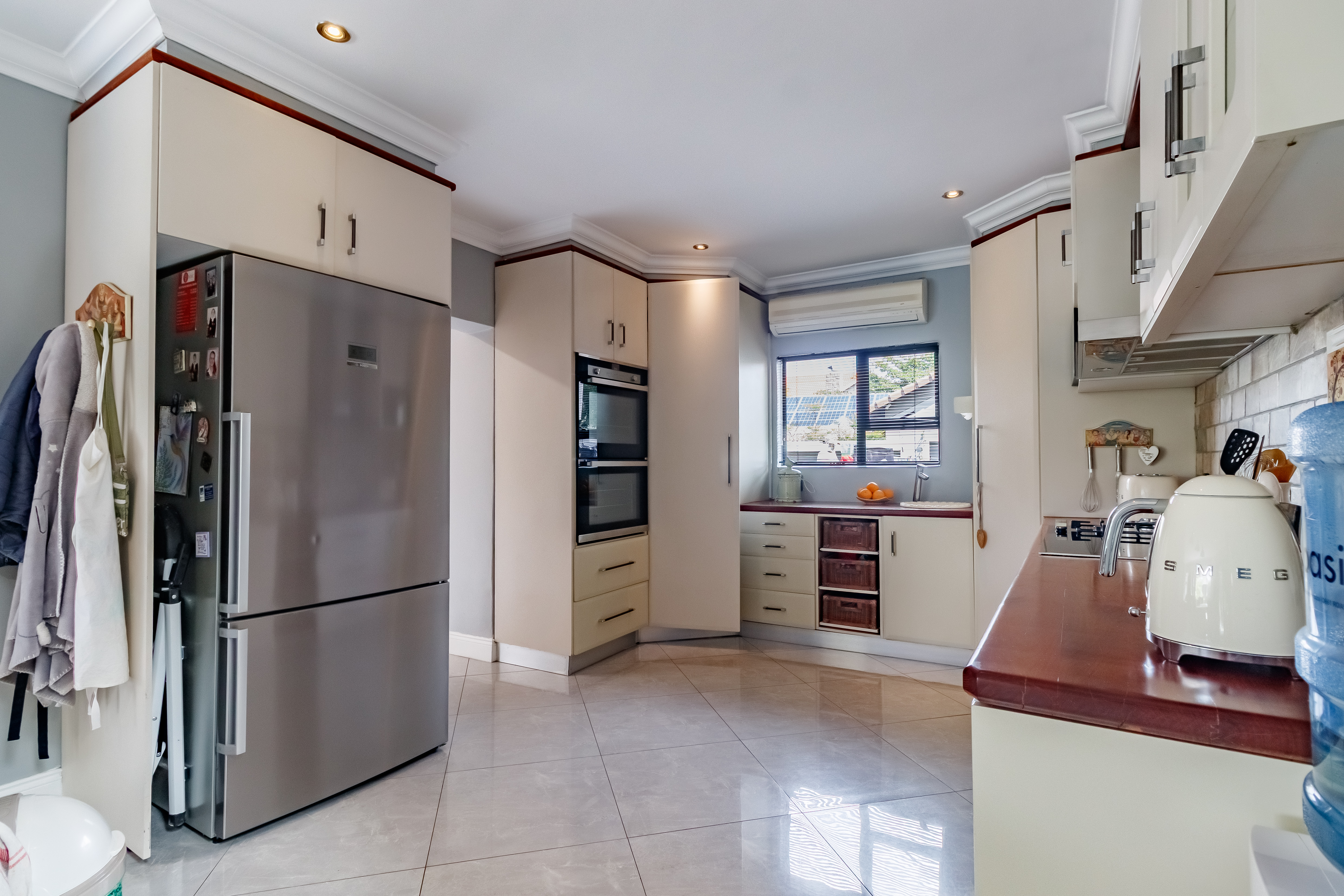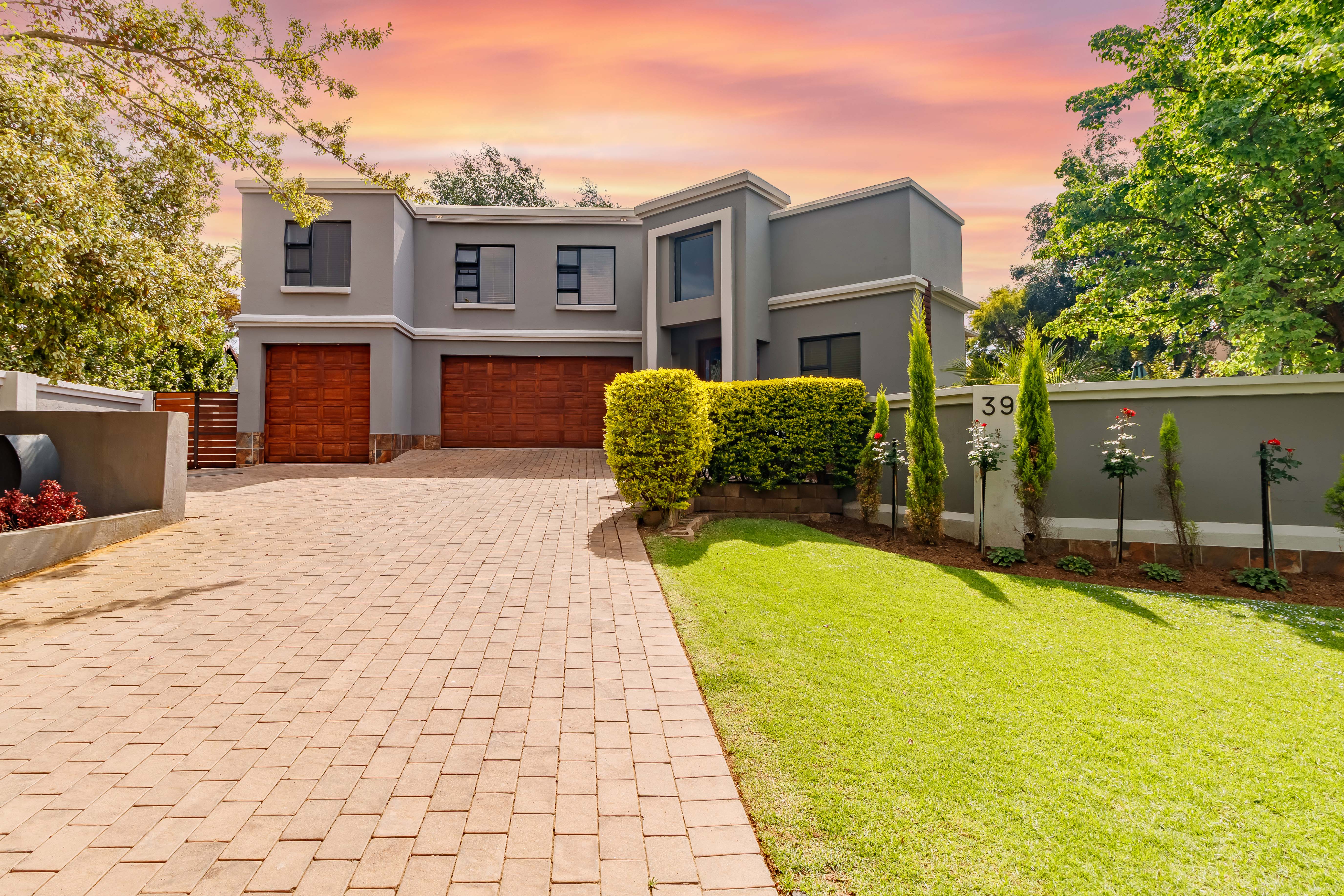 This exceptional property offers a host of modern features designed for convenience and comfort. The downstairs bedroom with en-suite bathroom is ideal for guests or extended family, while the modern kitchen with a double oven and separate scullery ensures effortless entertaining. The home includes garaging for three vehicles with automated doors, two double gates with ample space for trailers or a caravan, and a 2500L water tank for added practicality. Outdoor living is a dream, with a spacious entertainment area featuring a patio, braai, swimming pool, and firepit-style boma. Upstairs, the private living area offers the perfect retreat, with the main suite boasting a private patio, air-conditioning, and a luxurious full bathroom. Additional bedrooms include one with its own en-suite and two sharing a Jack-and-Jill bathroom, all equipped with air-conditioning. Completing the picture is staff accommodation with a private bathroom — ensuring comfort and privacy for all.