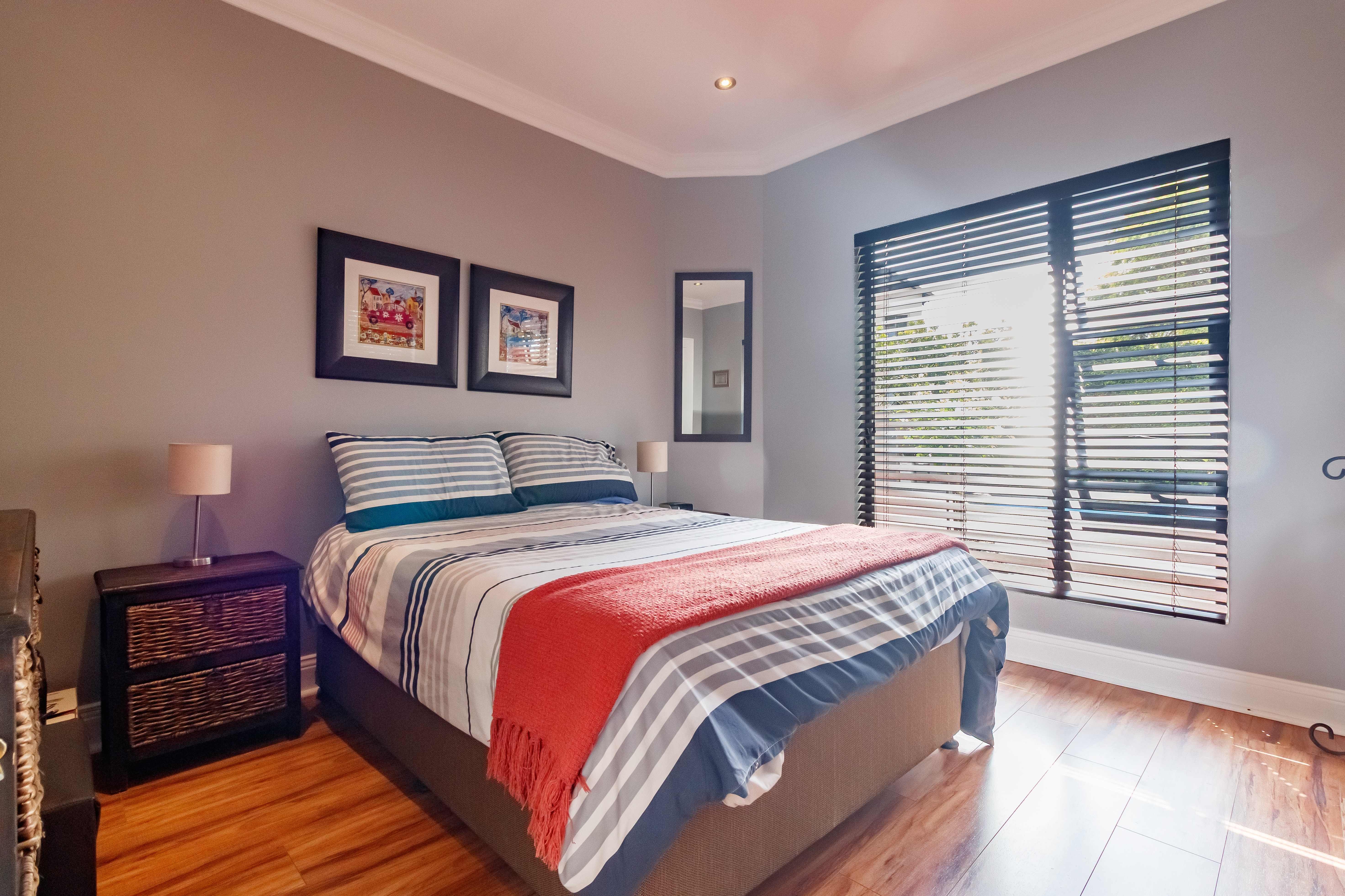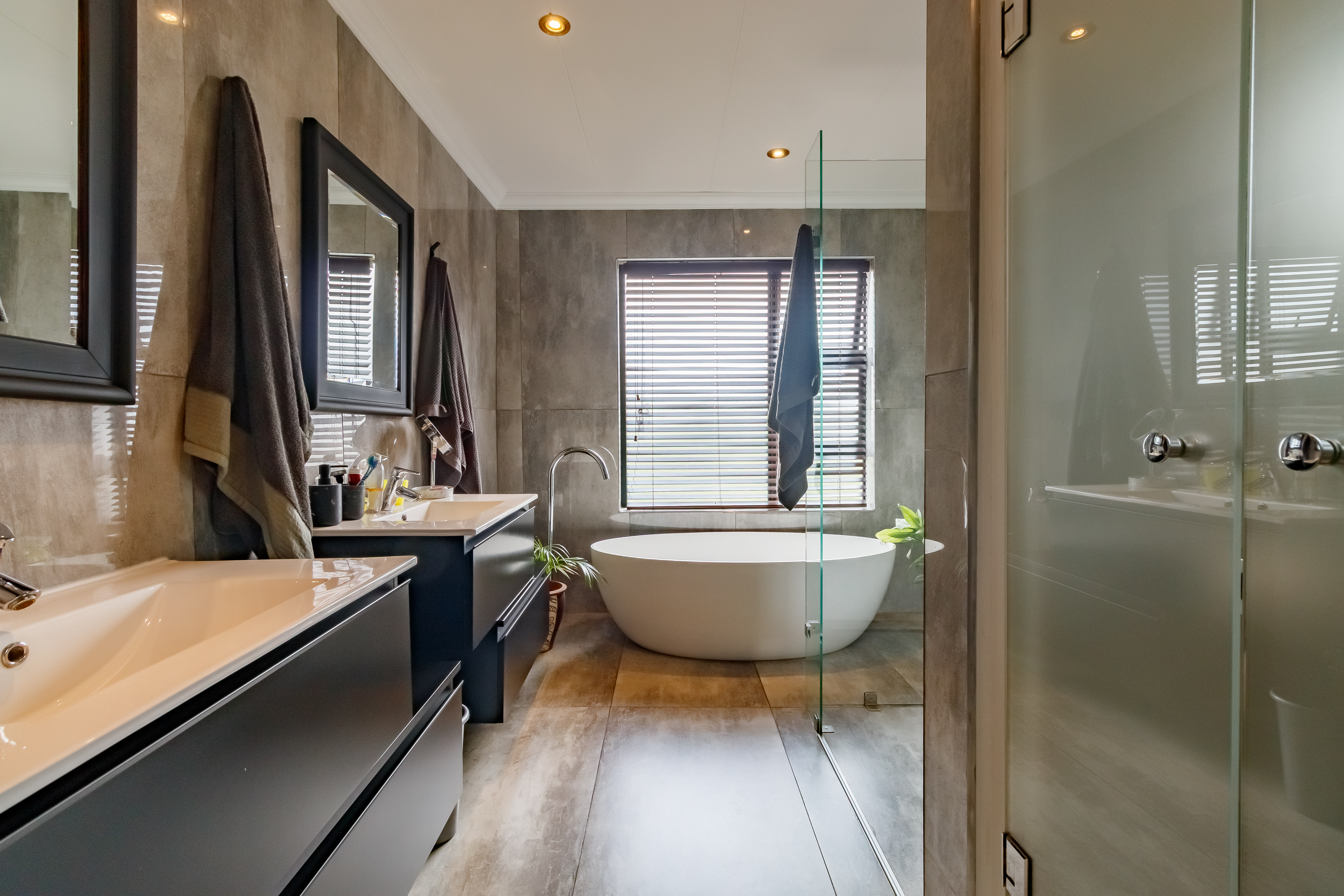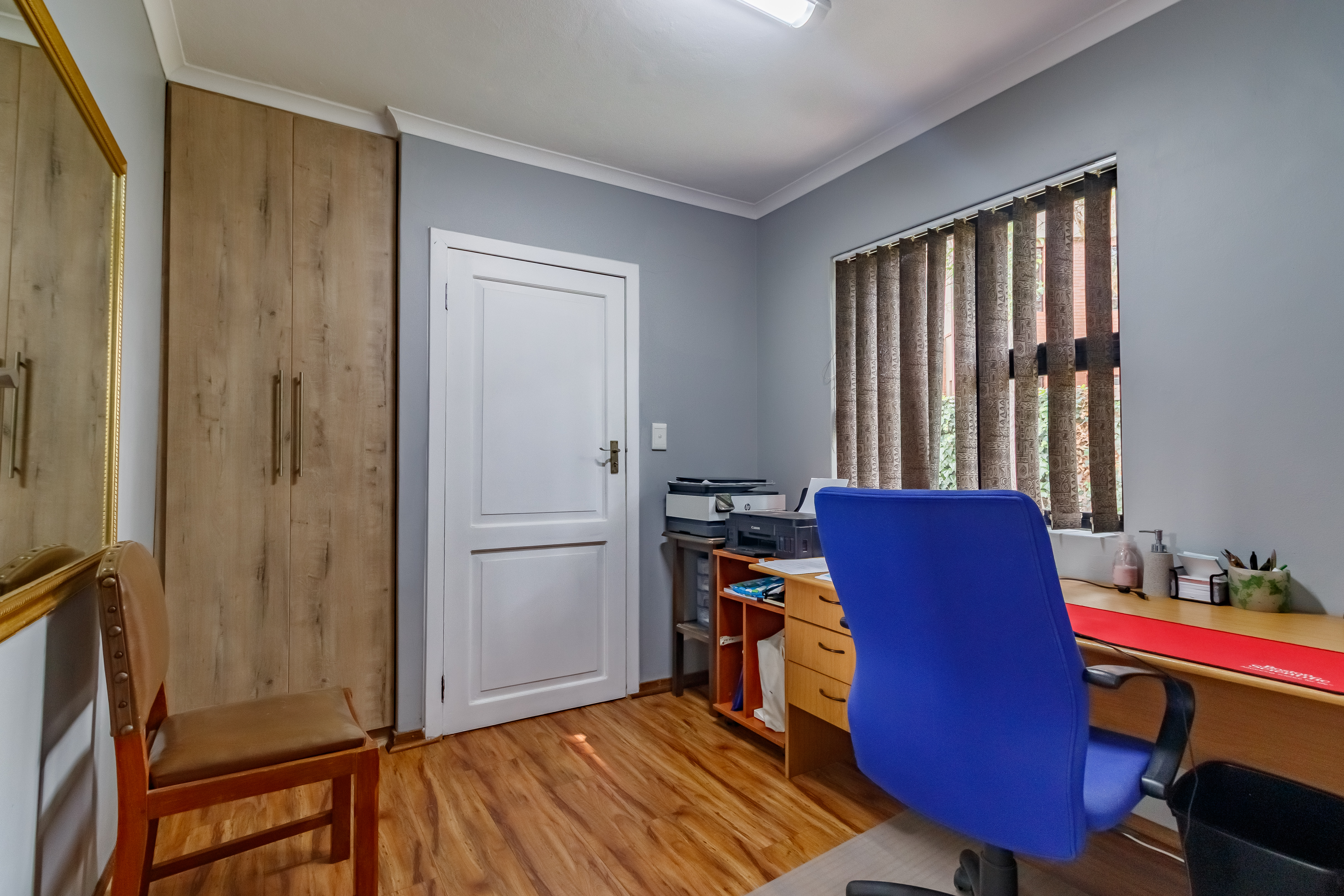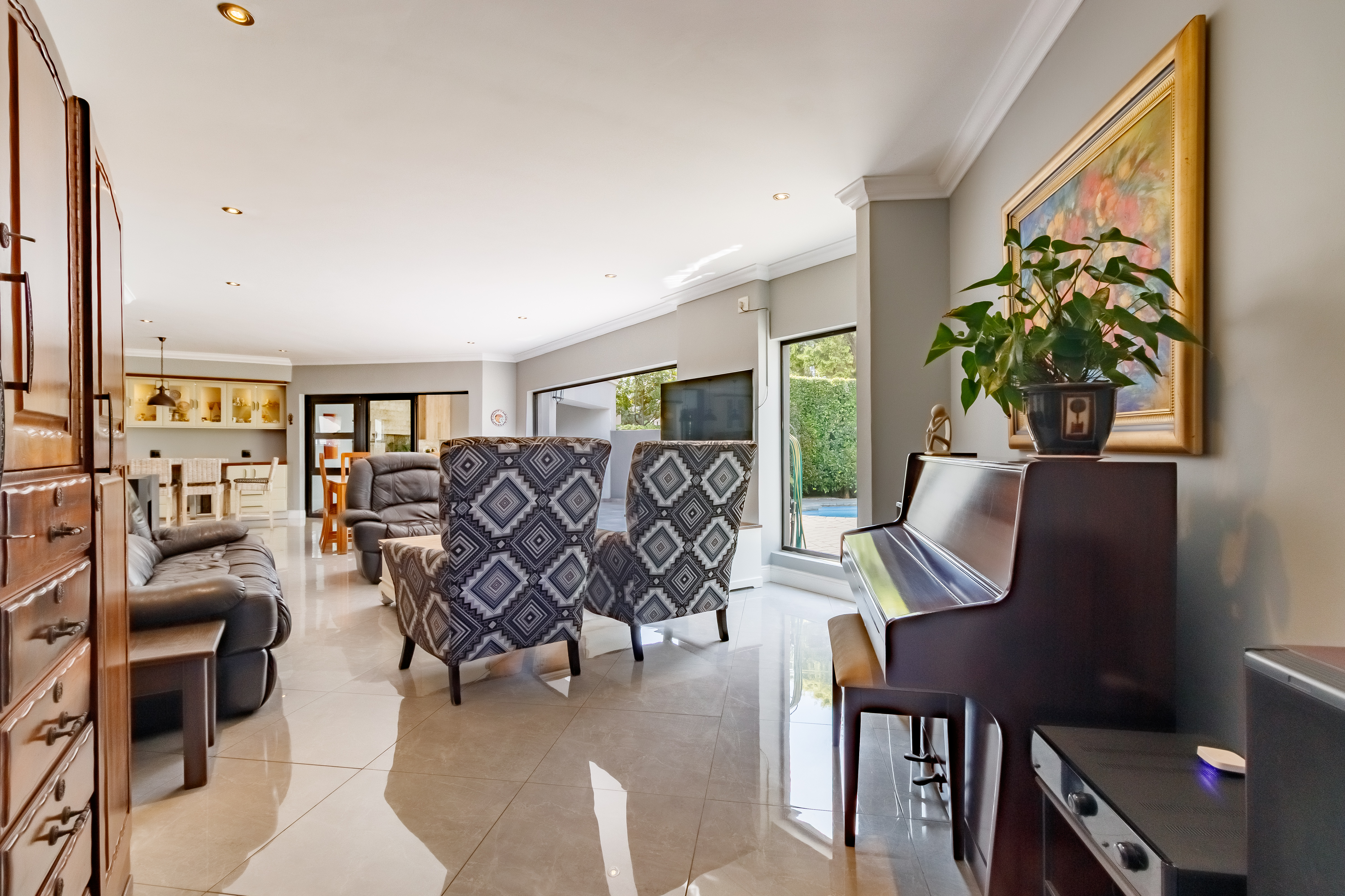 This exceptional property offers a host of modern features designed for convenience and comfort. The downstairs bedroom with en-suite bathroom is ideal for guests or extended family, while the modern kitchen with a double oven and separate scullery ensures effortless entertaining. The home includes garaging for three vehicles with automated doors, two double gates with ample space for trailers or a caravan, and a 2500L water tank for added practicality. Outdoor living is a dream, with a spacious entertainment area featuring a patio, braai, swimming pool, and firepit-style boma. Upstairs, the private living area offers the perfect retreat, with the main suite boasting a private patio, air-conditioning, and a luxurious full bathroom. Additional bedrooms include one with its own en-suite and two sharing a Jack-and-Jill bathroom, all equipped with air-conditioning. Completing the picture is staff accommodation with a private bathroom — ensuring comfort and privacy for all.