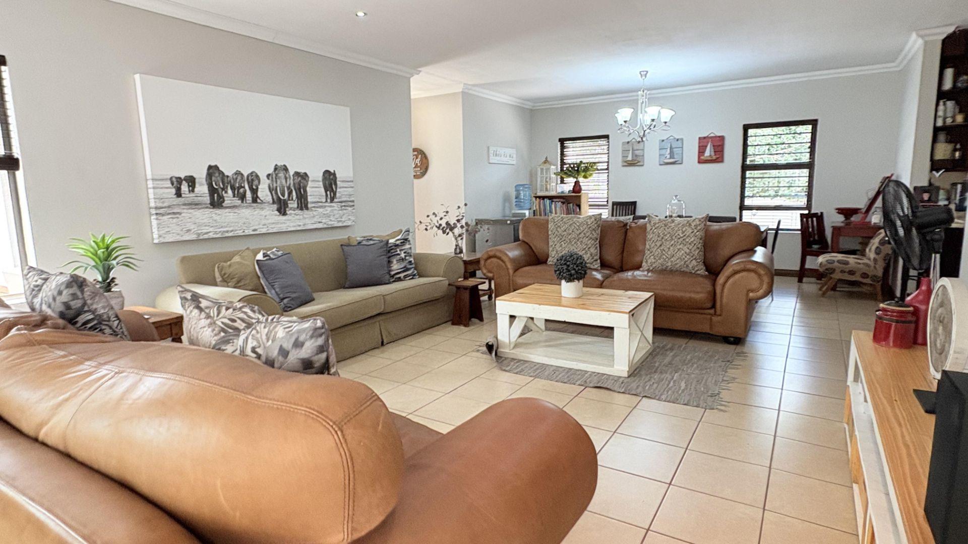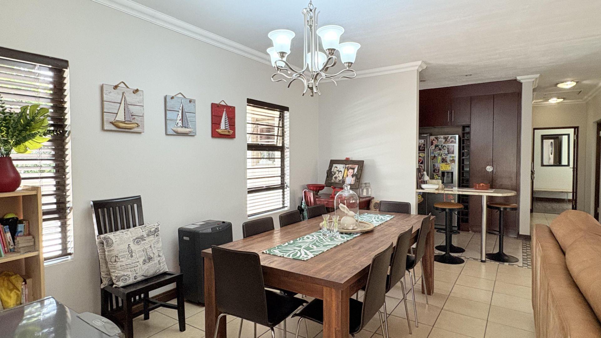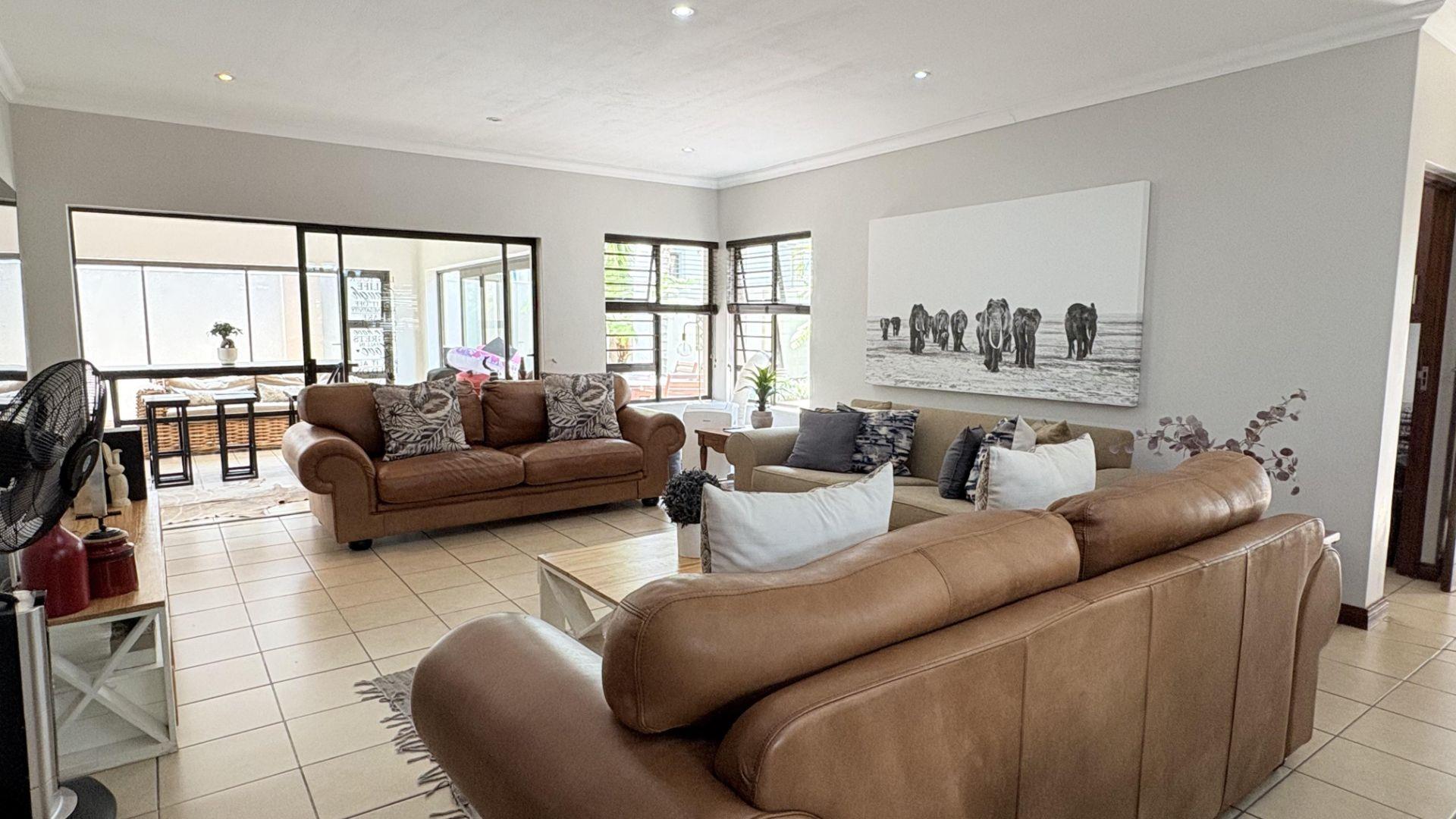 3 Spacious living areas comprise of a lounge, dining room & indoor undercover patio with built in braai leading onto the garden and the pool.